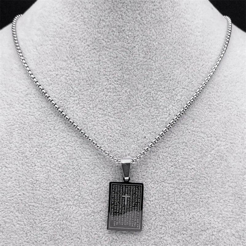 Collar con cruz cristiana y oración del Señor para mujeres y hombres, cadena religiosa de acero inoxidable, amuleto, joyería, collares estéticos