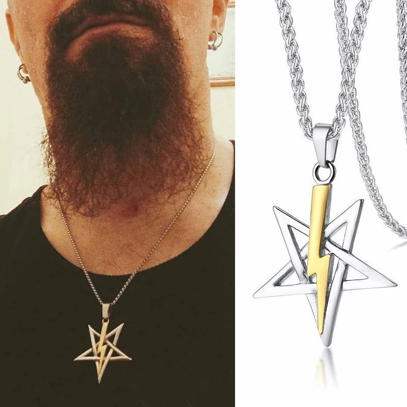 COLLAR CON AMULETO Y TALISMÁN DE ACERO INOXIDABLE CON SIGLO DE ANTON LAVEY DE LA IGLESIA DE SATÁN