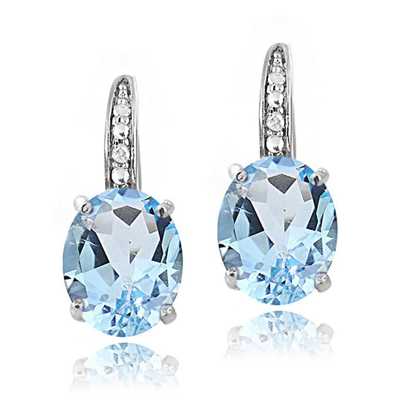 Pendientes de moda: pendientes clásicos de plata 100 % auténtica para mujer con piedras preciosas de zafiro azul en forma de huevo, elegantes para fiestas.