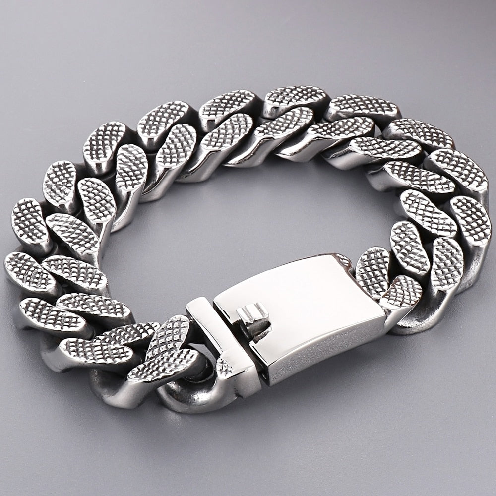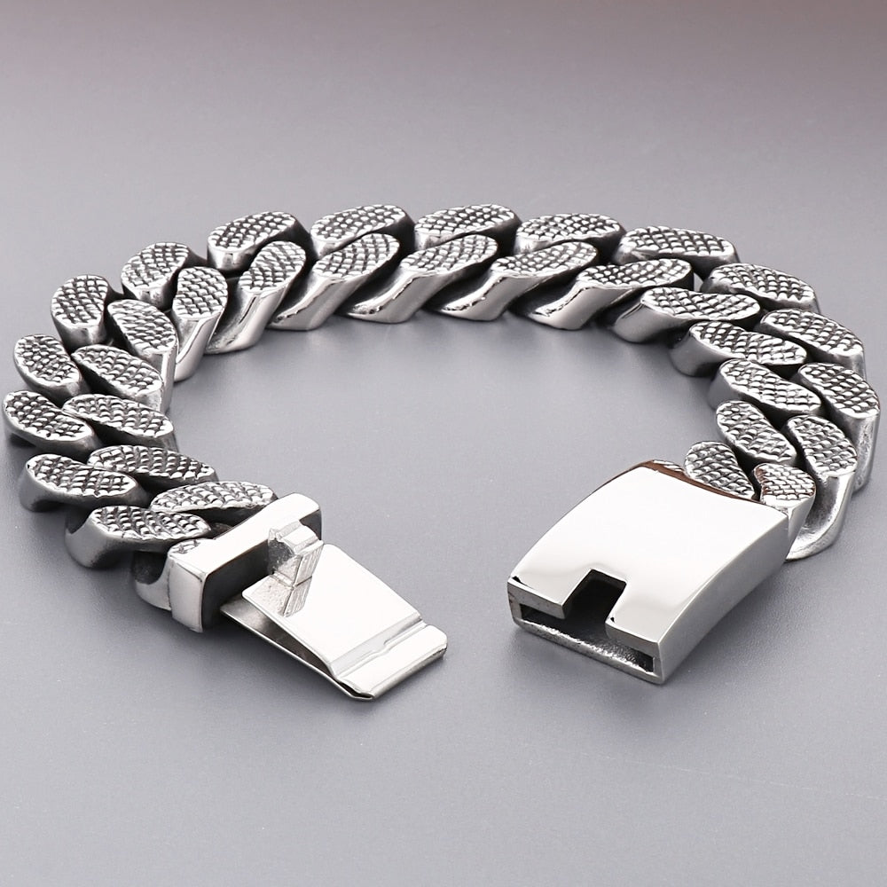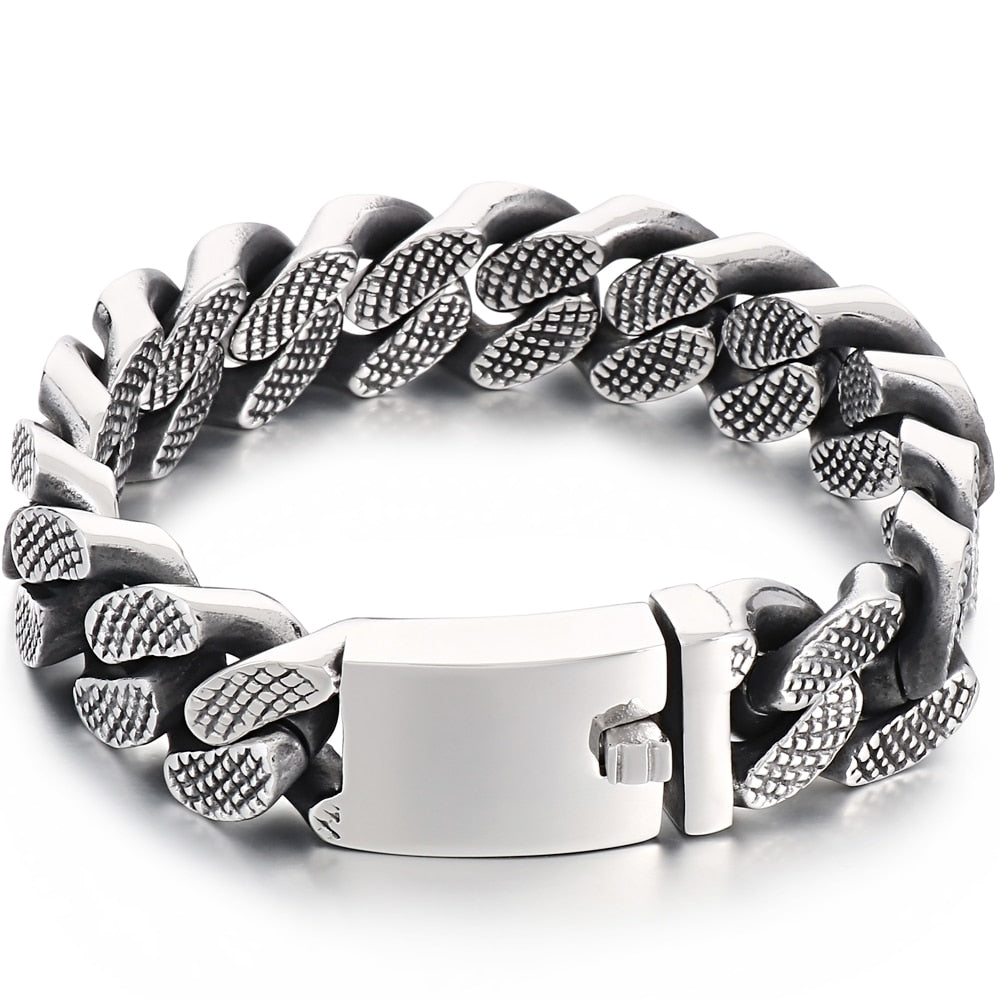 Pulsera clásica de acero inoxidable 316L de 17 mm de ancho con cadena cubana para hombre.