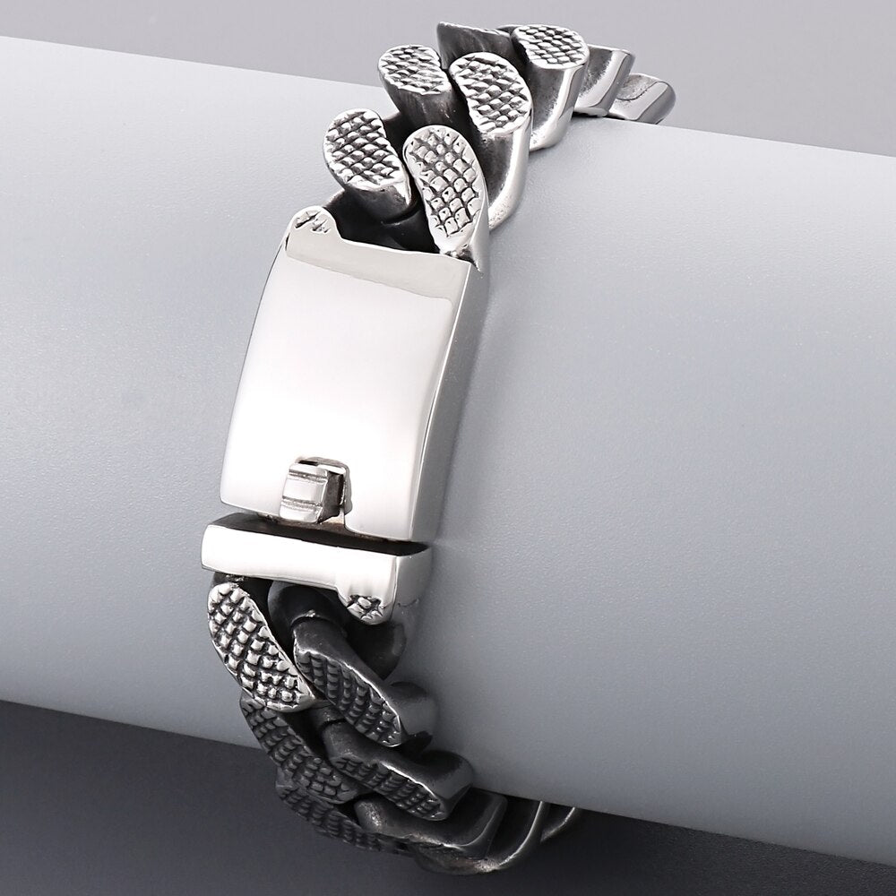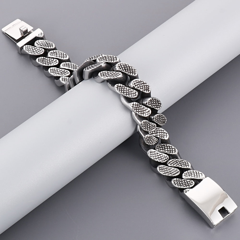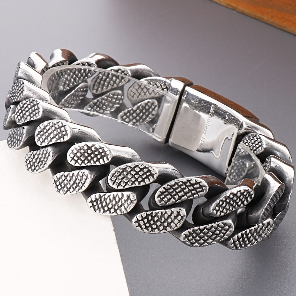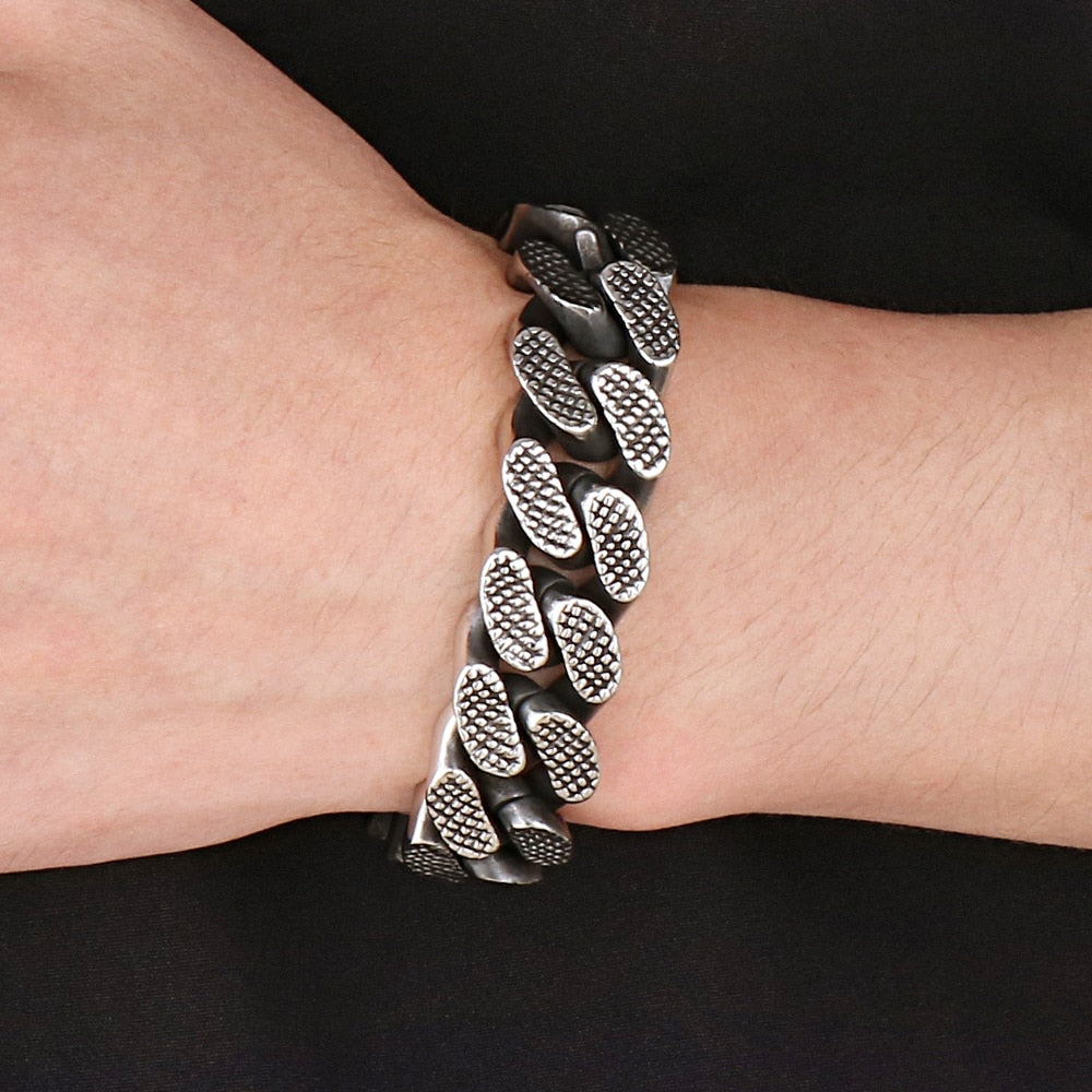 Pulsera clásica de acero inoxidable 316L de 17 mm de ancho con cadena cubana para hombre.