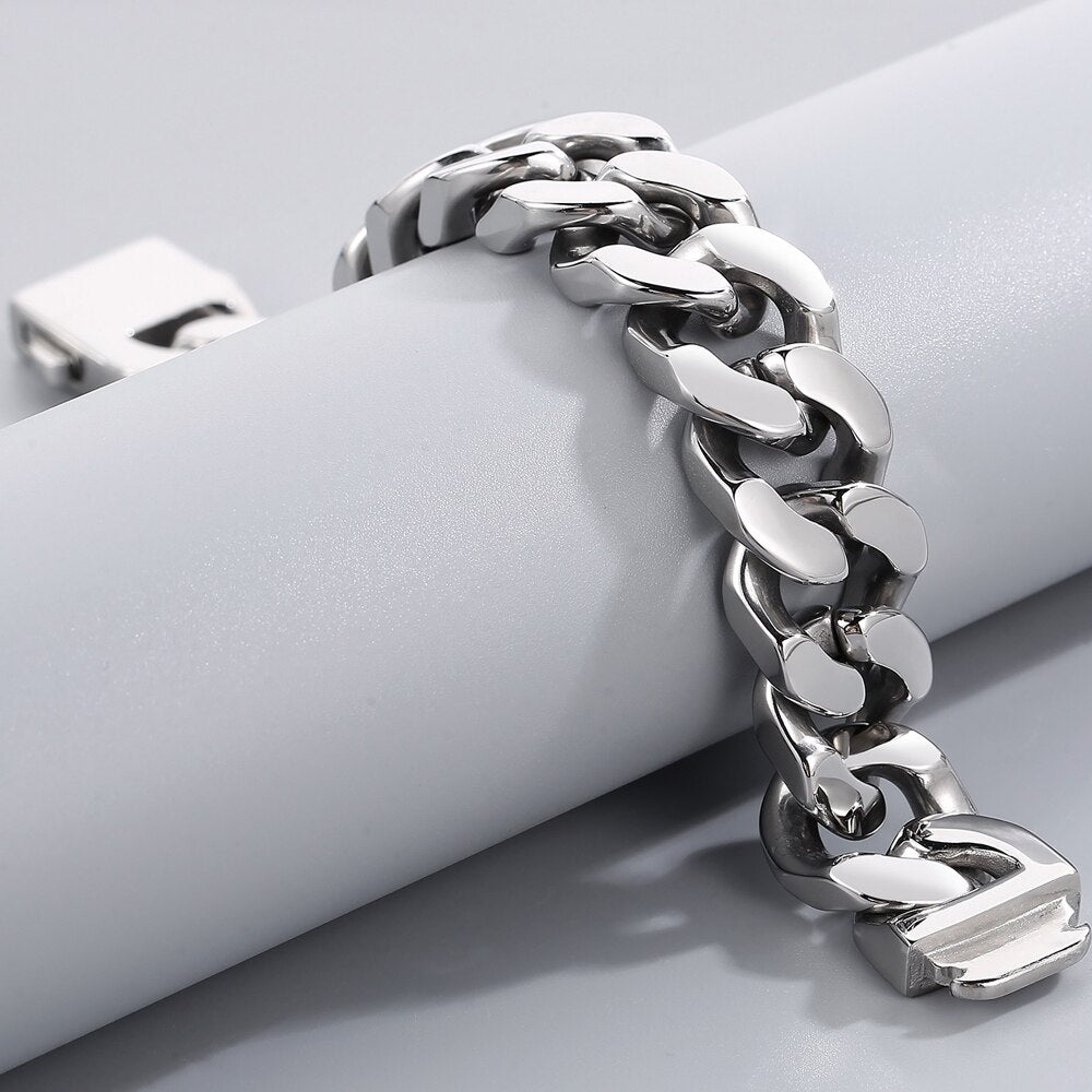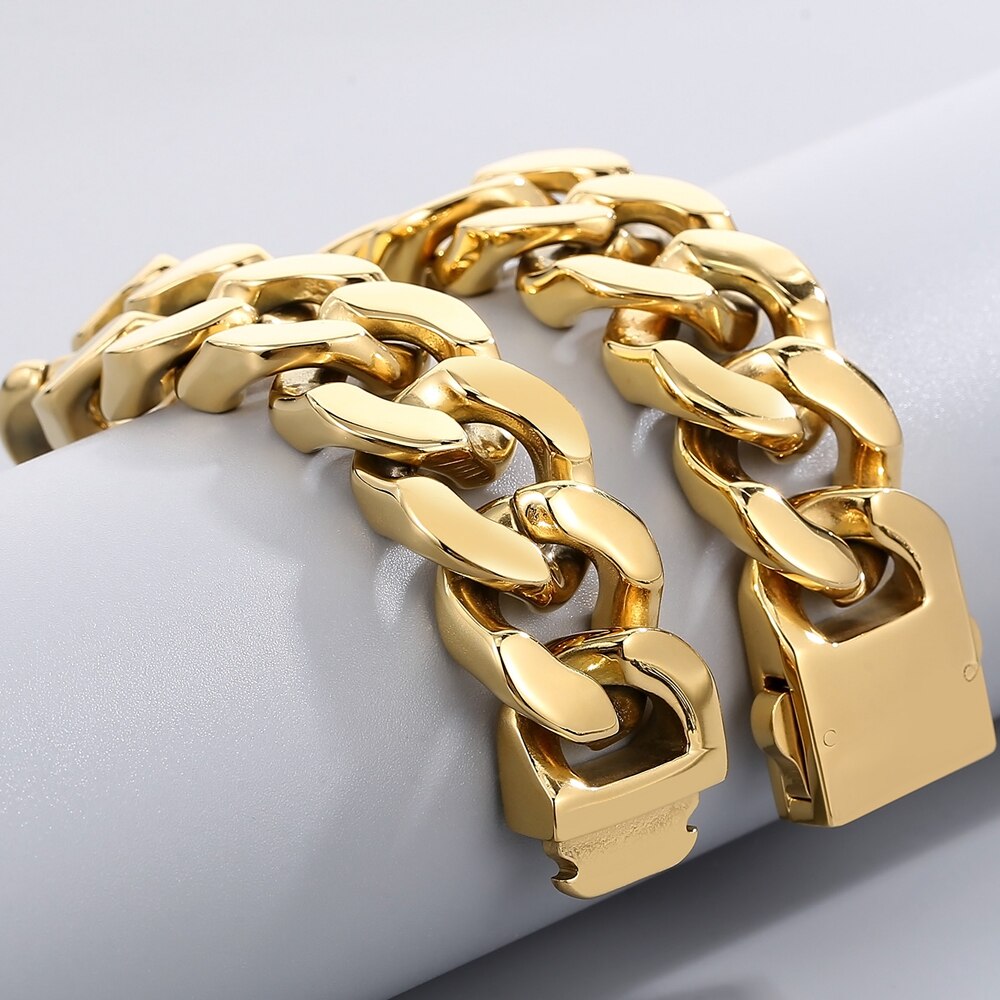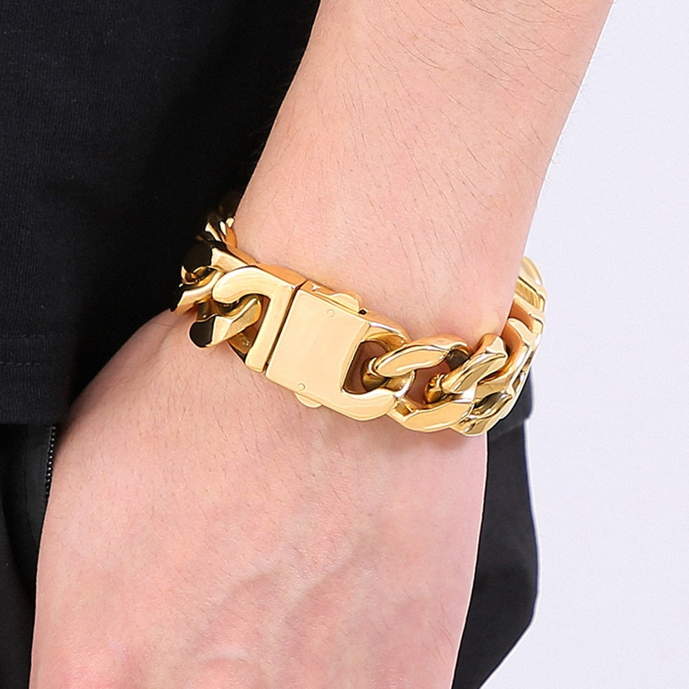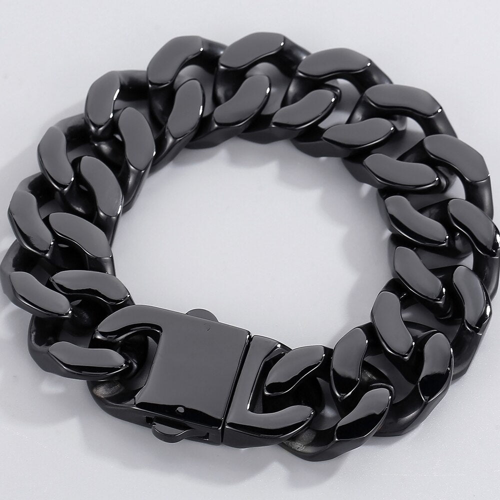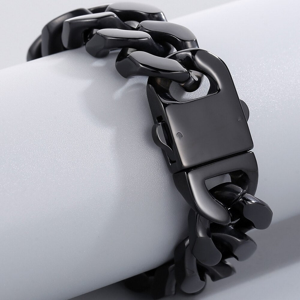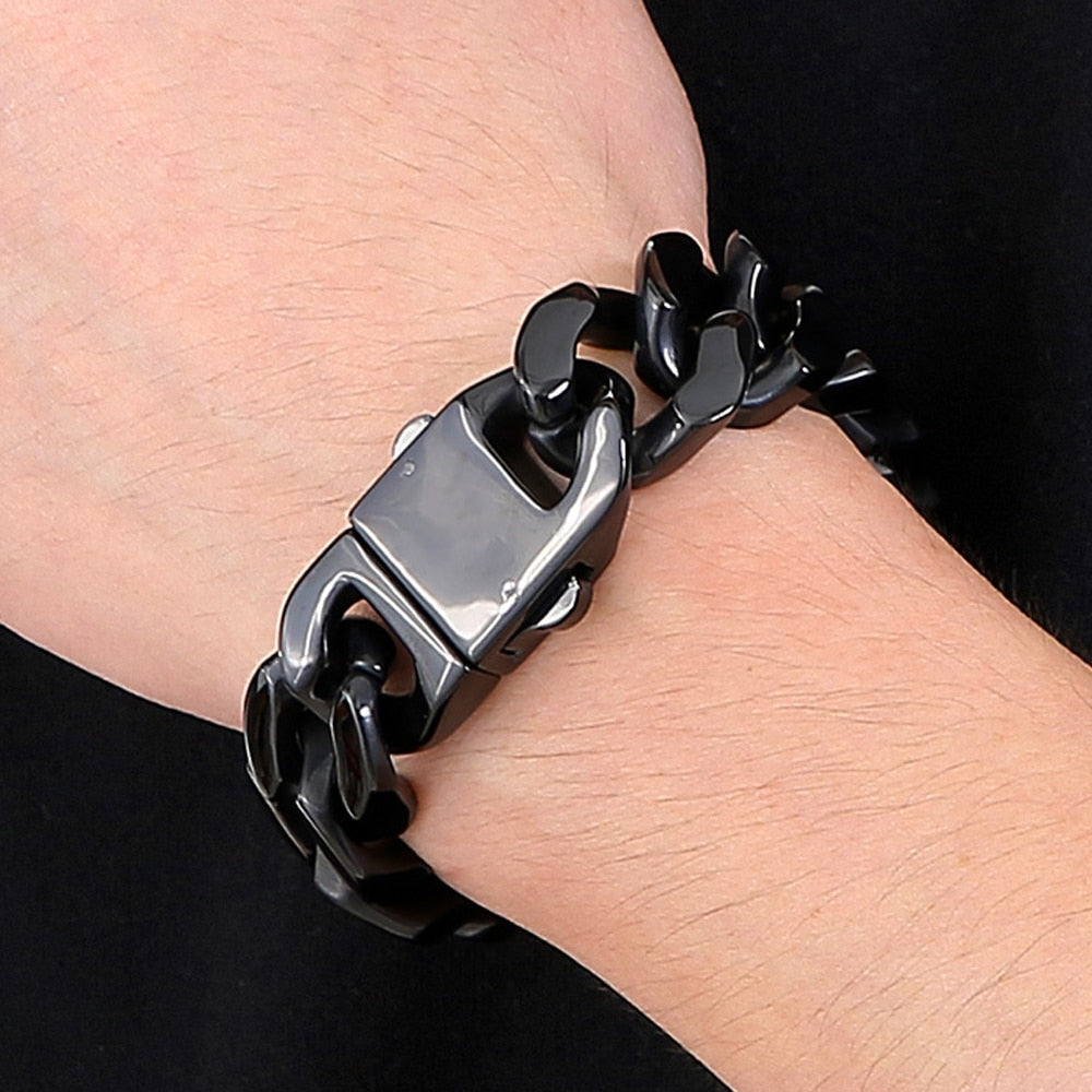 Pulsera clásica de acero inoxidable chapado en oro negro de 20 mm de ancho para hombre con cadena de eslabones.