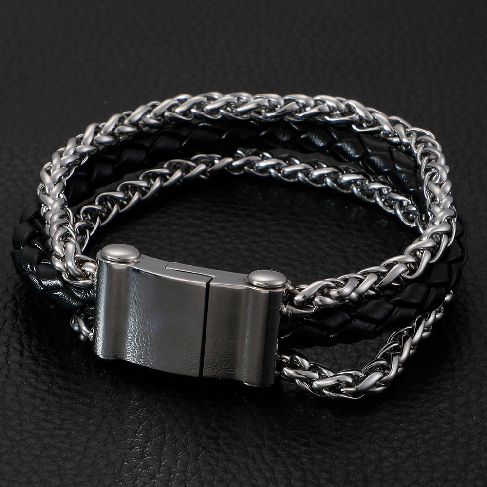 Pulsera de acero inoxidable para hombre: Pulsera de cuero trenzado para hombre