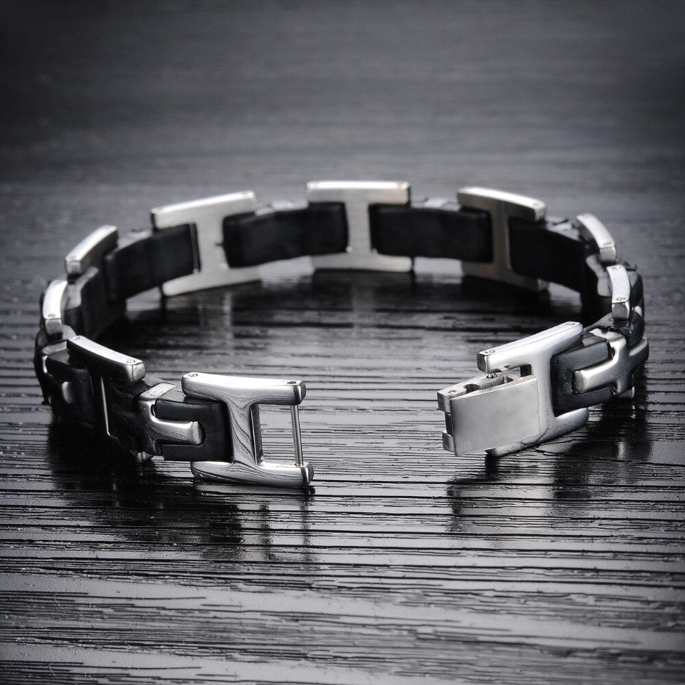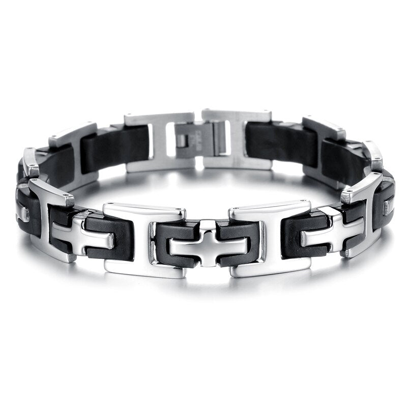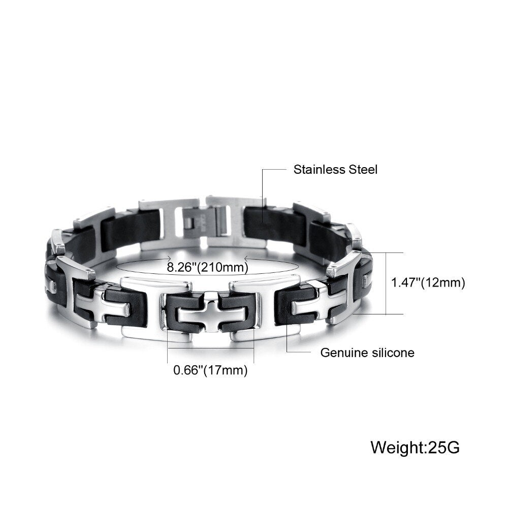 Pulseras clásicas de cruz para hombre, pulsera de silicona y acero inoxidable.