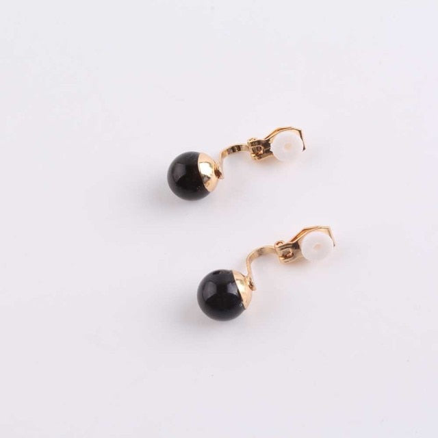 Pendientes de clip de perla simulada de 3 colores de moda clásica sin perforación