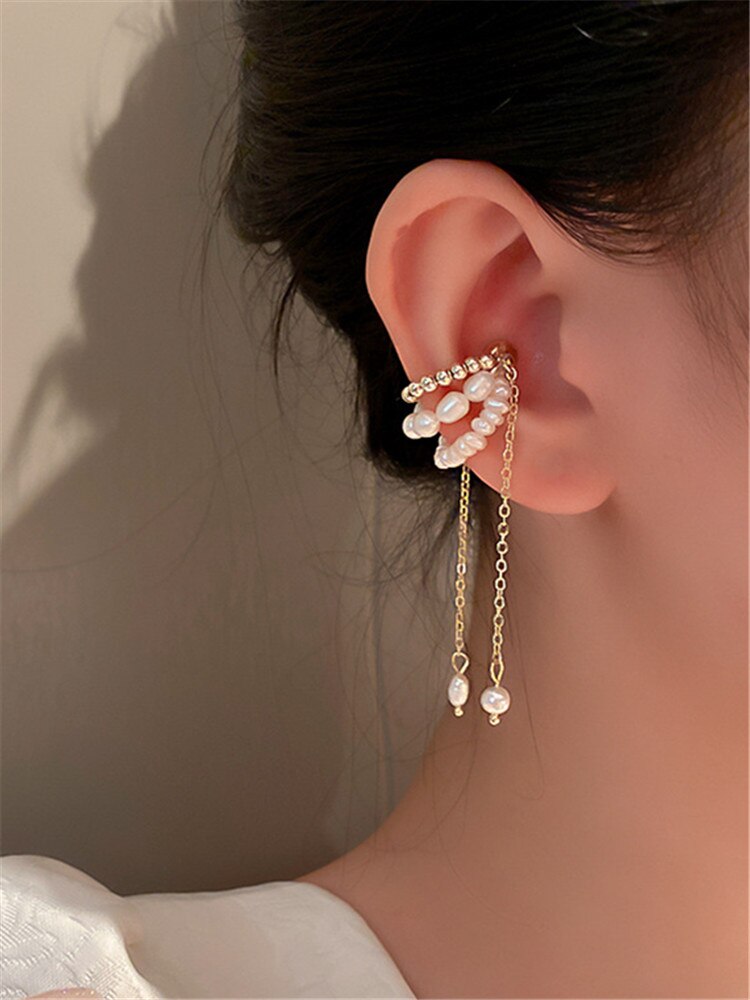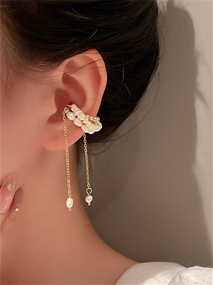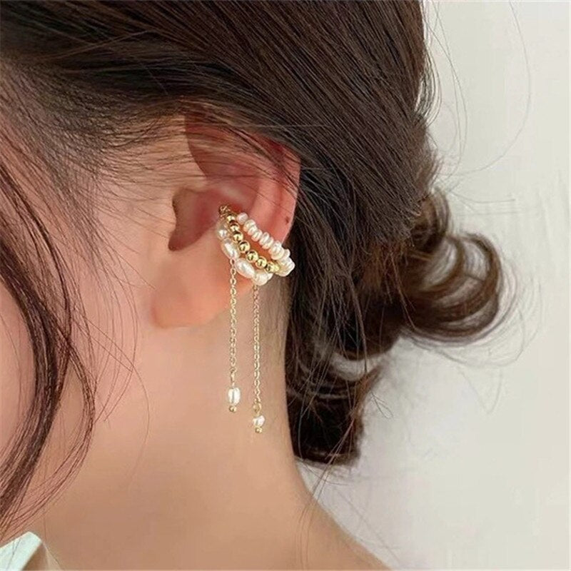 Pendientes de moda: Pendientes clásicos con perla de agua dulce y hueso de oreja con imán para mujer con accesorios de joyería inusuales.