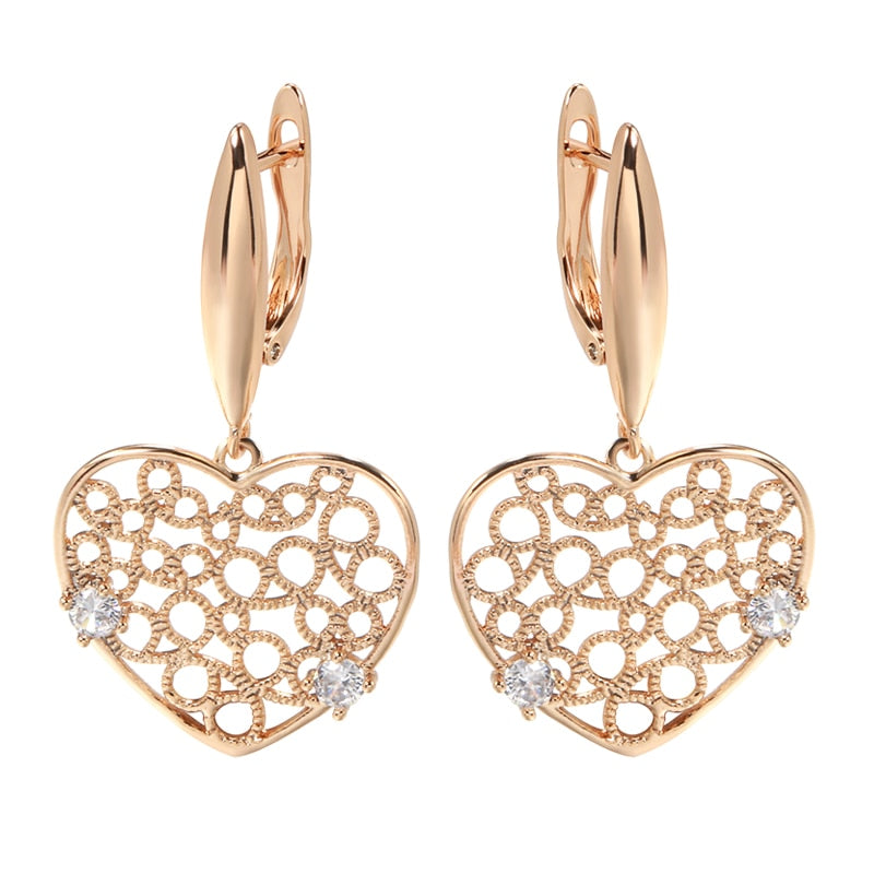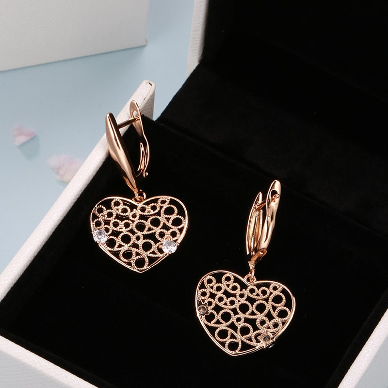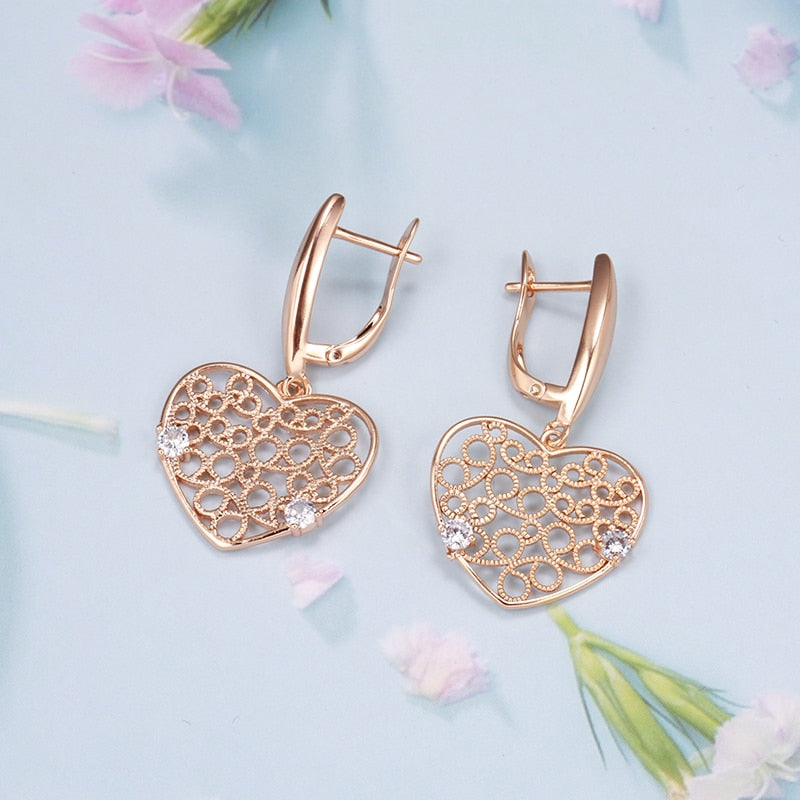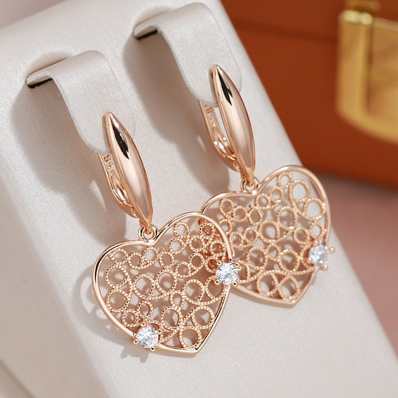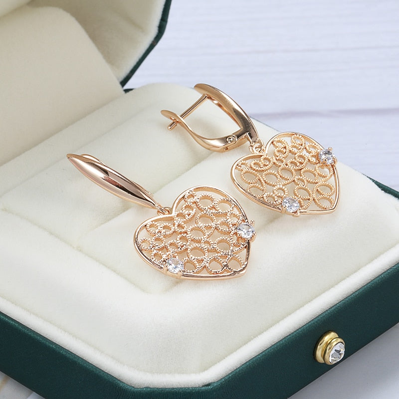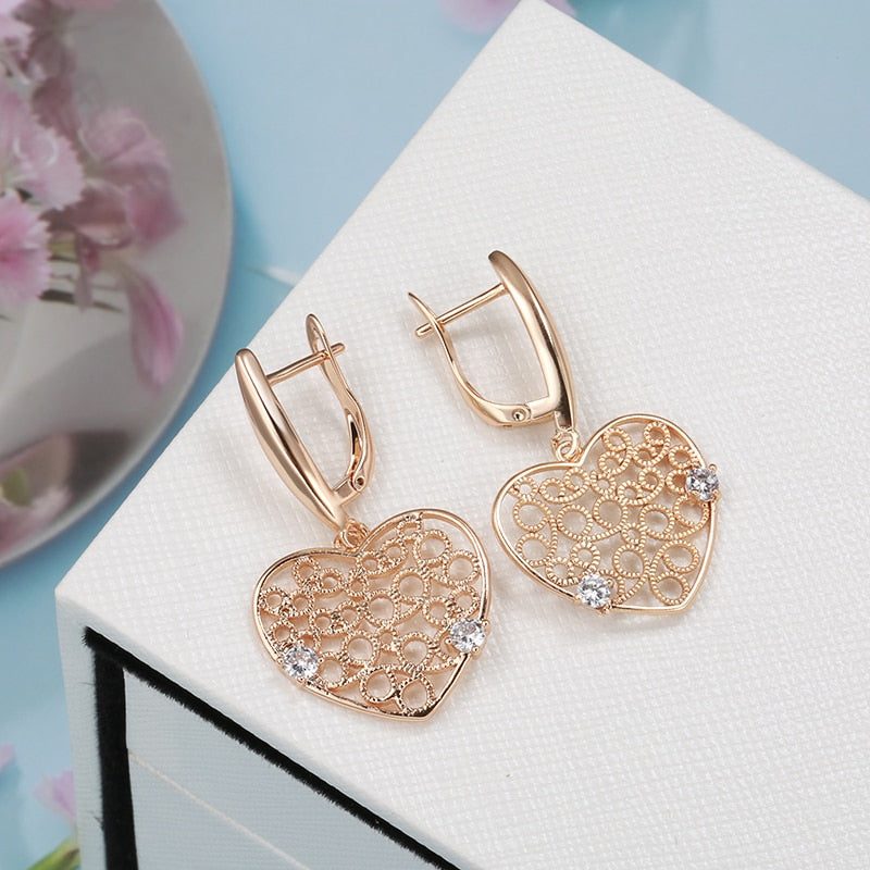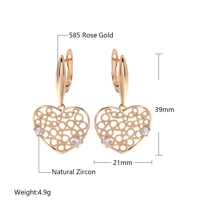 Joyería de oro 585: Pendientes colgantes grandes con circonita hueca en forma de corazón, color oro 585, para bodas, fiestas y mujeres, accesorios de joyería de lujo.