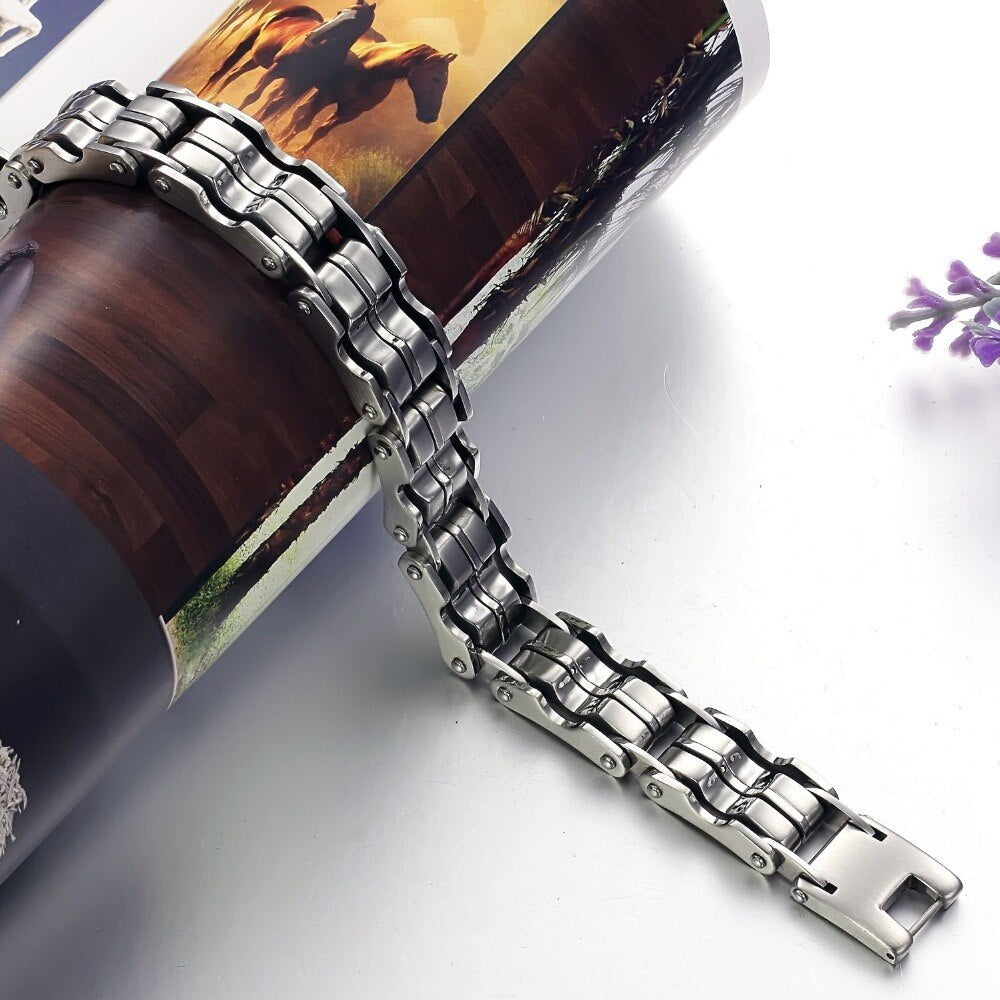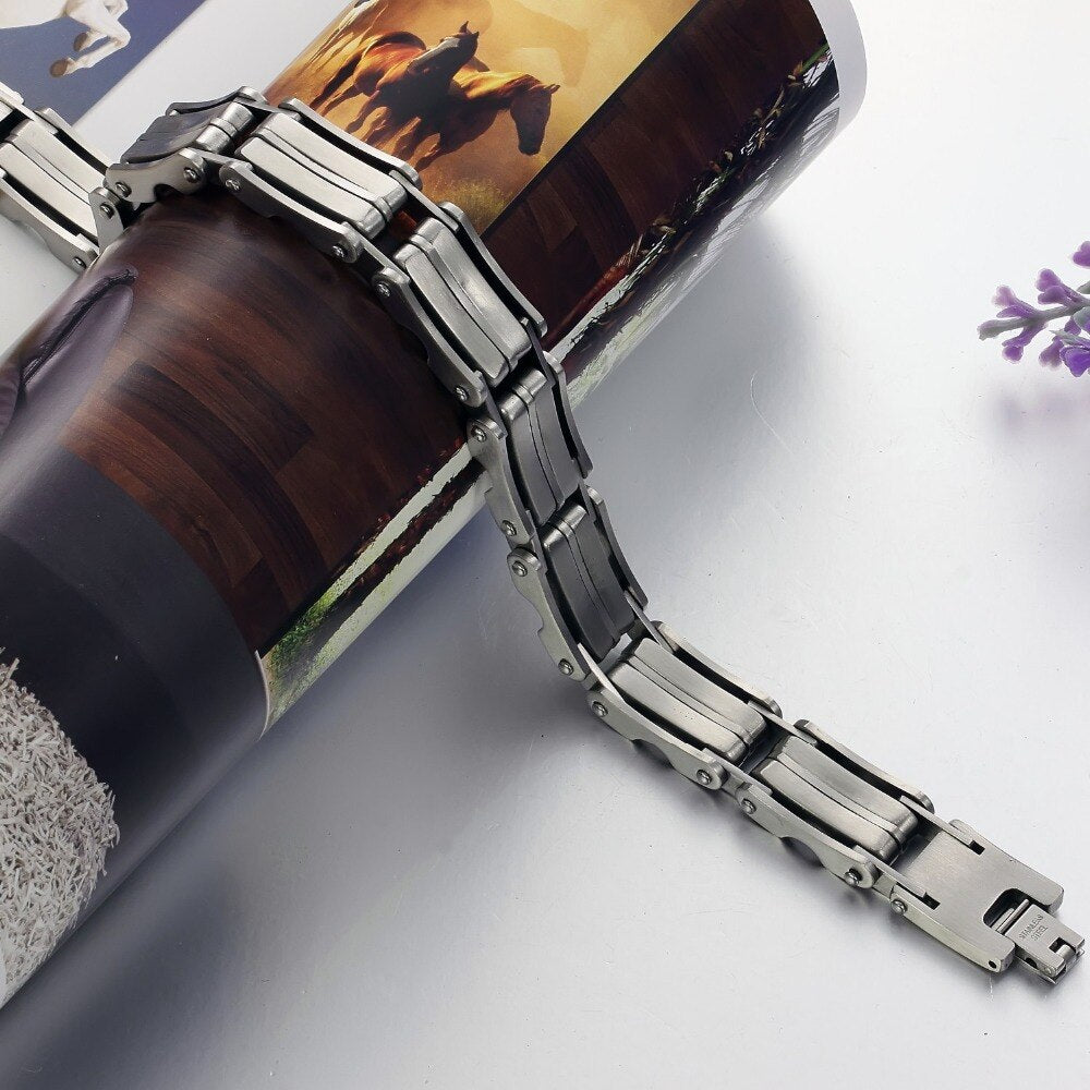 Pulsera clásica para hombre de 12,5 mm de ancho y 23 cm de cadena de eslabones con dijes.