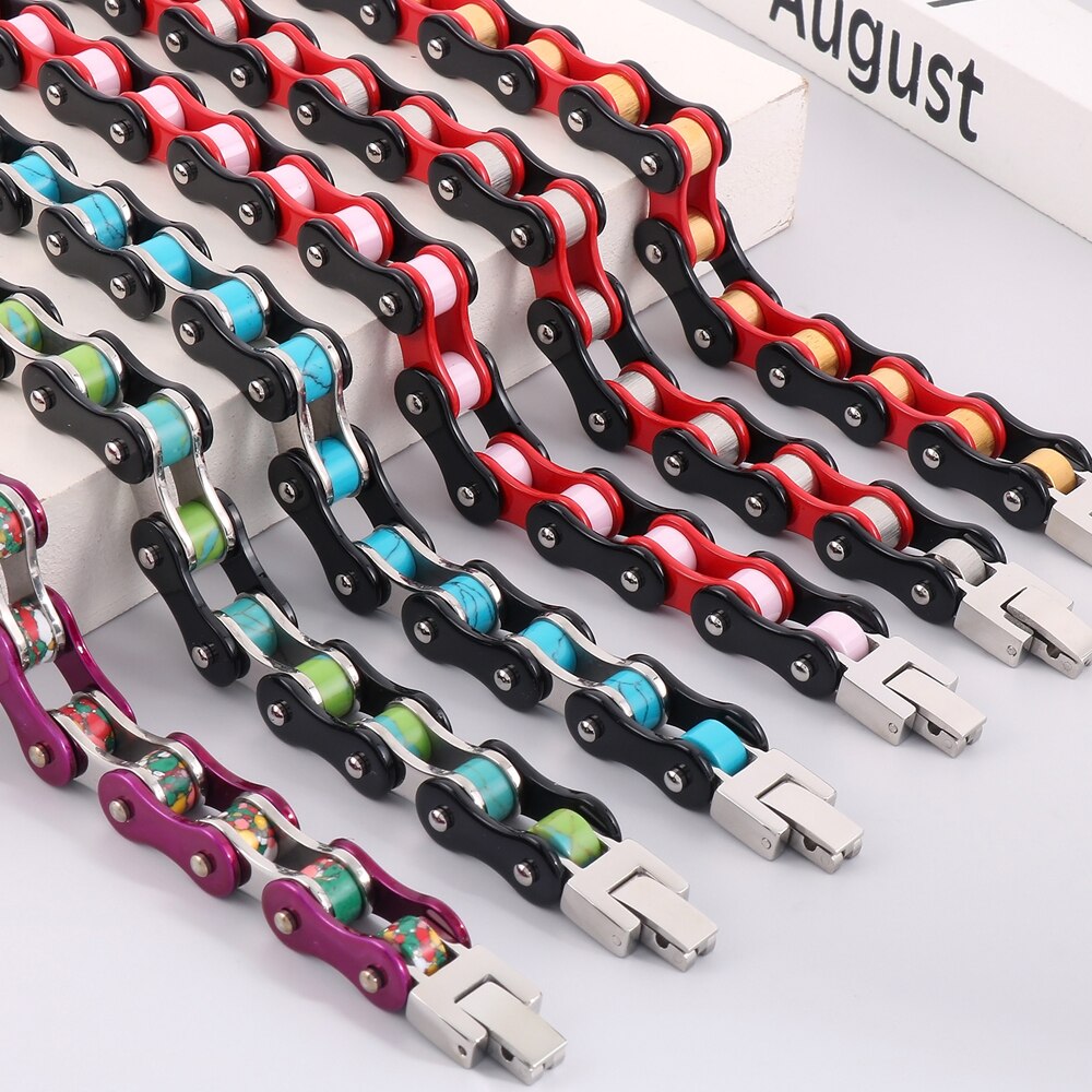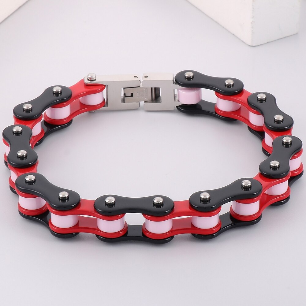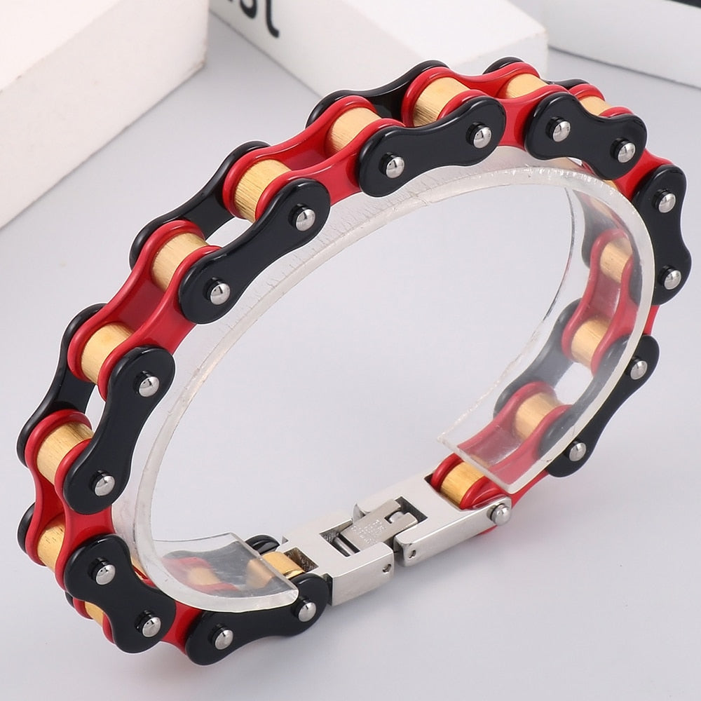 Pulsera clásica de motociclista para hombre, de acero inoxidable rojo, con cadena de motociclista.