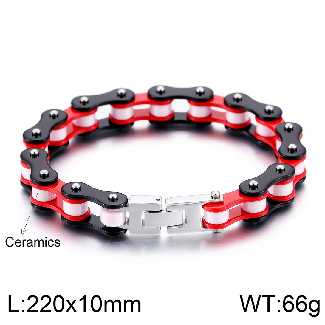 Pulsera clásica de motociclista para hombre, de acero inoxidable rojo, con cadena de motociclista, 8,7 pulgadas y 10 mm de ancho.
