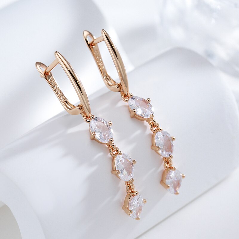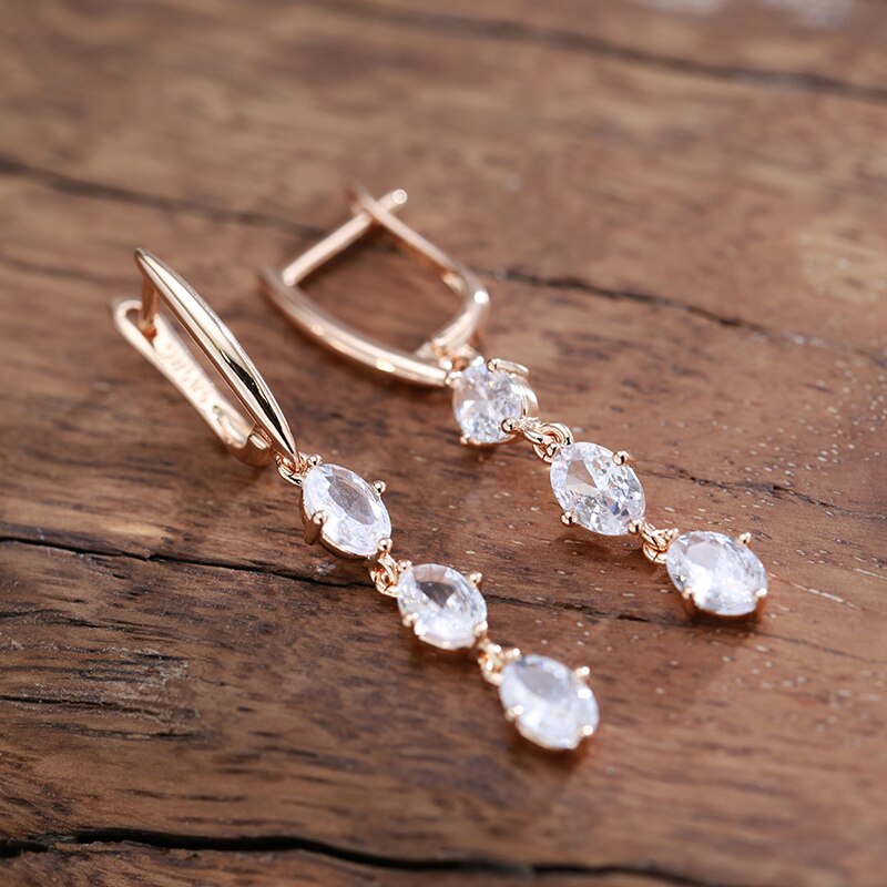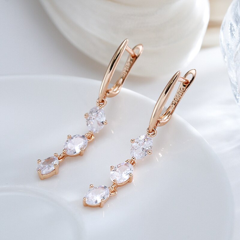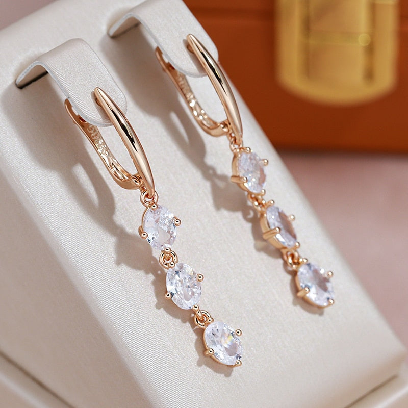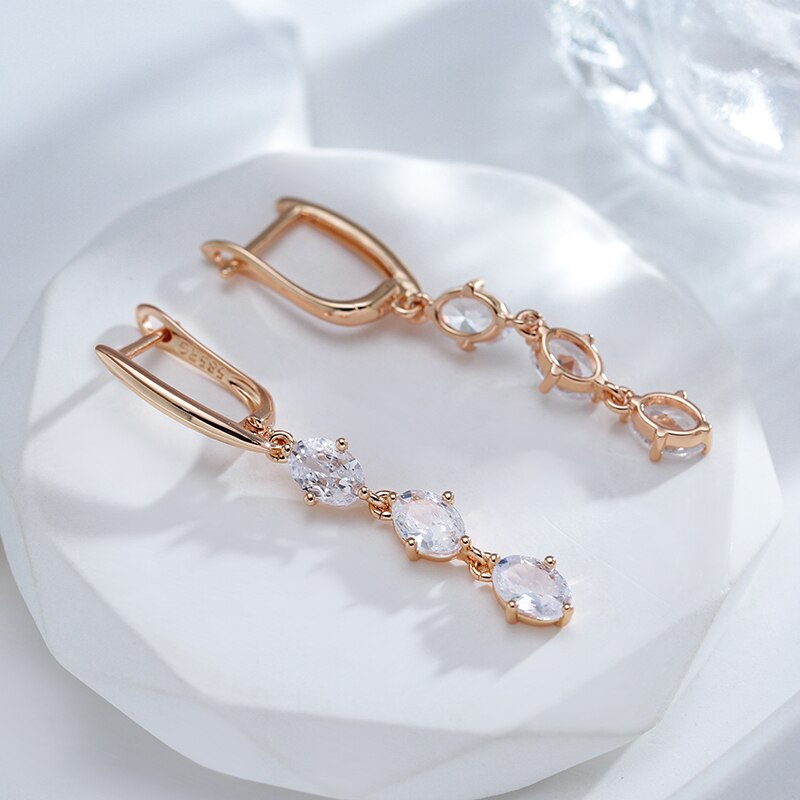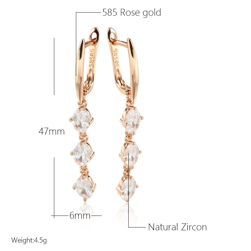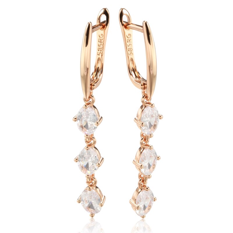 Pendientes colgantes clásicos de circonita blanca ovalada en oro 585, joyería francesa para boda, accesorios de fiesta para mujer.