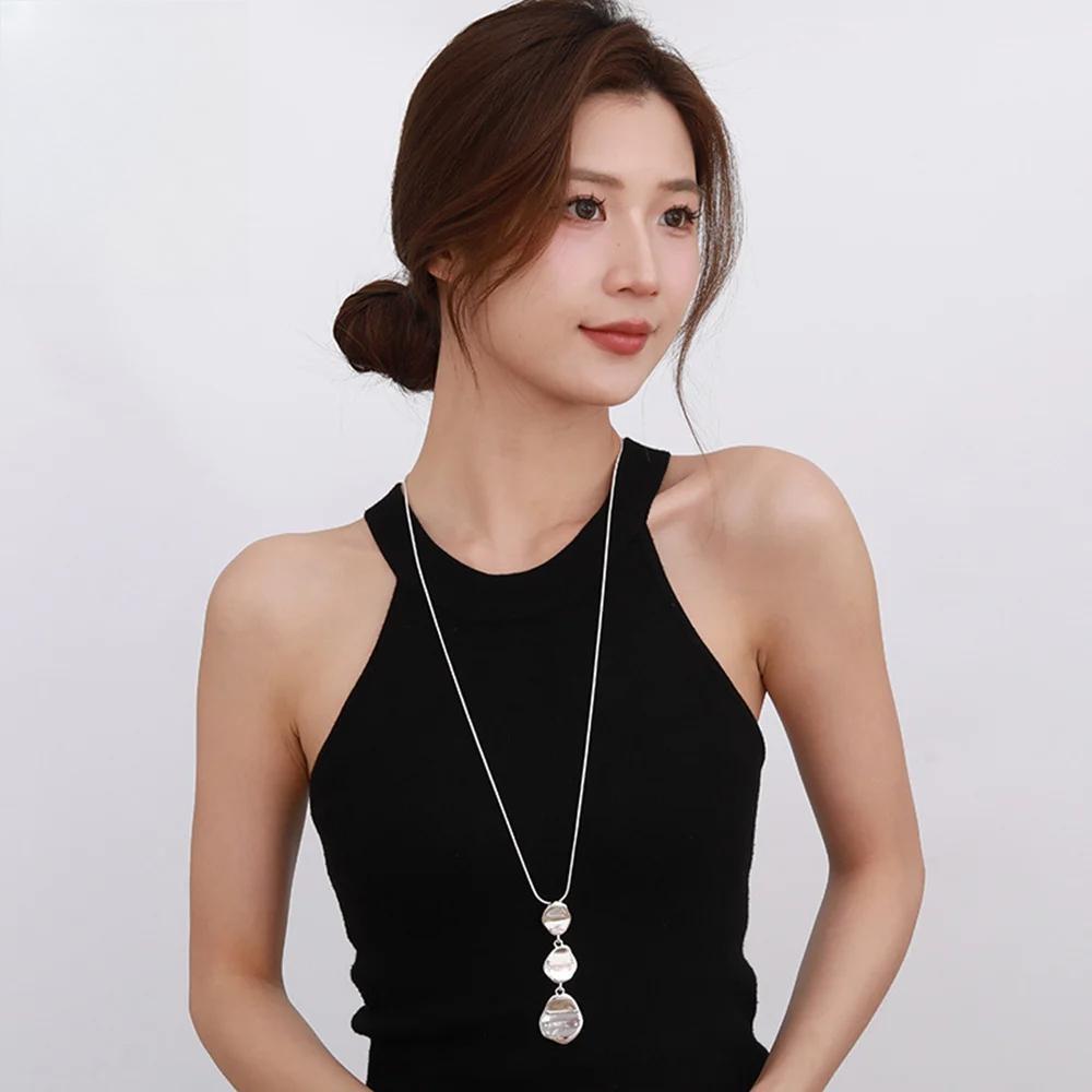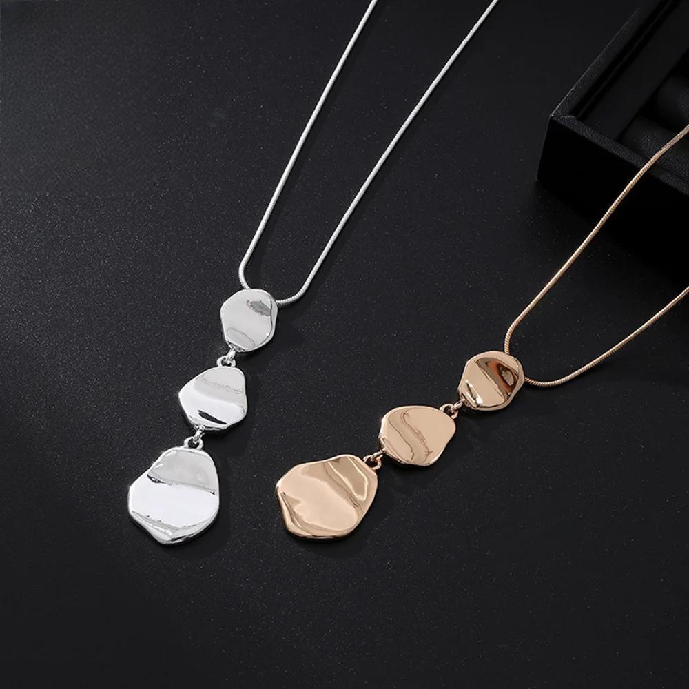 Collar clásico de aleación con colgante, joyería de moda coreana, cadena larga geométrica para niña.