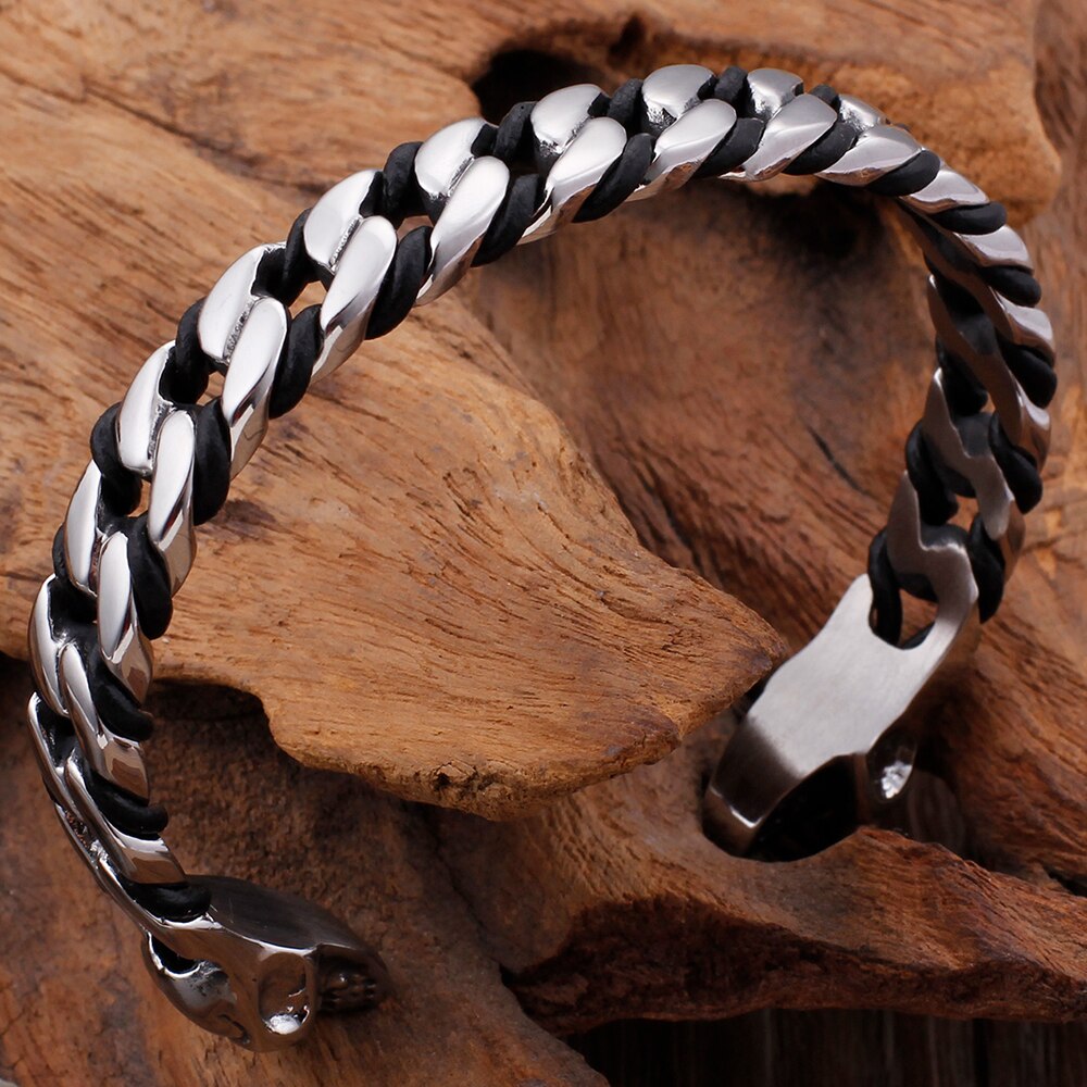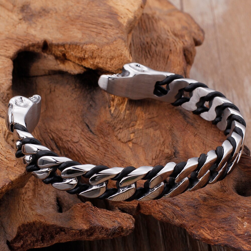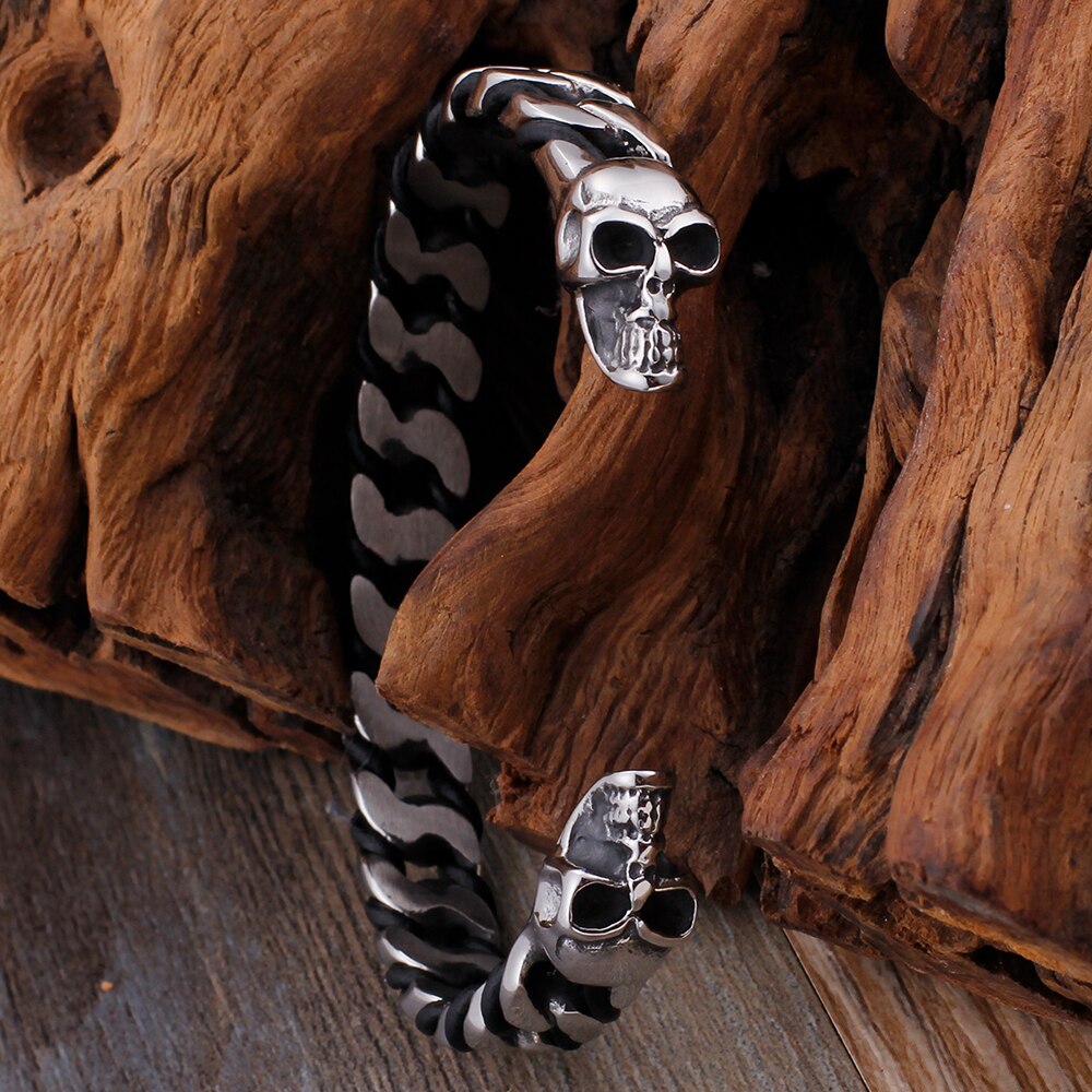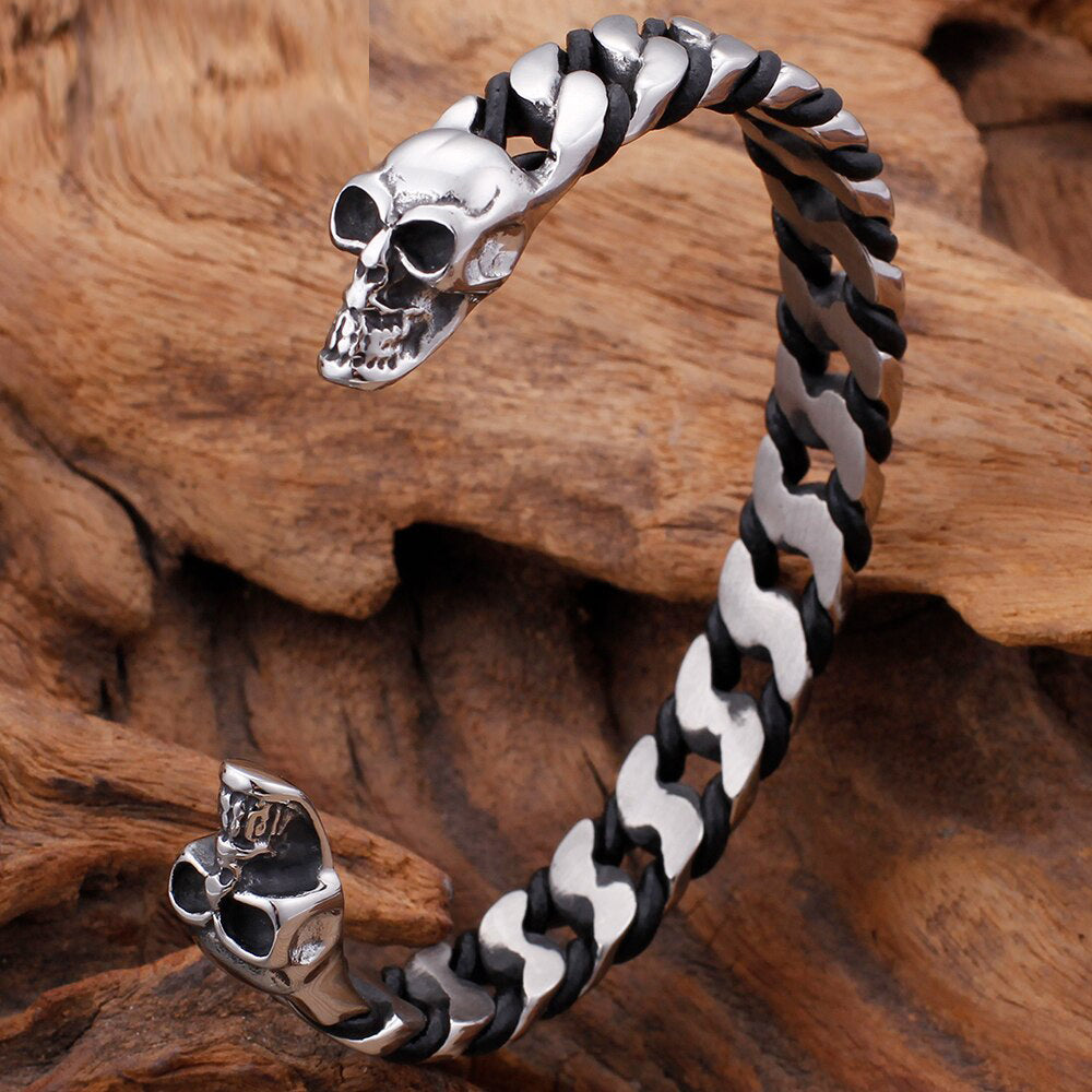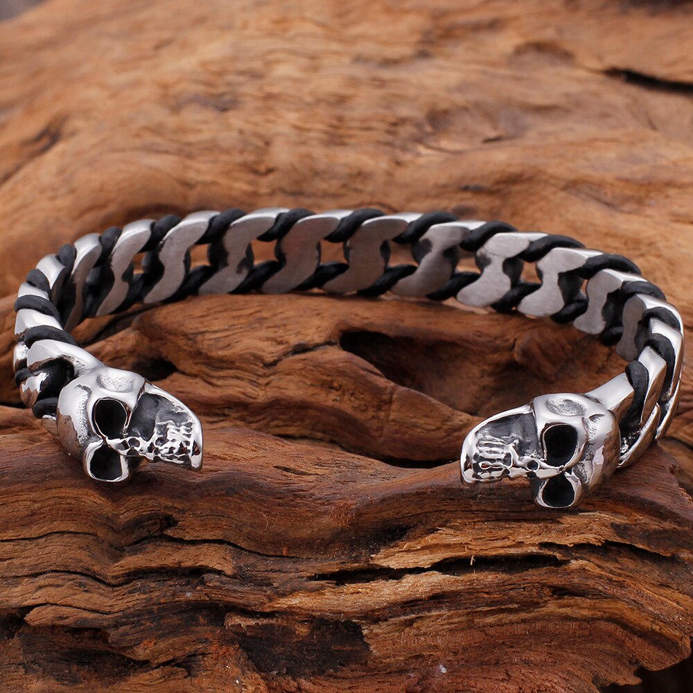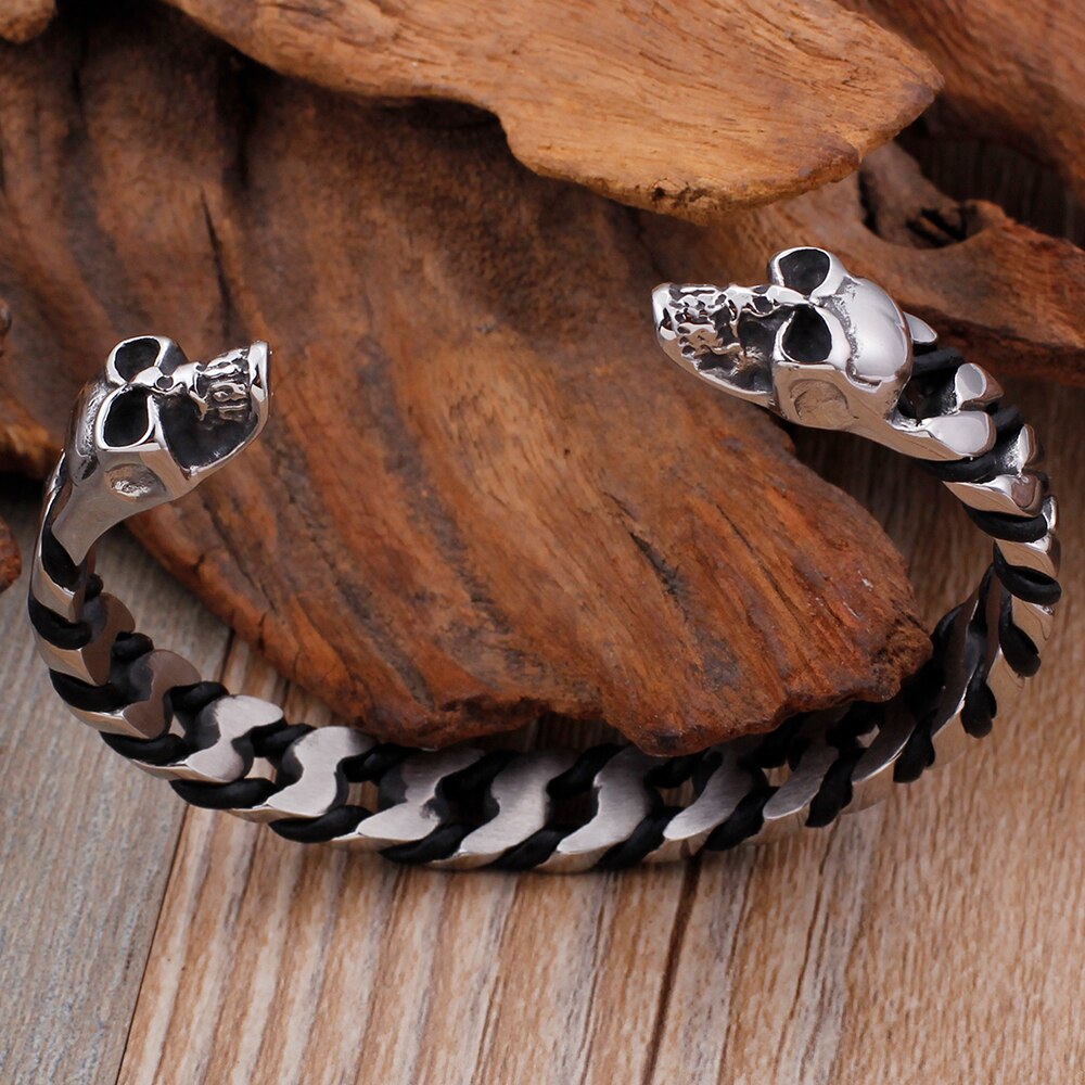 Pulsera clásica punk gótica de acero inoxidable macizo con calavera abierta para hombre, joyería rockera para fiestas.