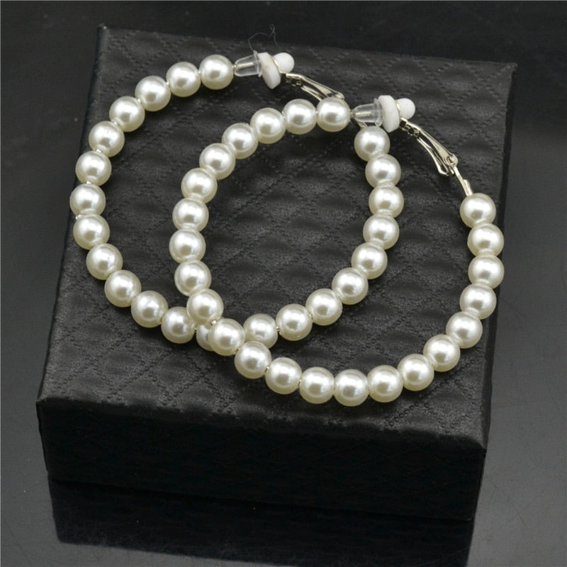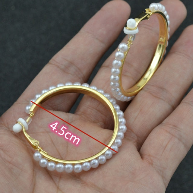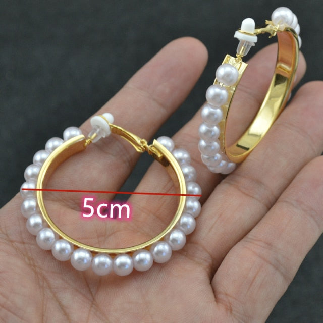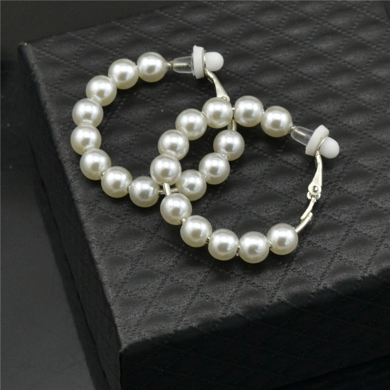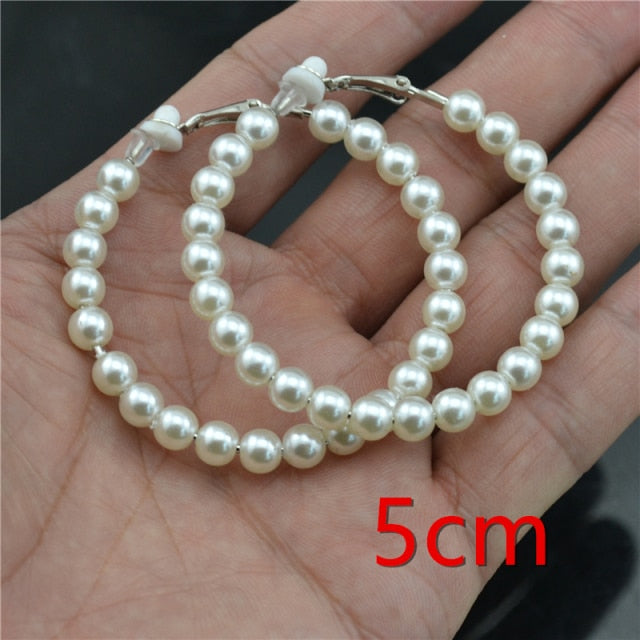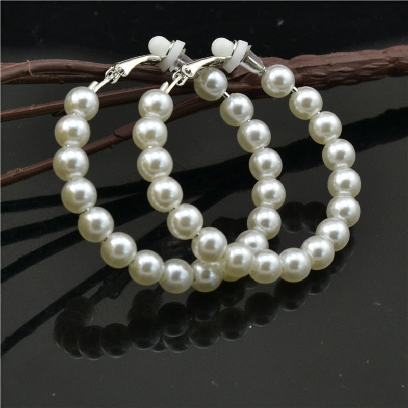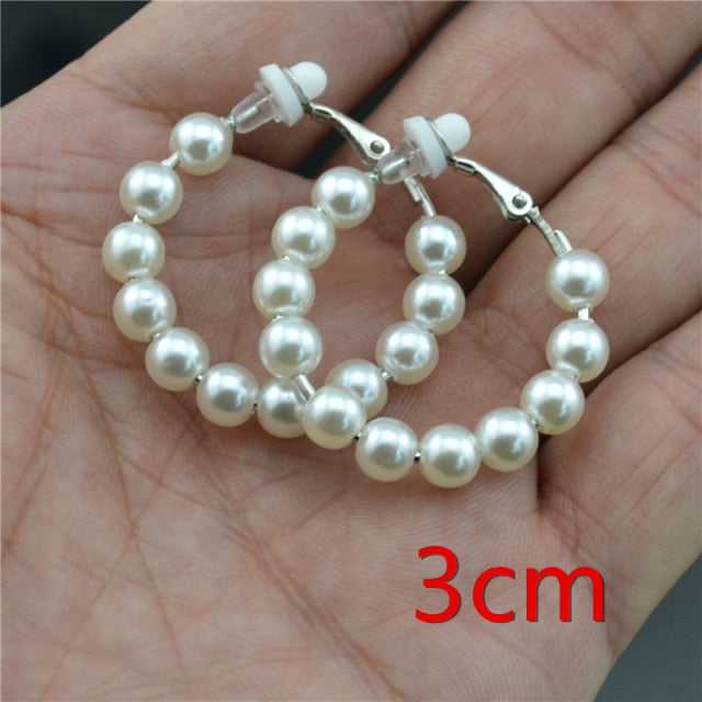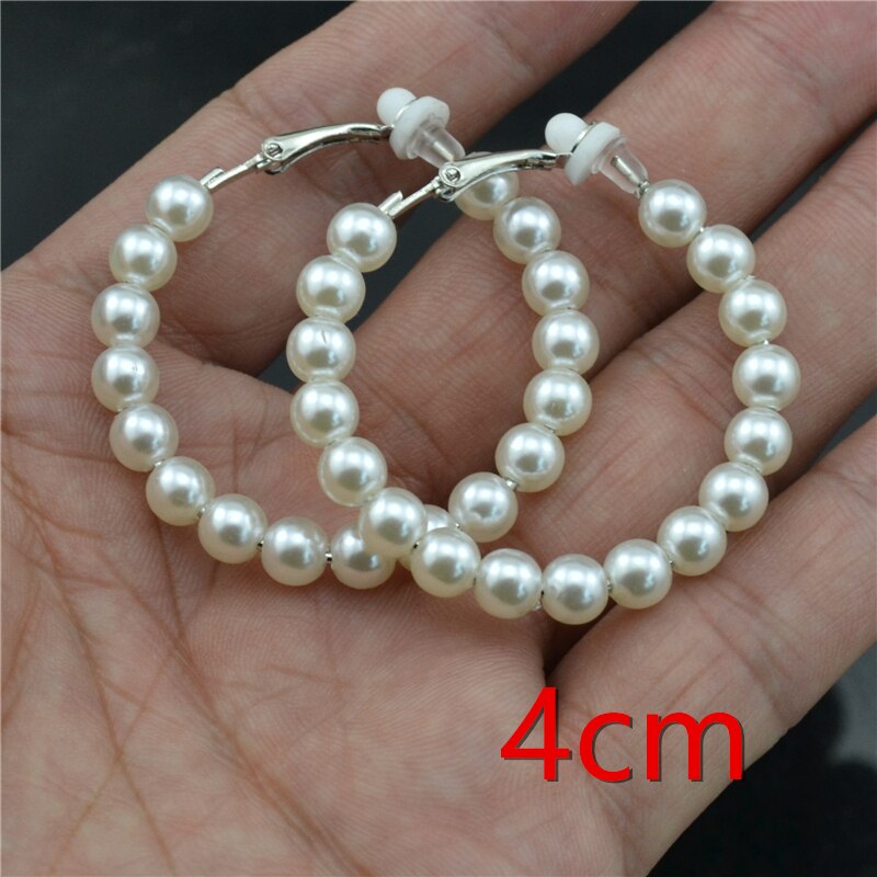 Pendientes de moda: pendientes de clip para mujer sin perforar, con cuentas de plástico y anillos circulares grandes, joyería de moda, pendientes de aro para mujer.