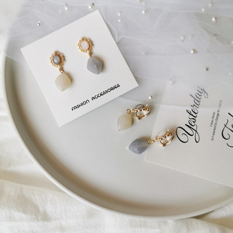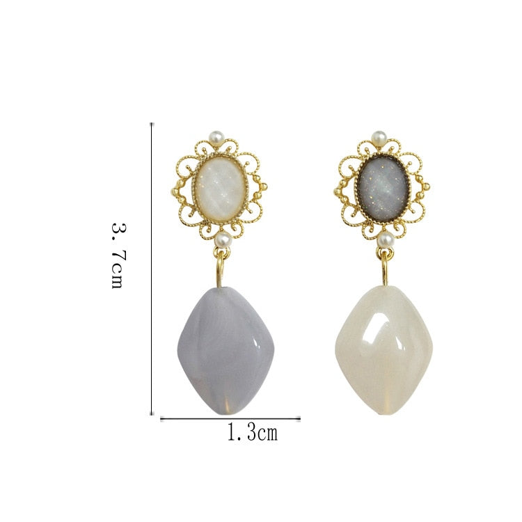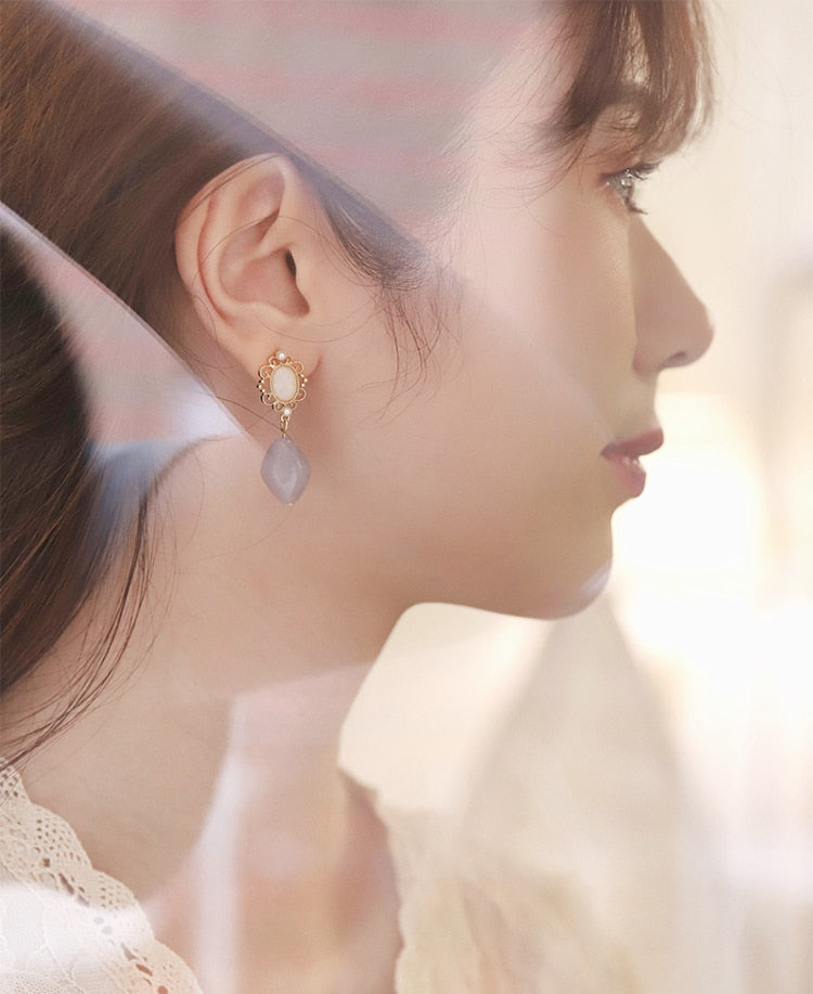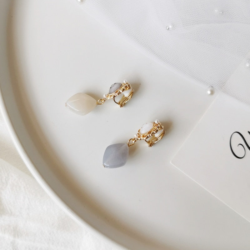 Pendientes de moda - Pendientes de clip para mujer, estilo vintage, con piedra de palacio, sin perforar, estilo barroco, gris, blanco, con forma de gota de agua.