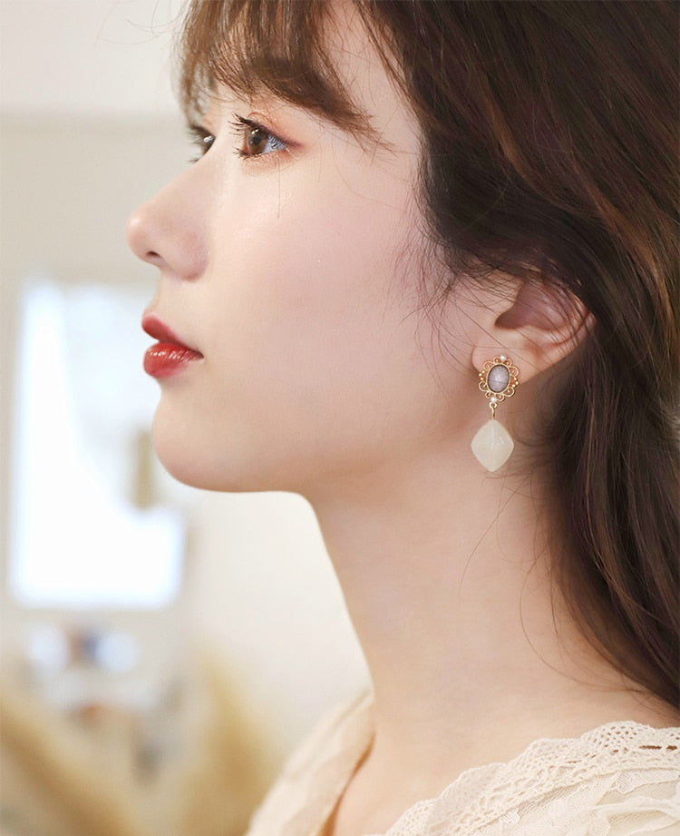 Pendientes de clip para mujer, estilo vintage, con piedra de palacio, sin perforar.