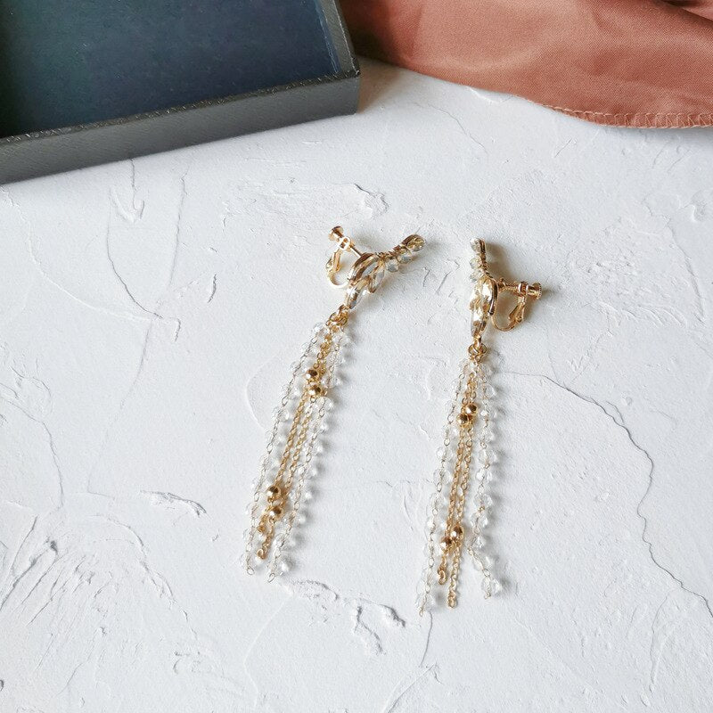 Pendientes de clip con borlas de cristal largas y llamativas con alas de ángel sin perforar