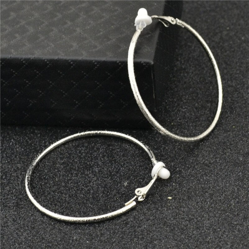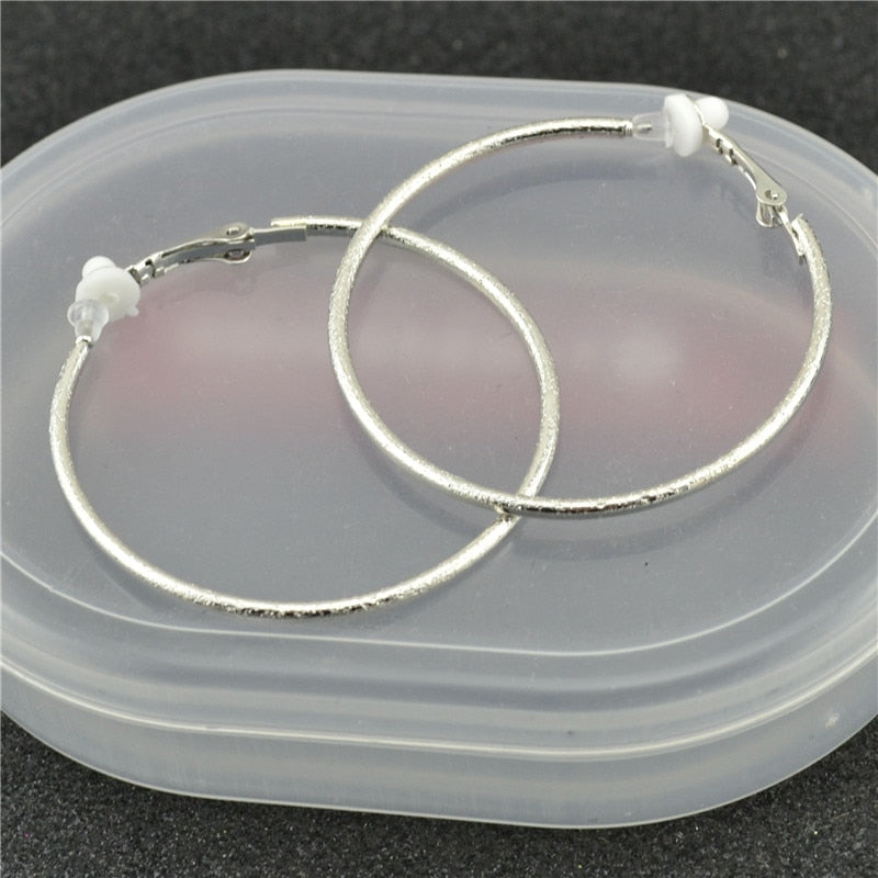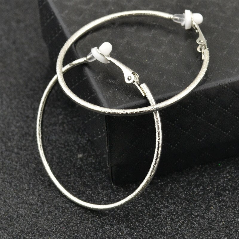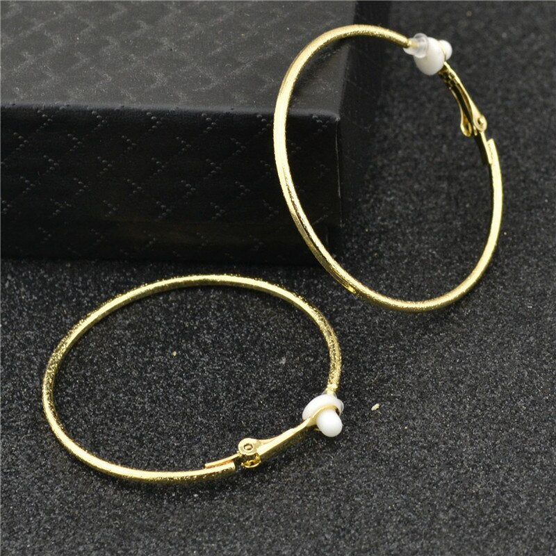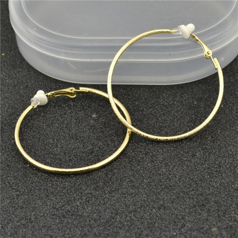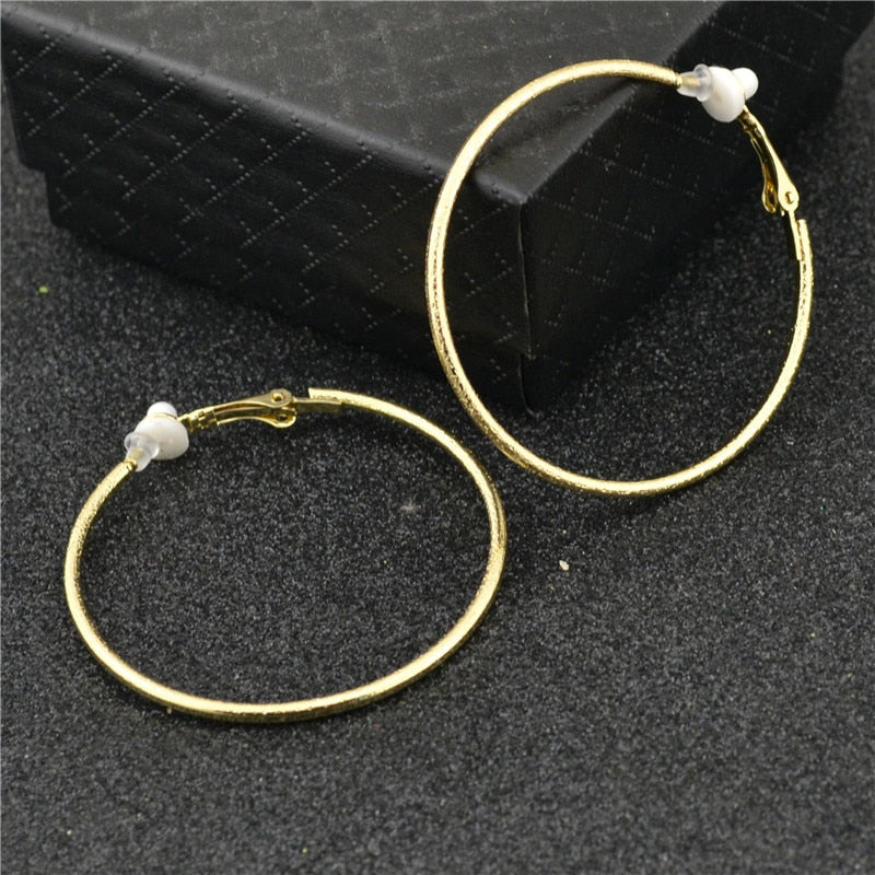 Pendientes de moda - Clip en las orejas Pendientes de mujer con almohadillas de goma Sin perforaciones Accesorios de joyería de moda Gran círculo Exfoliante Pendientes de mujer de oro