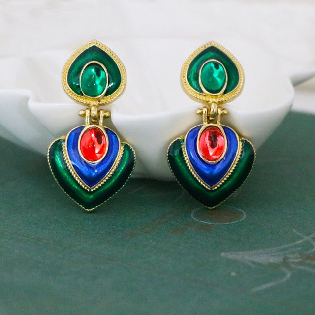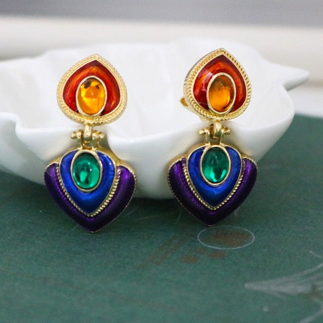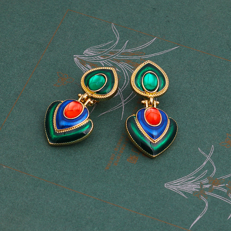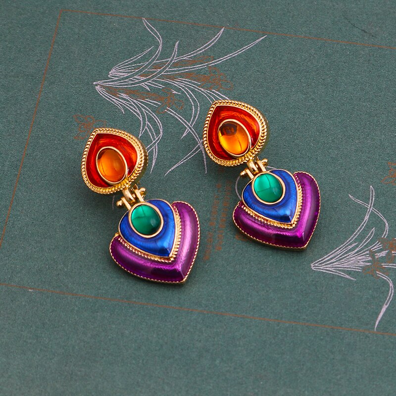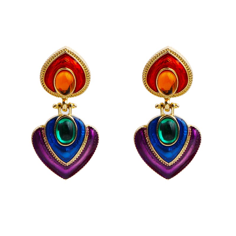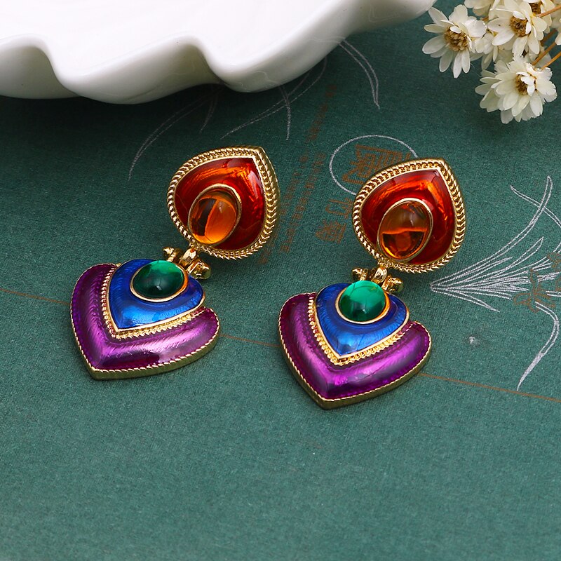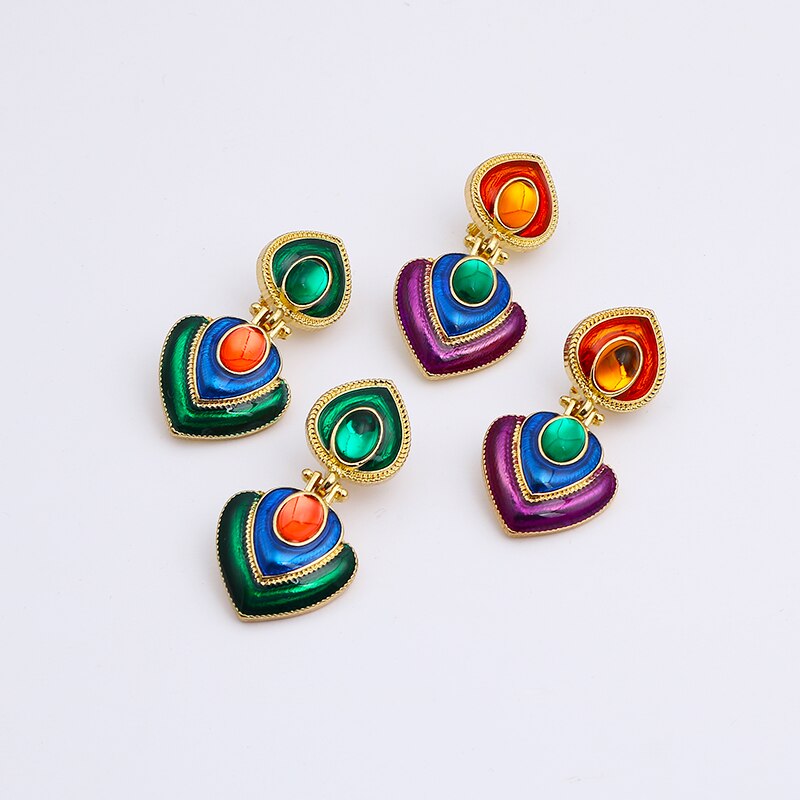 Pendientes de moda: Pendientes de resina de cristal de colores con forma de corazón, sin perforar, para mujer, con dijes maxi, llamativos, con clip para las orejas, joyería.