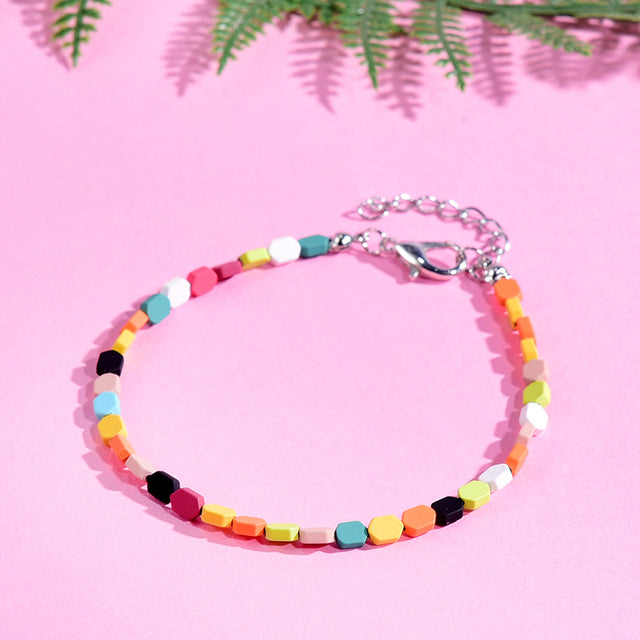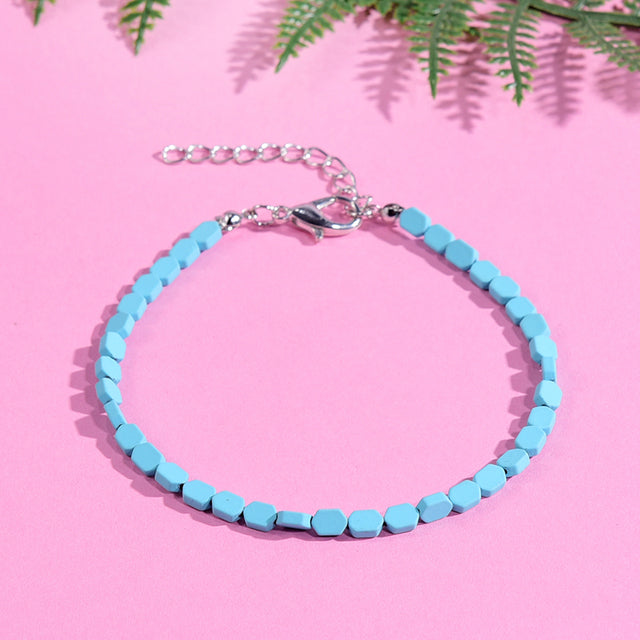 Tobilleras coloridas de verano para mujer, pulsera de moda en la pierna, cadenas de playa estilo bohemio, cuentas geométricas, accesorios de joyería para el pie.