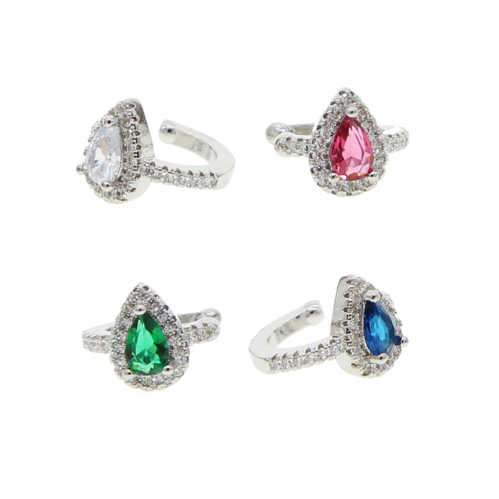 Pendientes de moda: circonita cúbica en forma de lágrima, color blanco, rojo, verde y azul, sin perforaciones, con clip para la oreja, 1 pieza