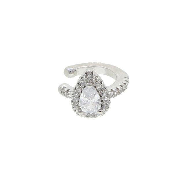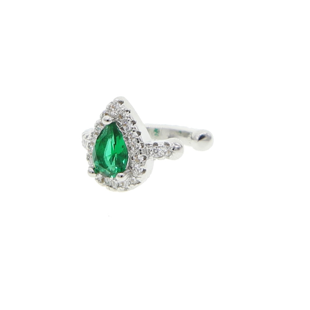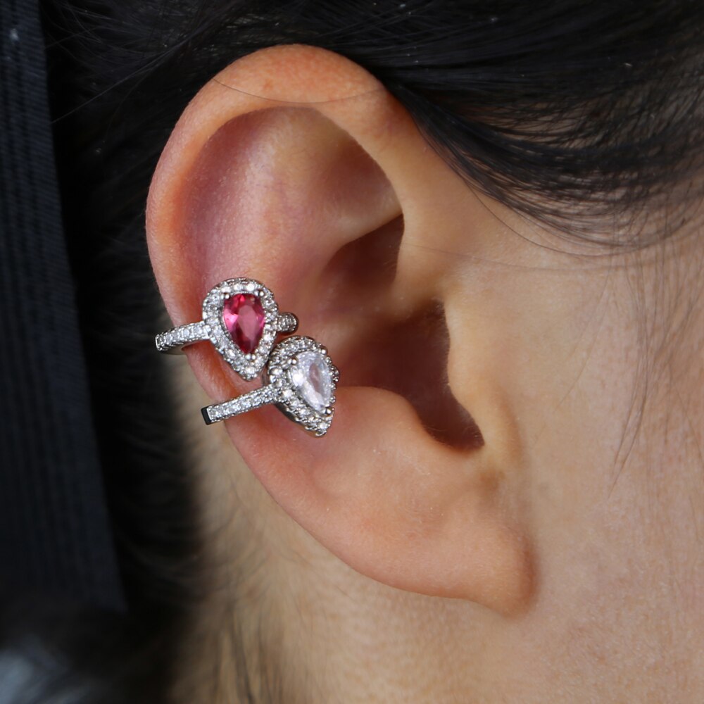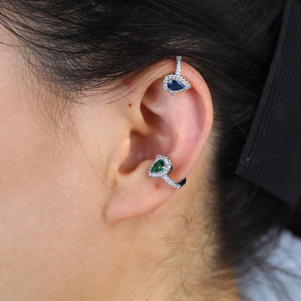 Pendiente de clip con circonita cúbica en forma de lágrima de colores, sin perforación