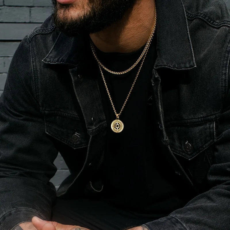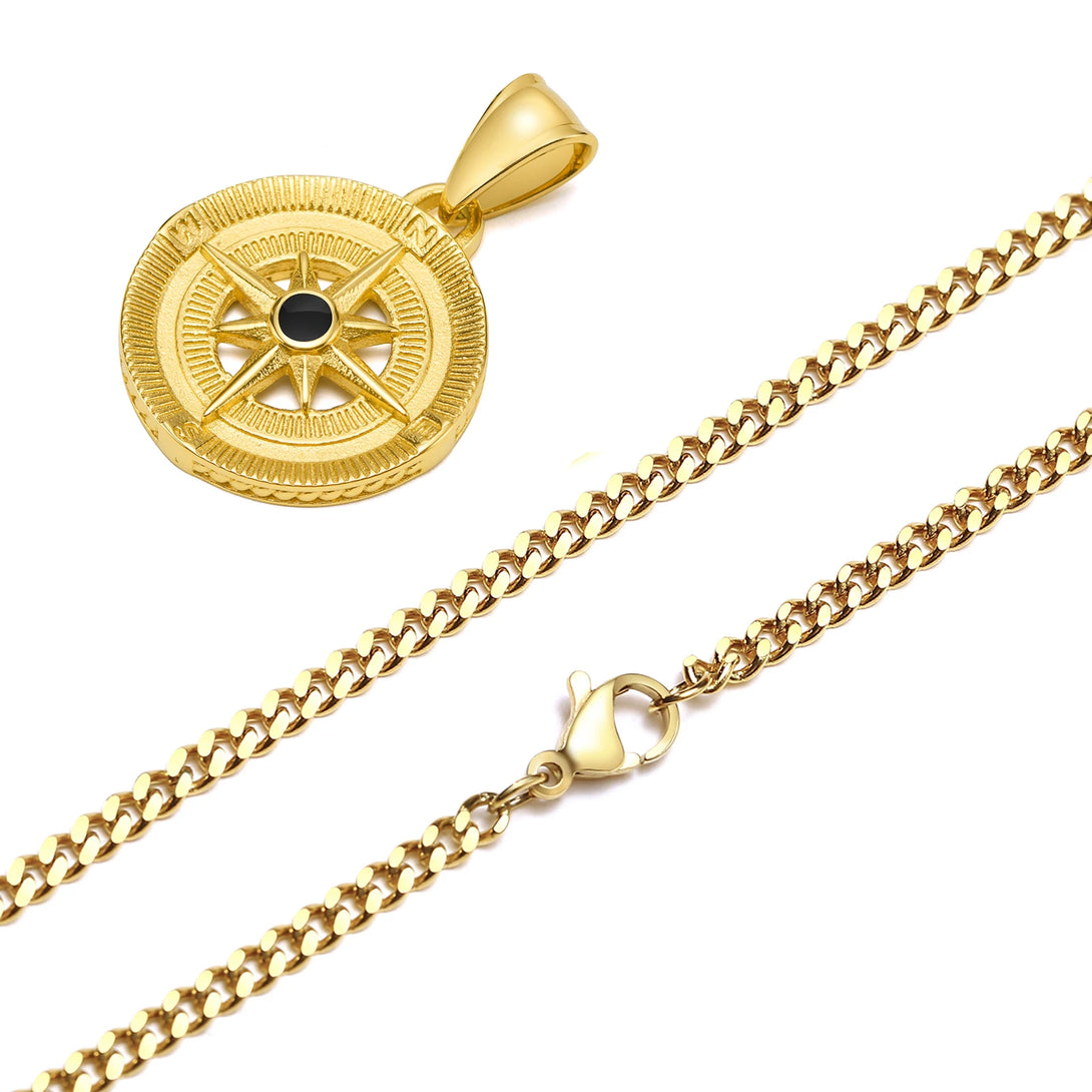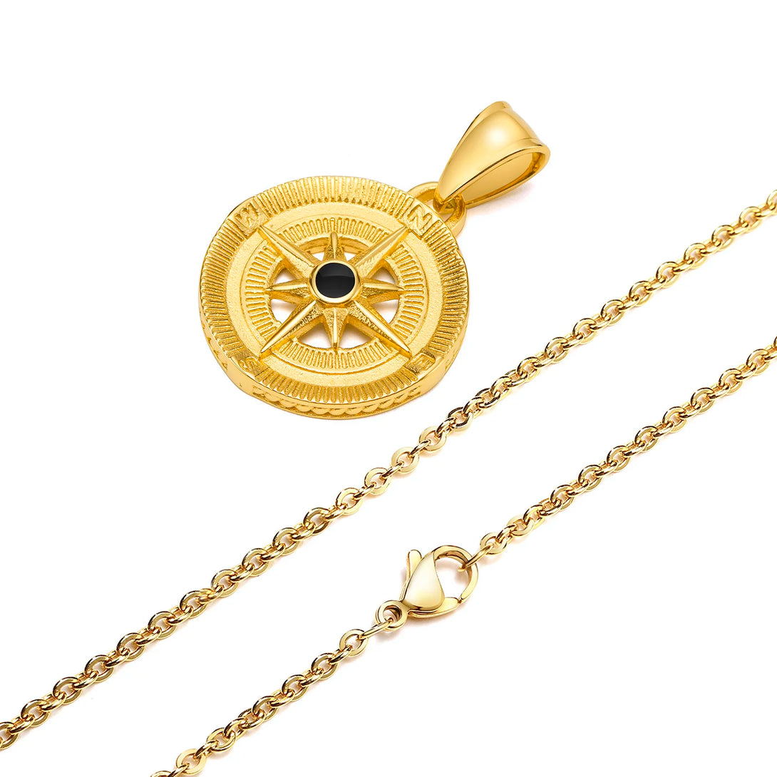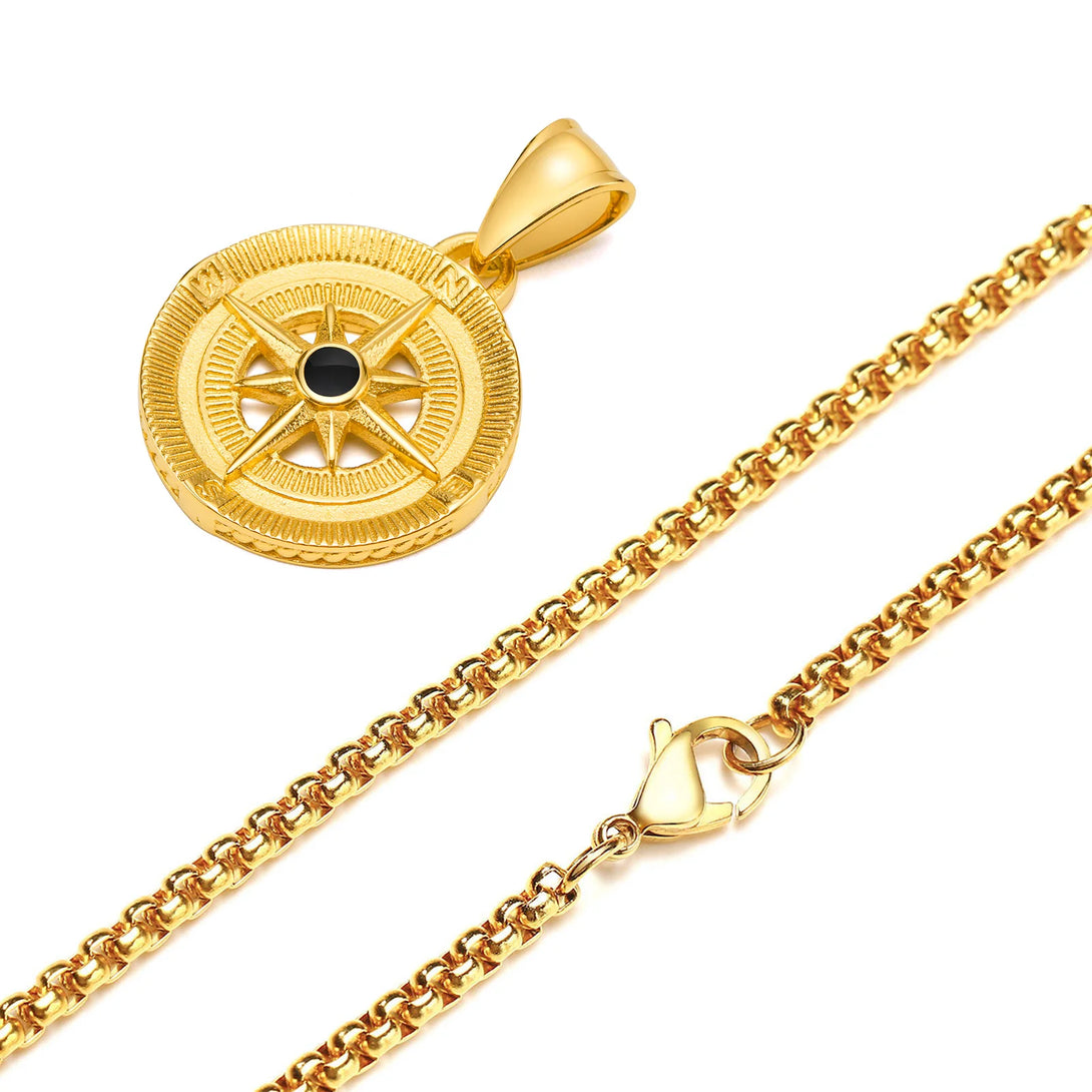 Colgante de brújula y estrella del norte, collar para hombre, joyería de brújula de acero inoxidable, collar de viajero, regalo para hombres.