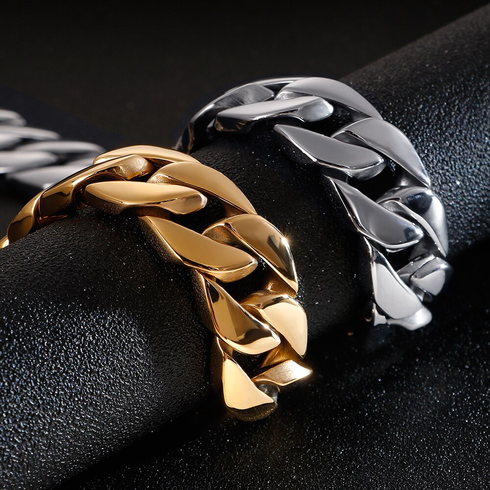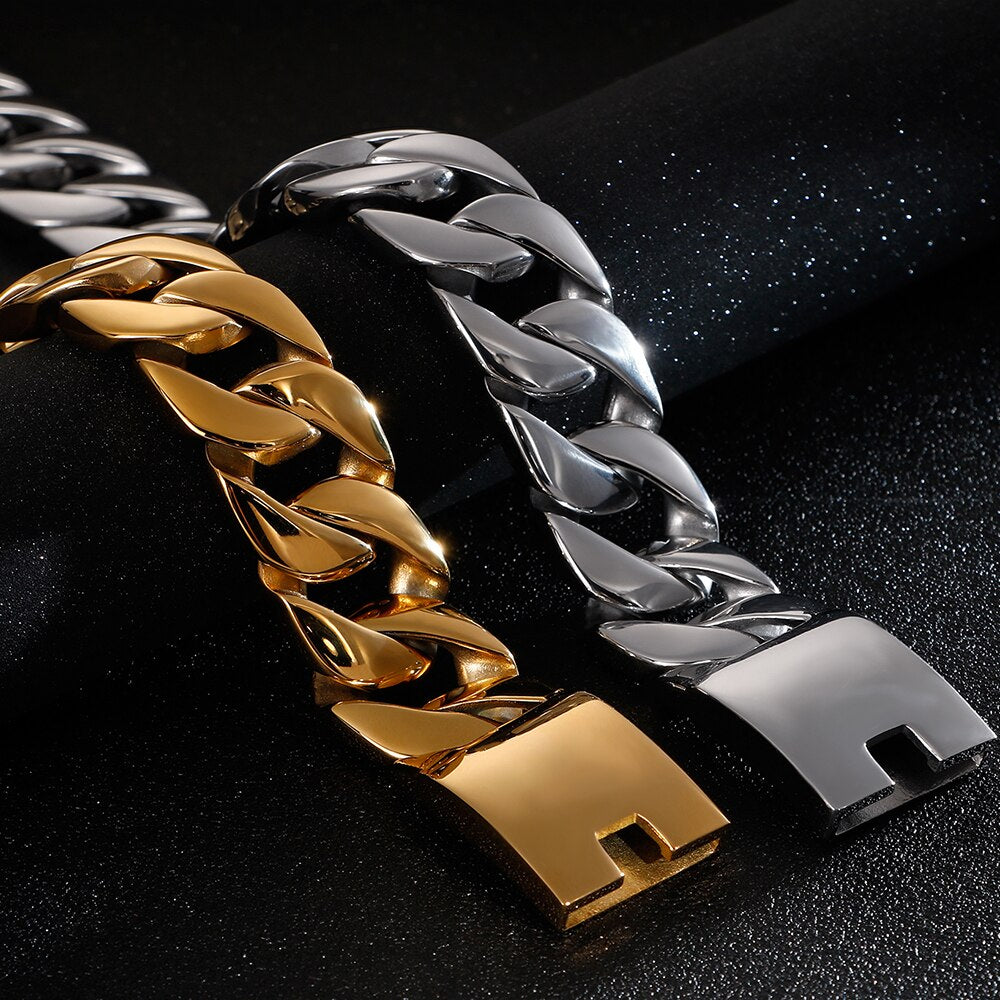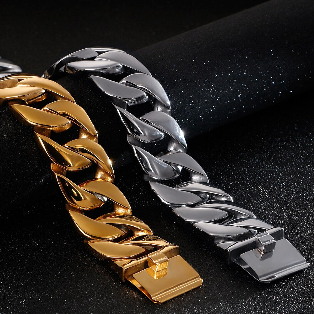 Collar de cadena de eslabones cubanos Miami de 24 mm de ancho para hombre con cierre de caja, joyería de hip hop, collar de acero inoxidable macizo y pesado de 520 g.