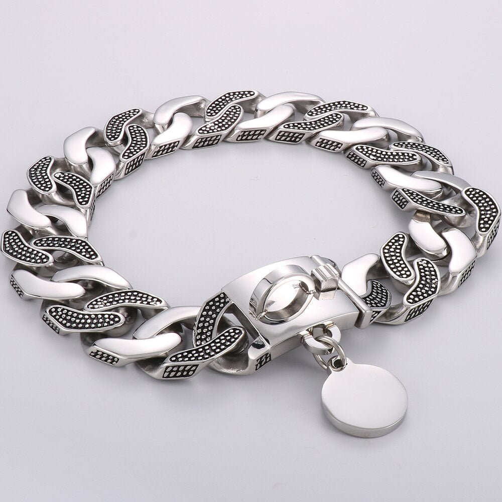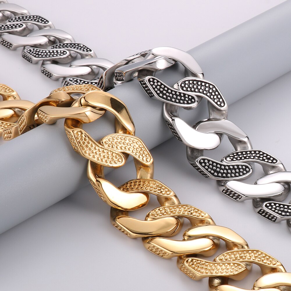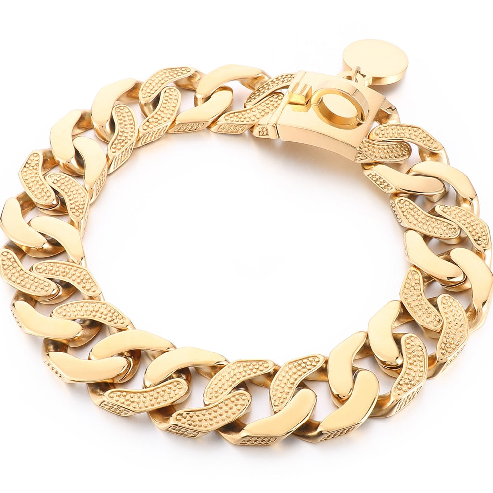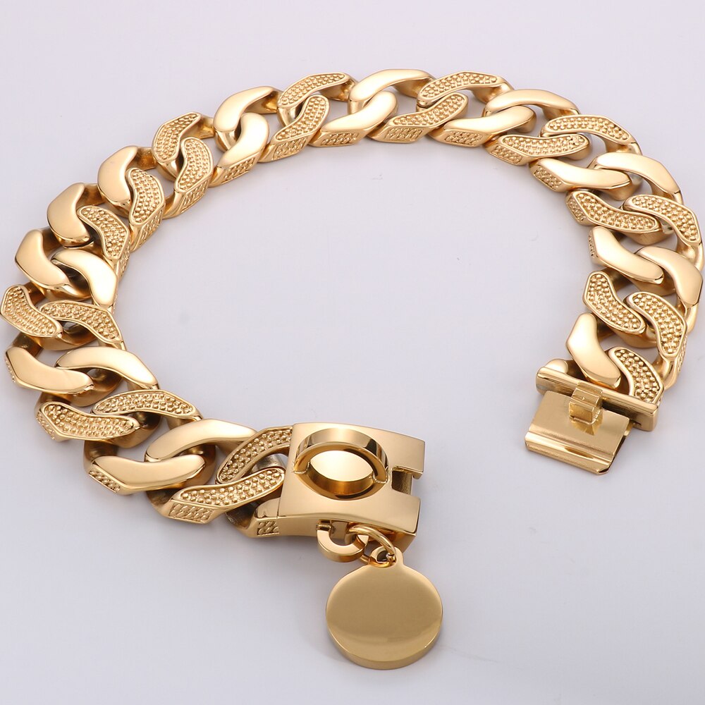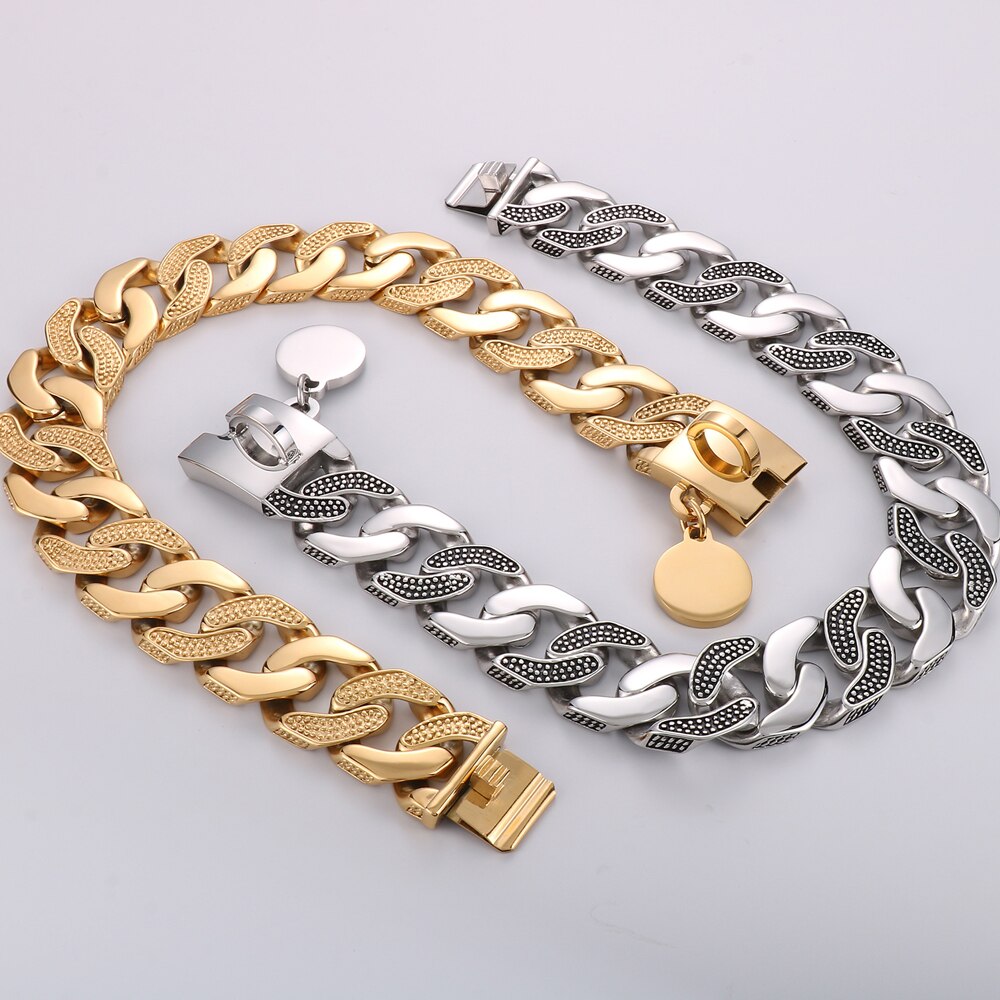 Collar de cadena cubana de 30 mm para hombre y perro, de lujo, chapado en oro, de acero inoxidable pesado, para hombre, joyería para mascotas grabable.