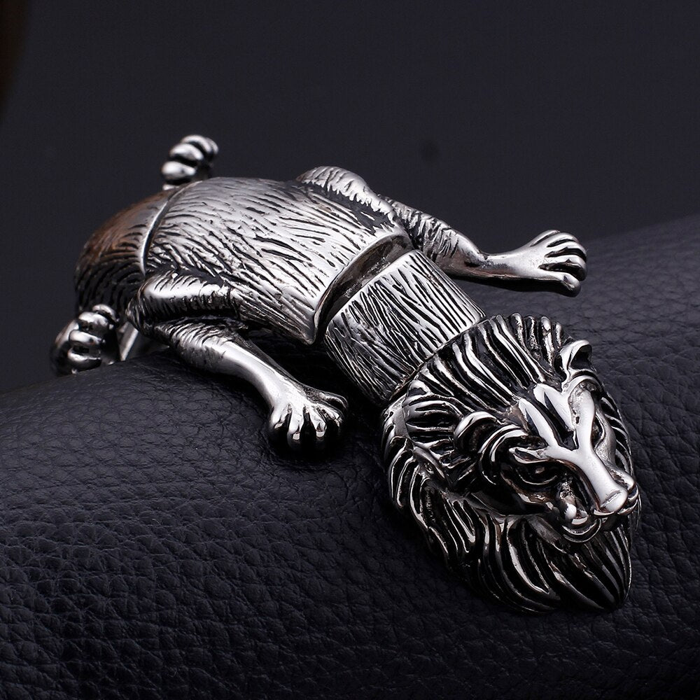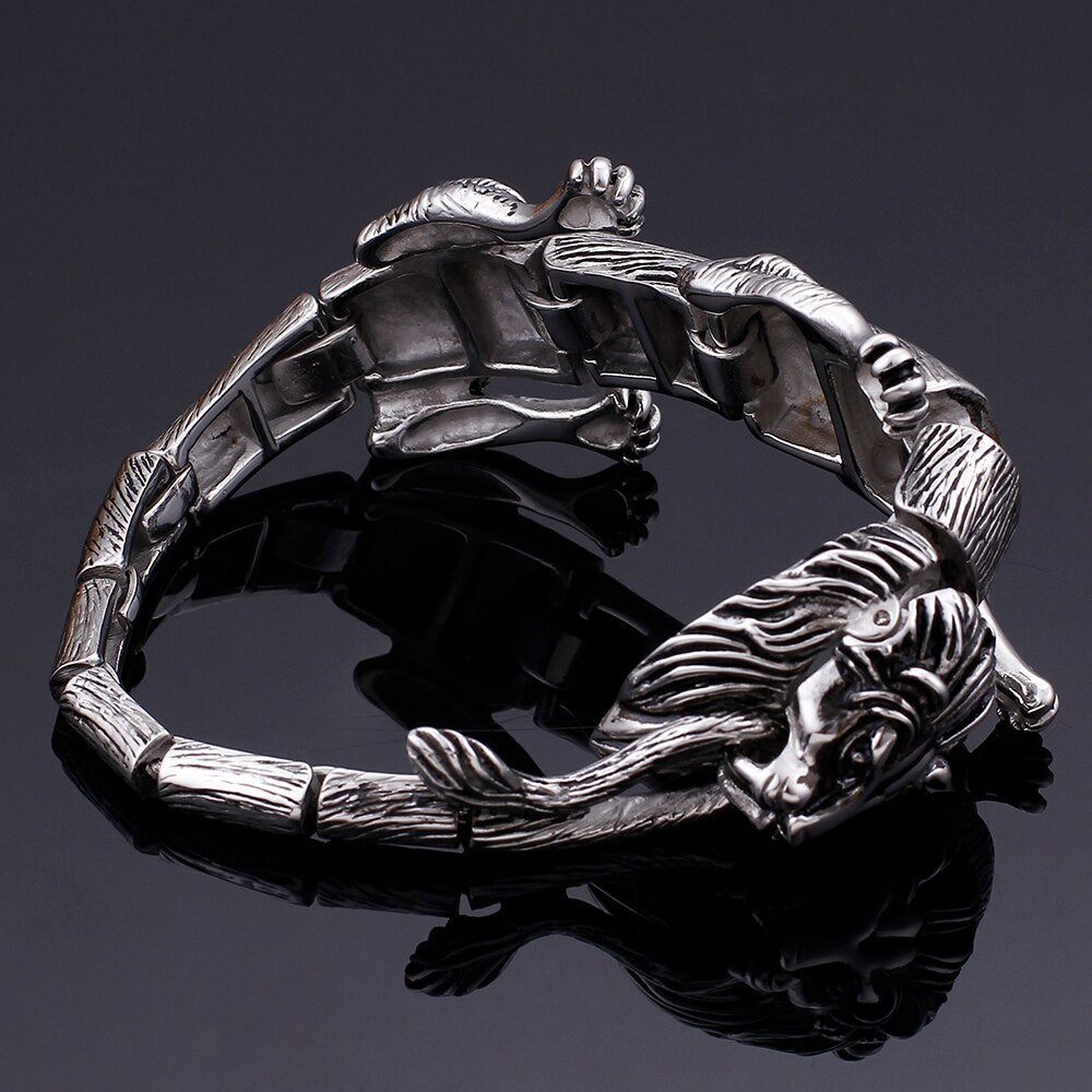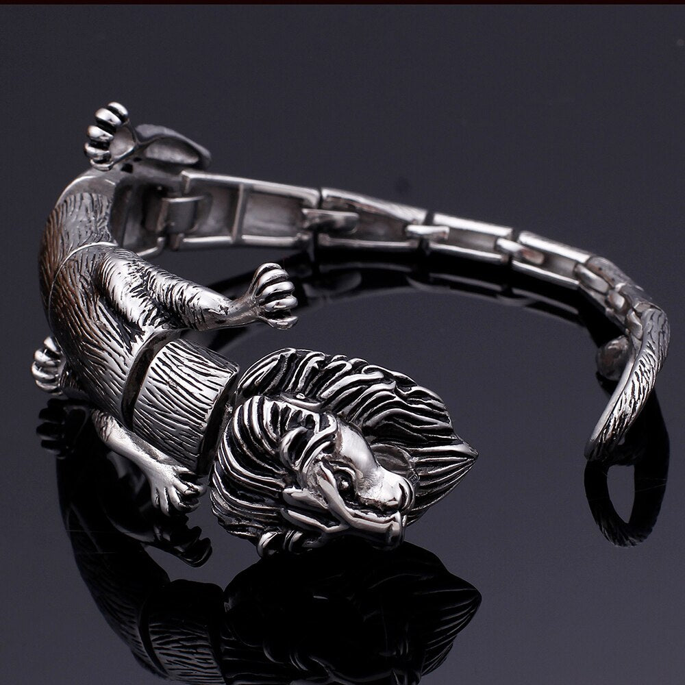 Pulsera de metal fundido con diseño de león gótico para hombre, de acero inoxidable 316L, ideal como regalo de fiesta.