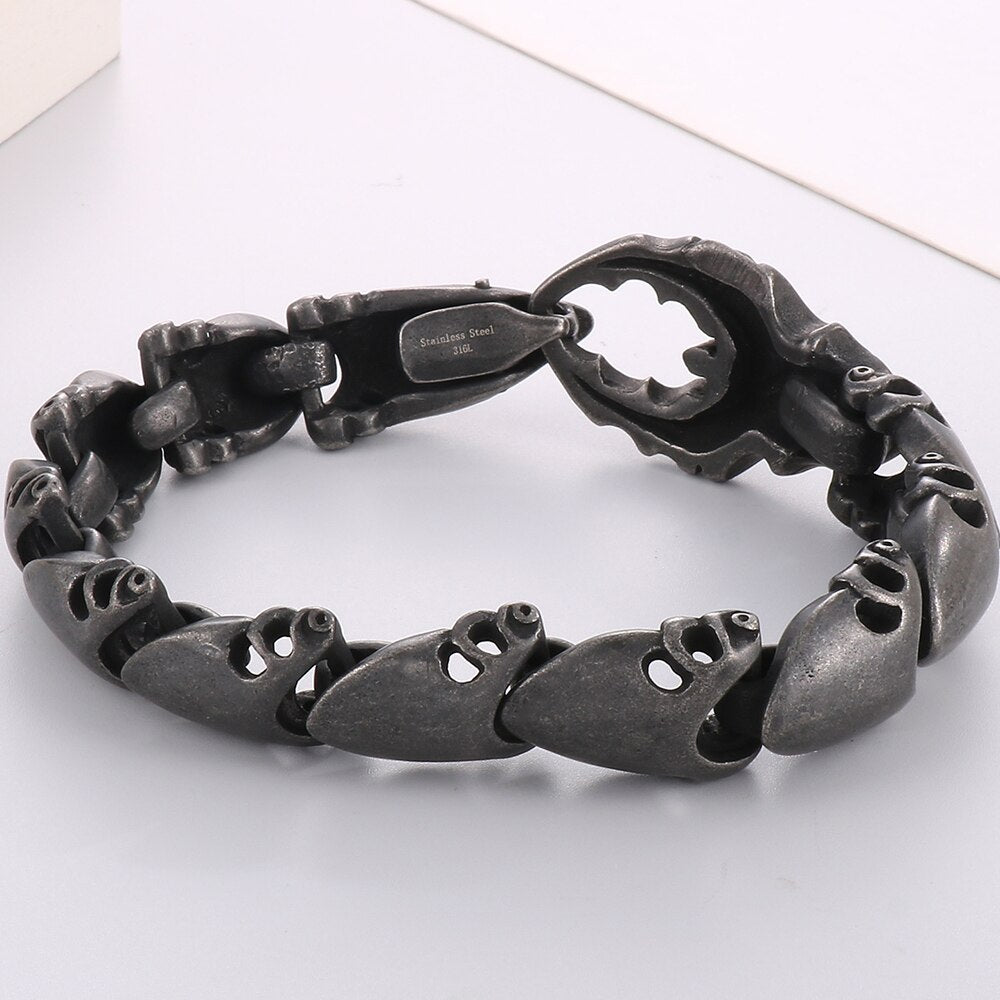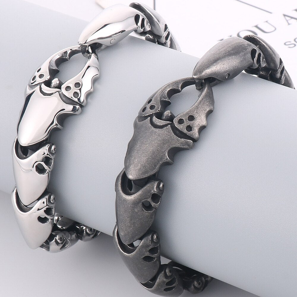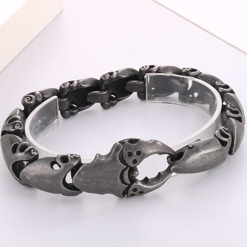 Pulsera con forma de pinza de cangrejo para hombre, de acero inoxidable pulido negro, estilo punk.