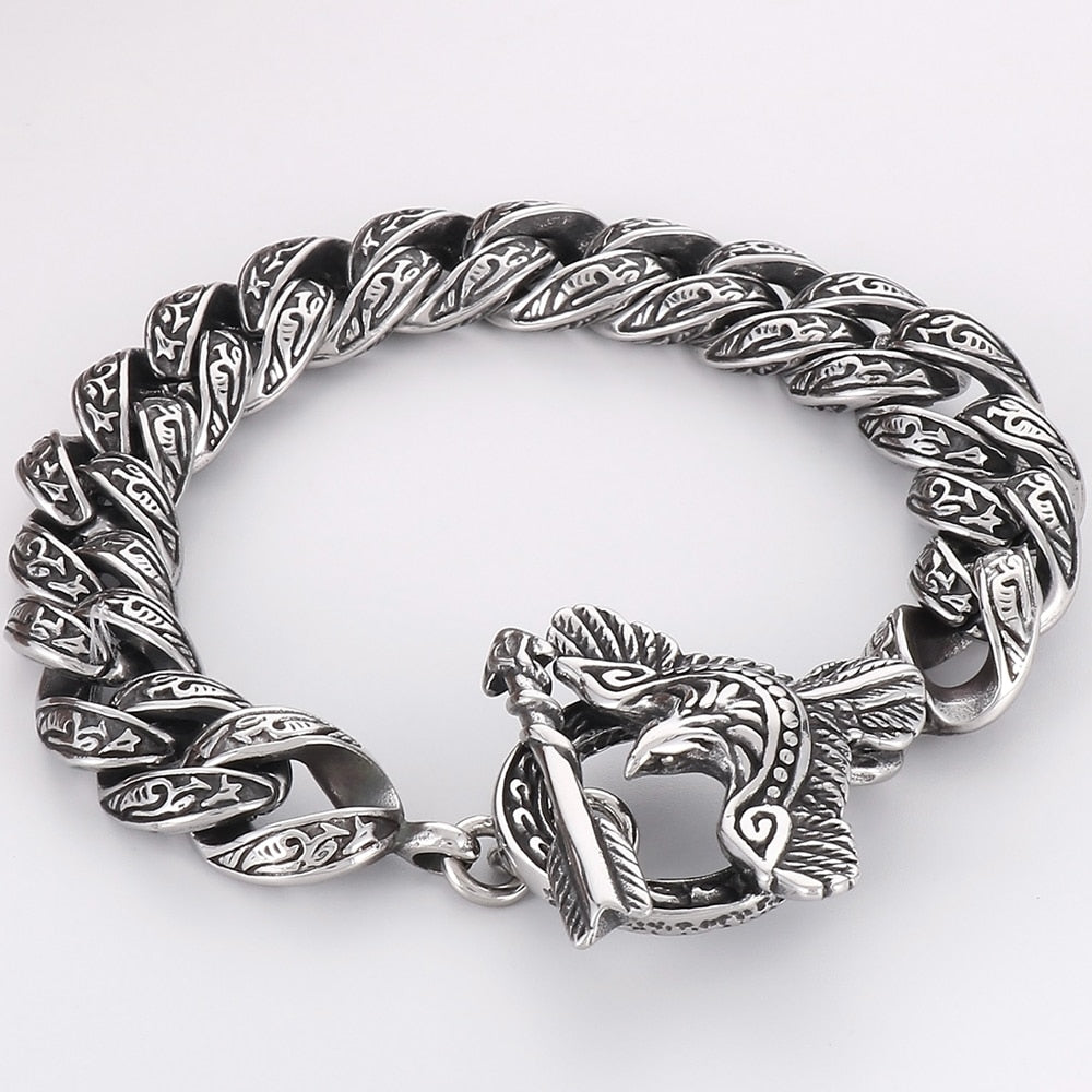 Pulsera de hombre con cabeza de águila, estilo vintage, de acero inoxidable de 13 mm, con cadena de eslabones, estilo motero, accesorios de joyería.