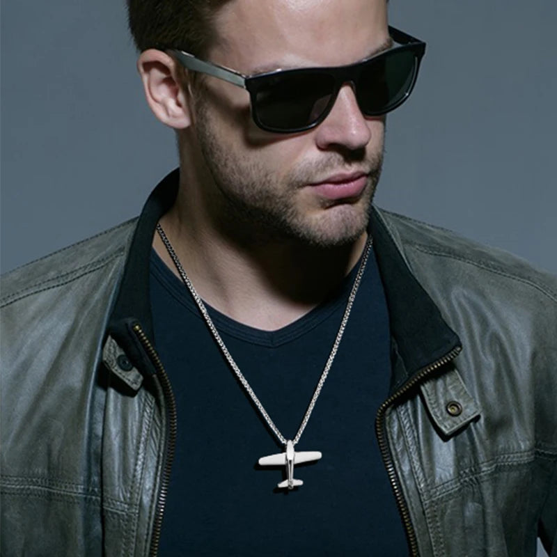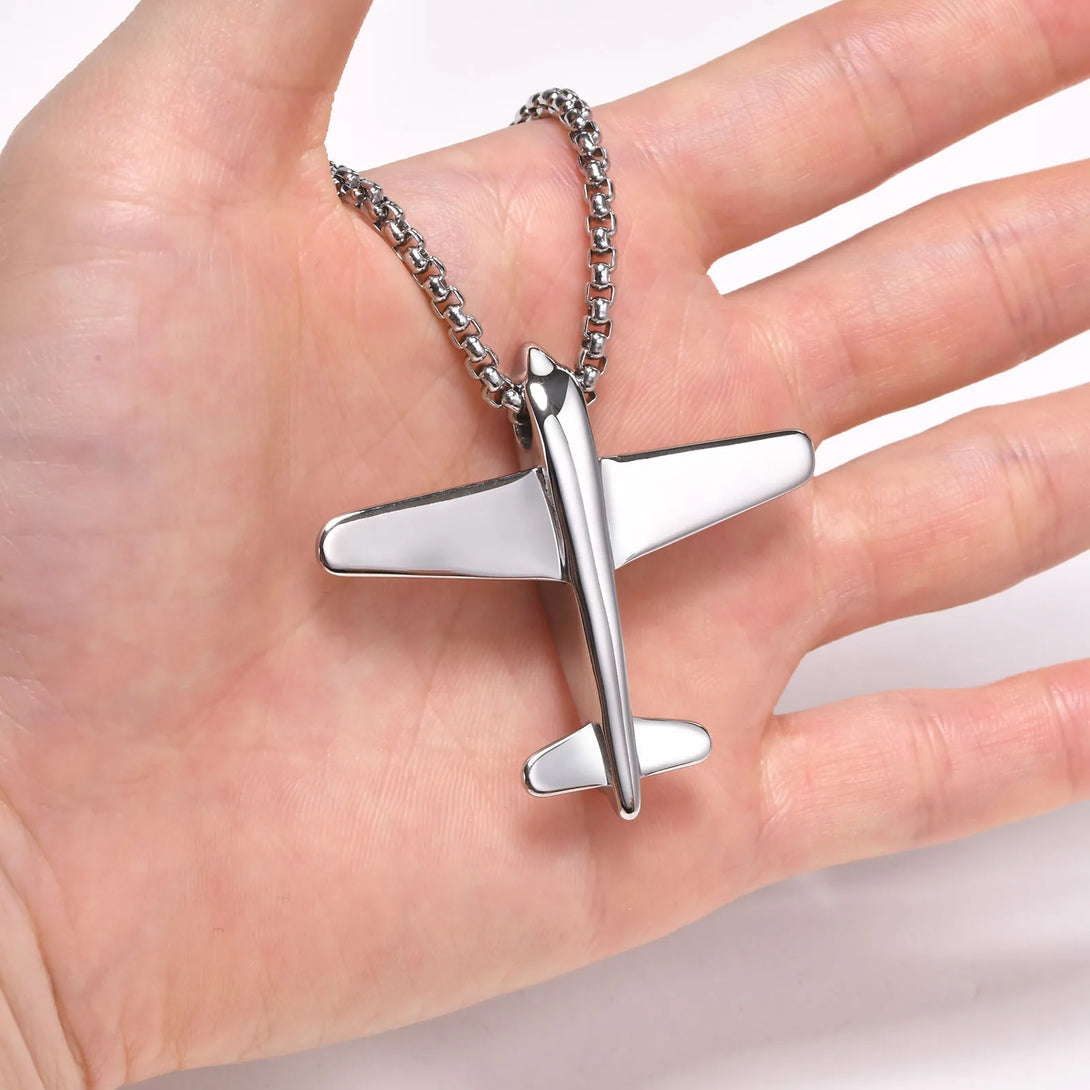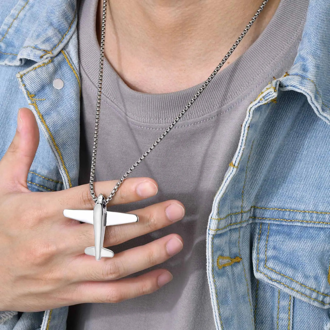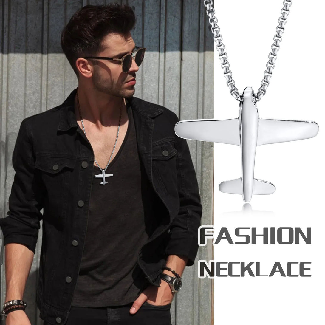 Collar con colgante de avión de moda para hombre, estilo rock punk, de acero inoxidable, estilo de la Fuerza Aérea, joyería de regalo.