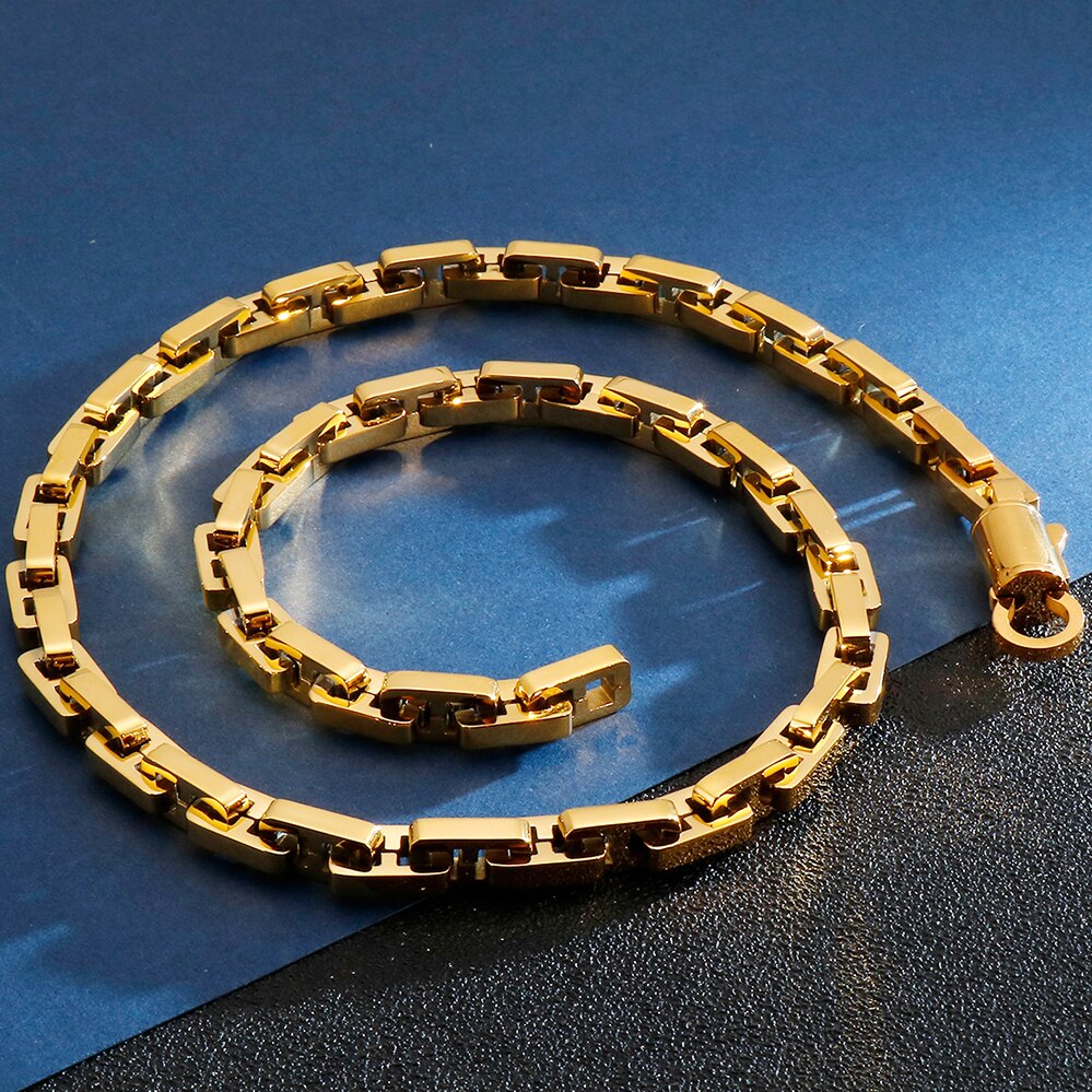 Collar de cadena larga y pesada para hombre, de acero inoxidable, color dorado, accesorios de joyería para hombre, regalos de cumpleaños.