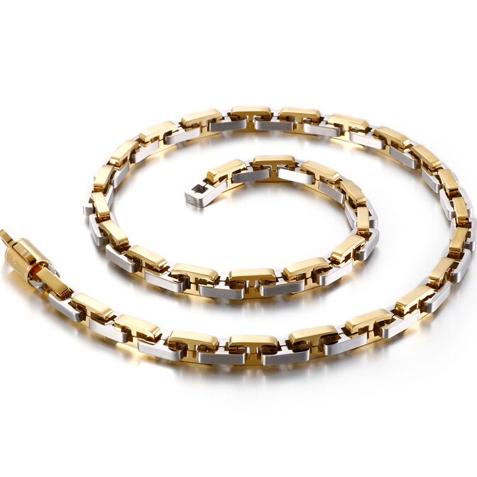 Collar de cadena larga y pesada para hombre, de acero inoxidable, color dorado, joyería para hombre
