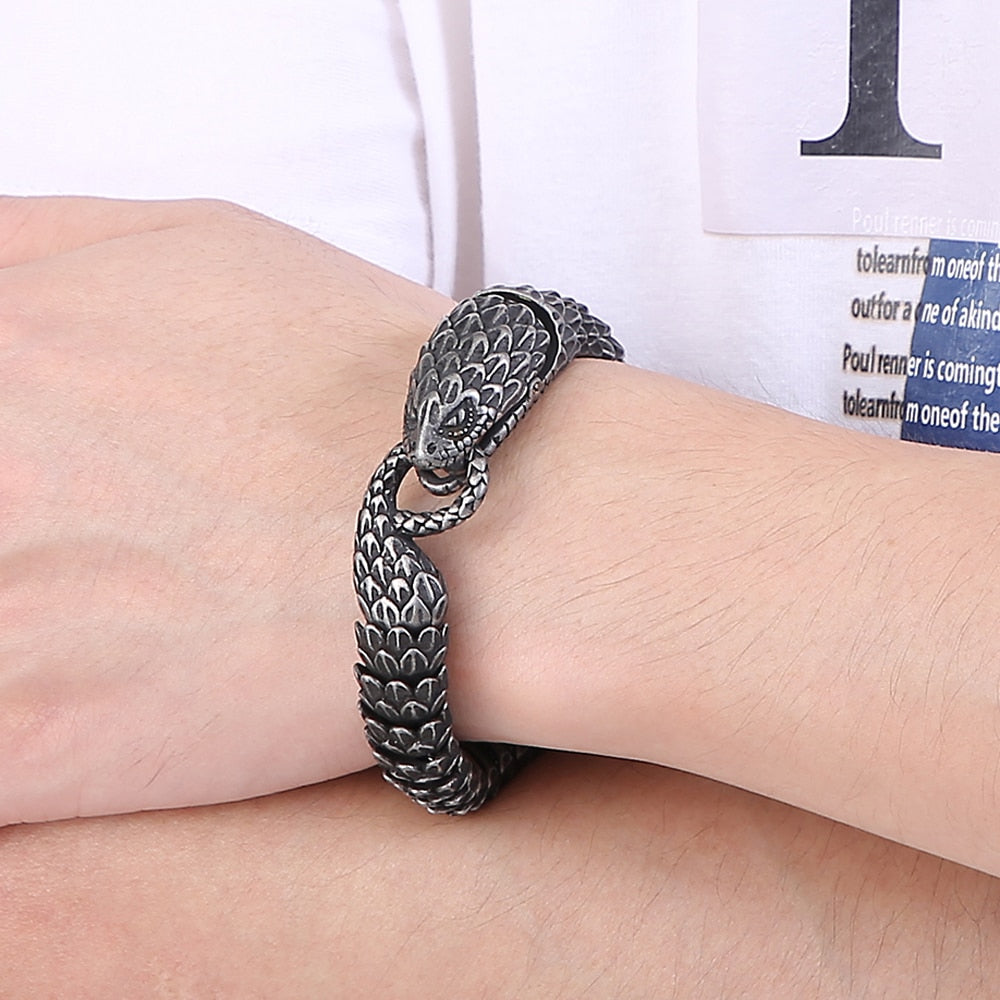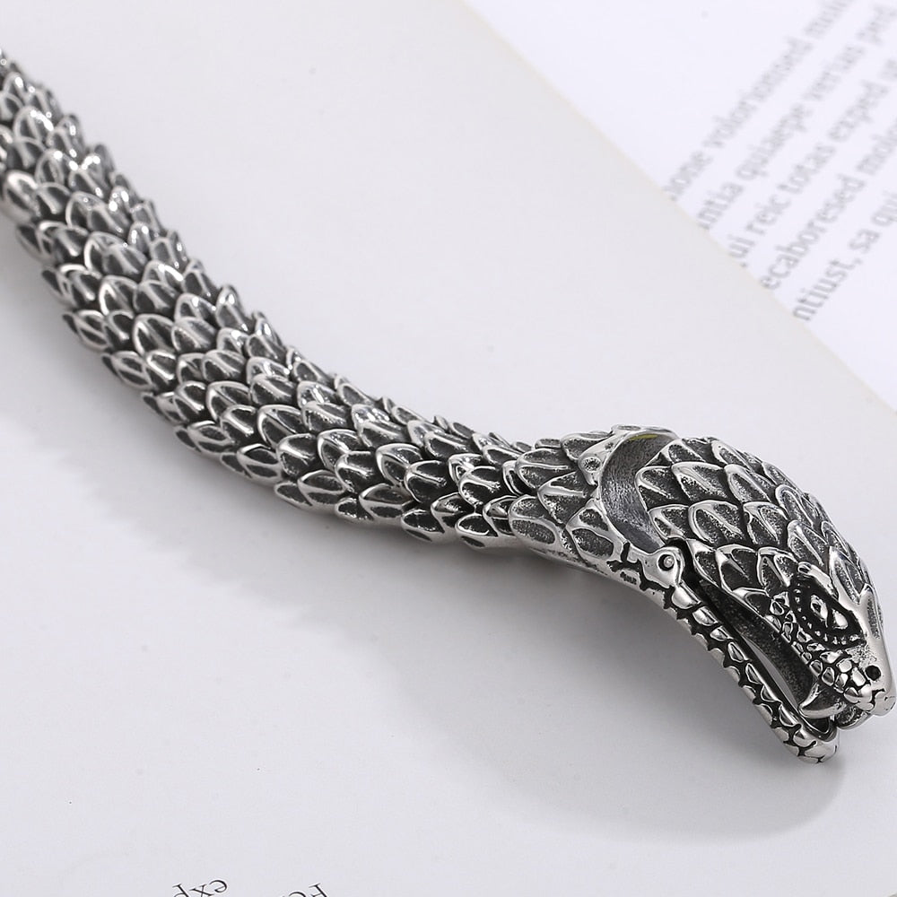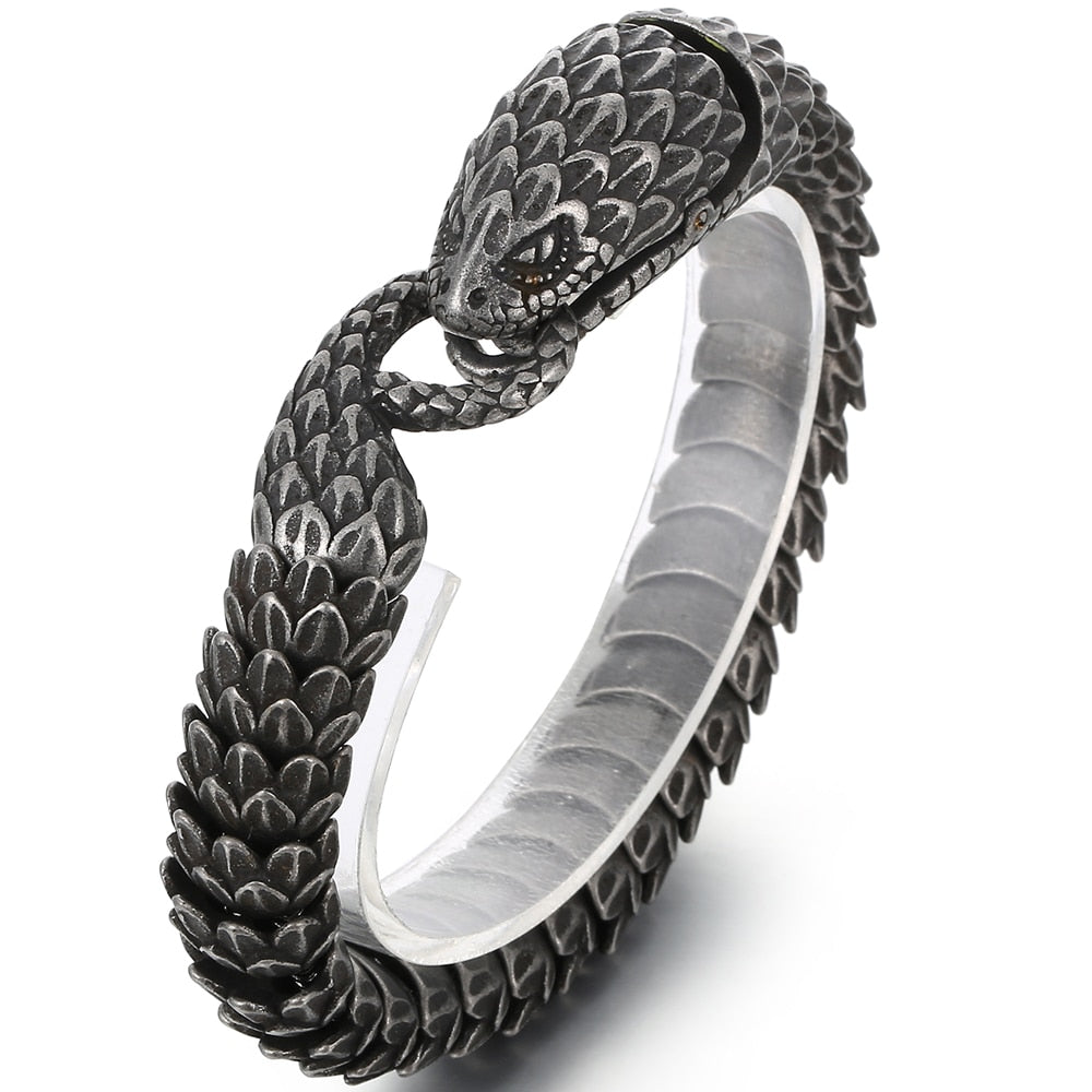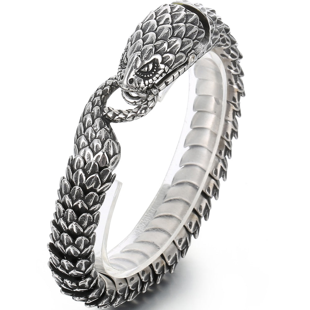 Pulsera de acero inoxidable 316L sólido con forma de serpiente para hombre, 8,7 pulgadas, estilo punk rock.
