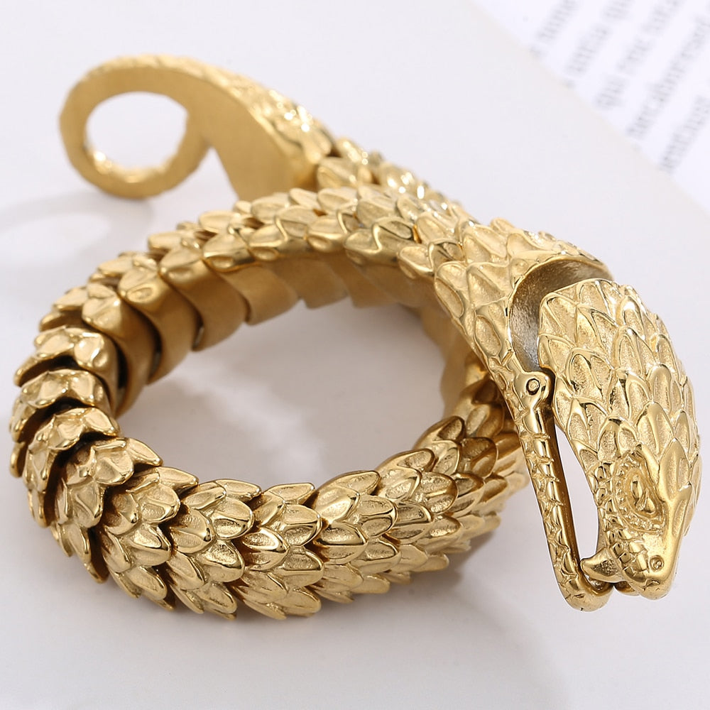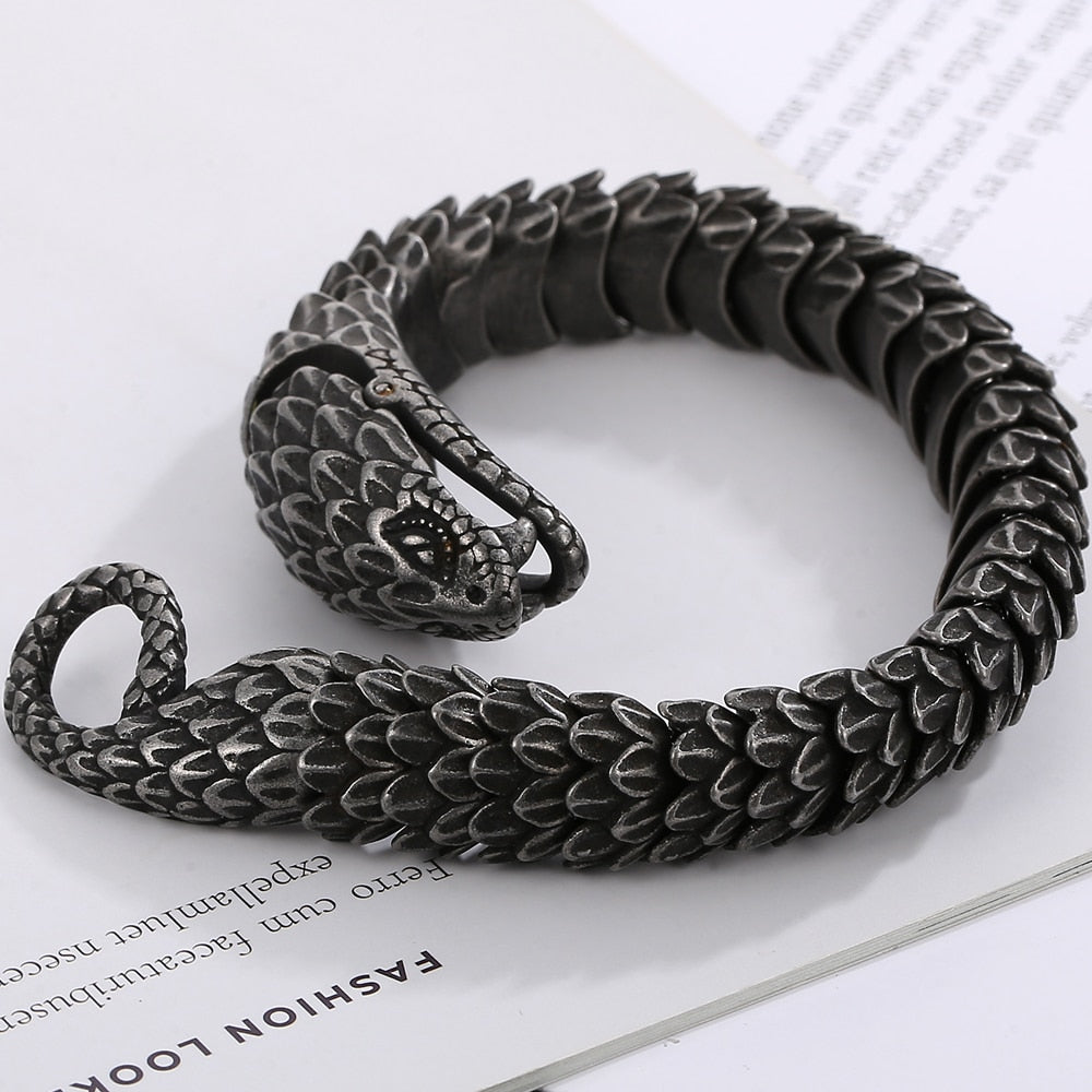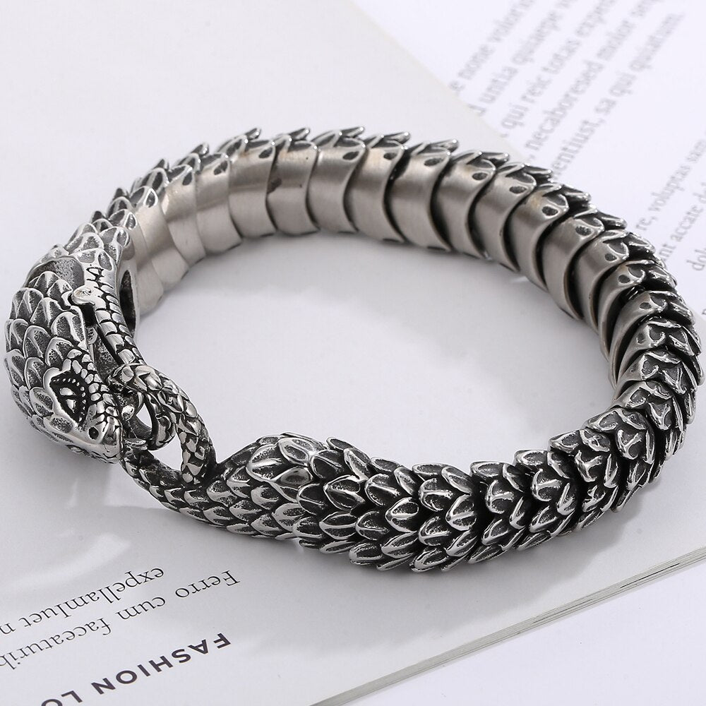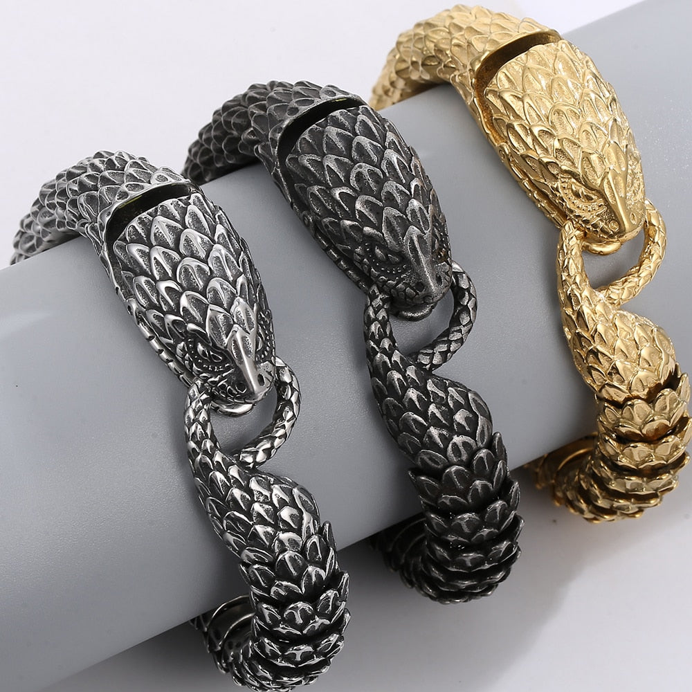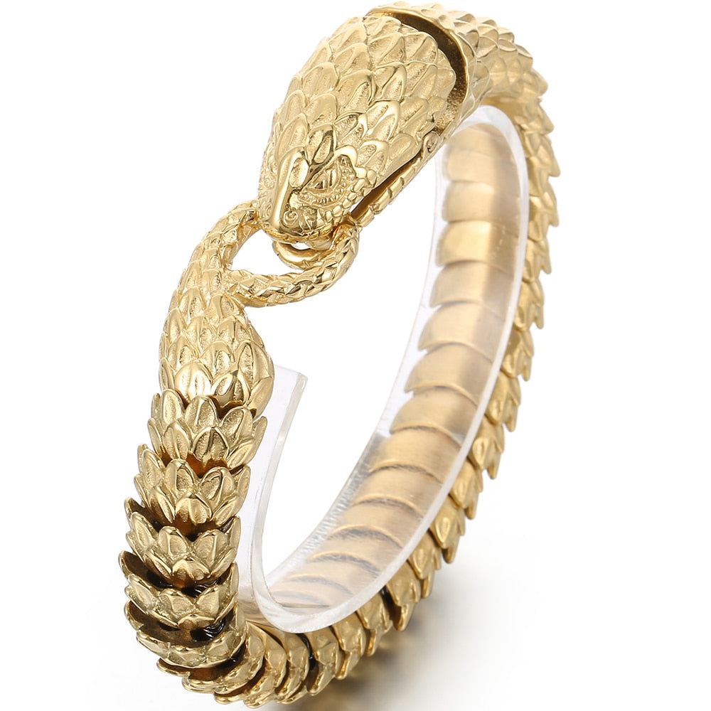 Pulsera de acero inoxidable 316L sólido con forma de serpiente para hombre, 8,7 pulgadas, estilo punk rock.