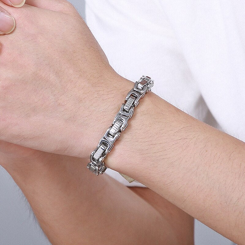 Pulsera de acero inoxidable para hombre, cadena de eslabones de 8 mm, estilo moderno.