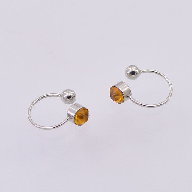 Pendientes de clip con forma de cinta de acero laminado en cobre y perforaciones