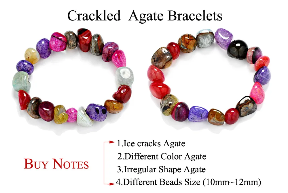 Pulsera de gemas naturales irregulares con grietas de hielo aleatorias, talla 11-12, con forma de colores mixtos para mujer