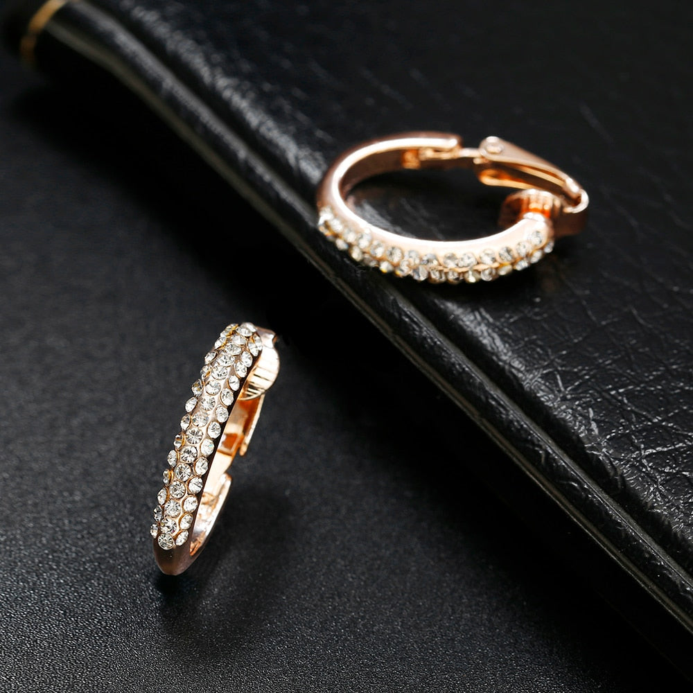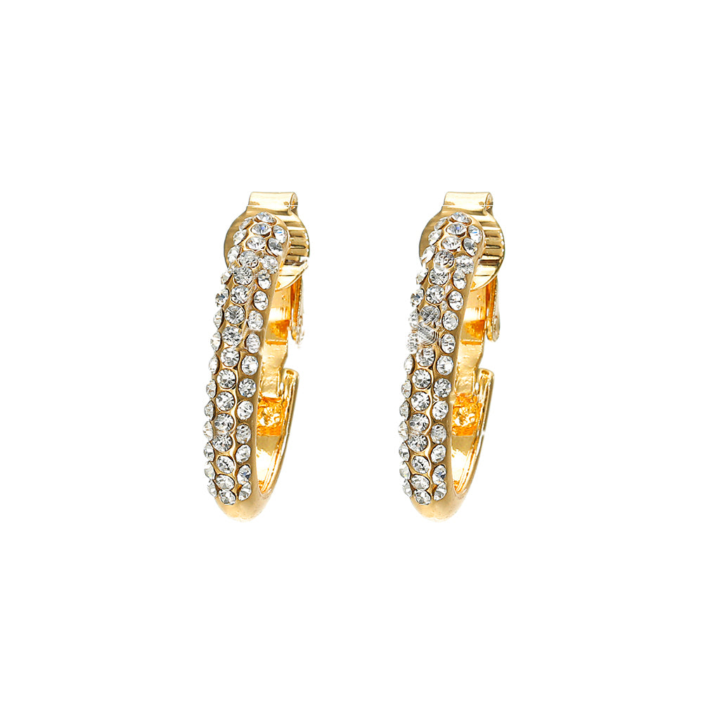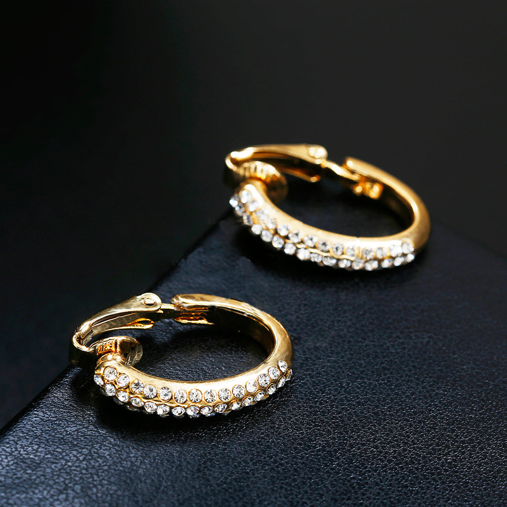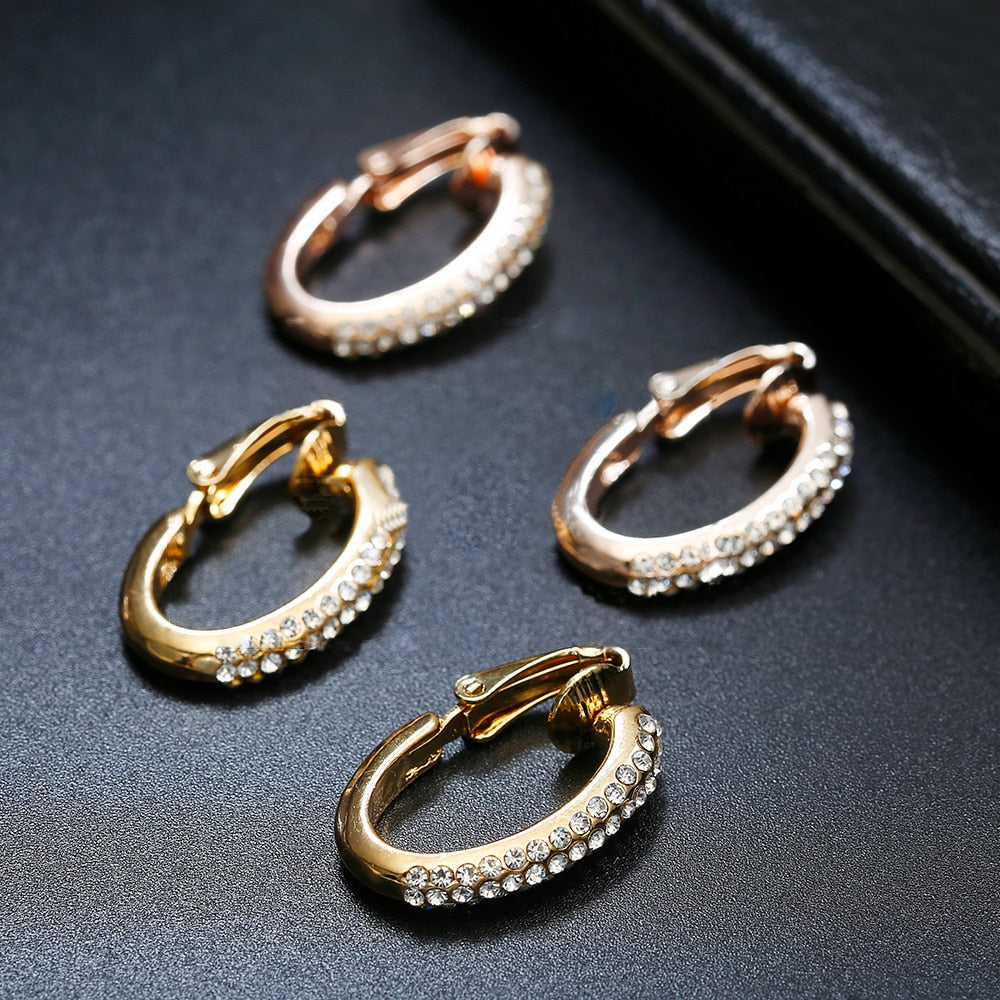 Pendientes de clip de cristal elegantes y creativos de alta calidad sin perforar, con clip dorado para la oreja.