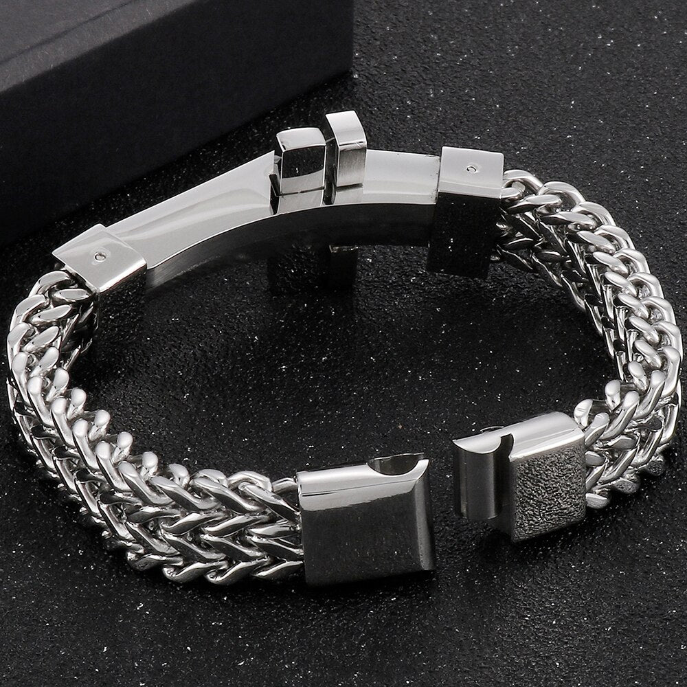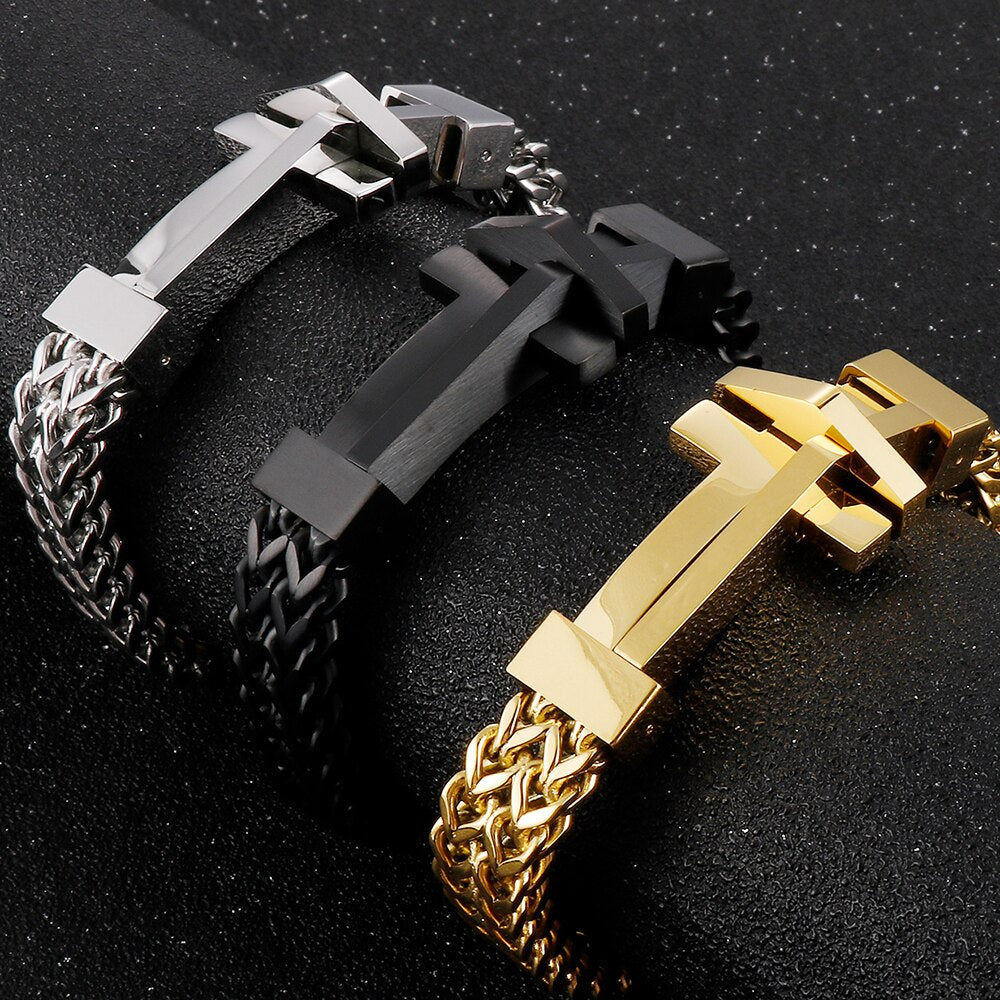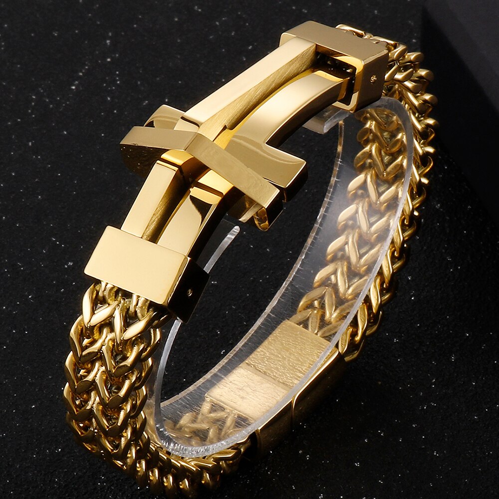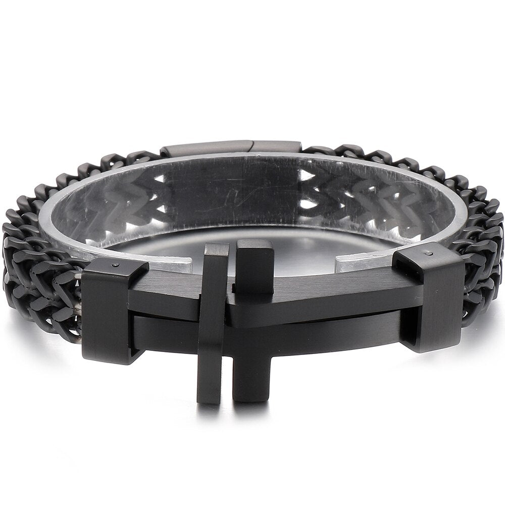 Pulsera cruzada para hombre, de acero inoxidable, con eslabones chapados en oro pulido negro, ideal como pulsera para muñeca. Accesorios de joyería.