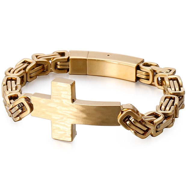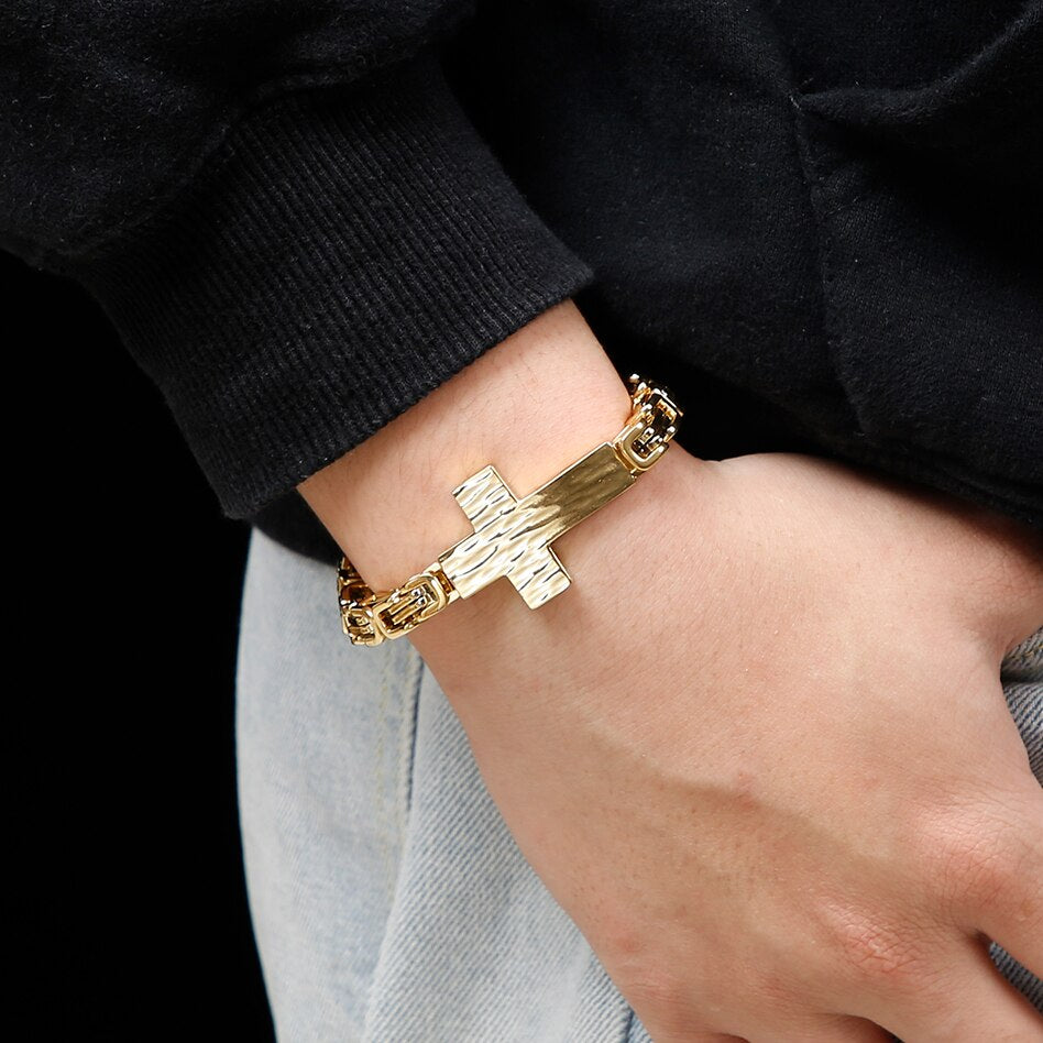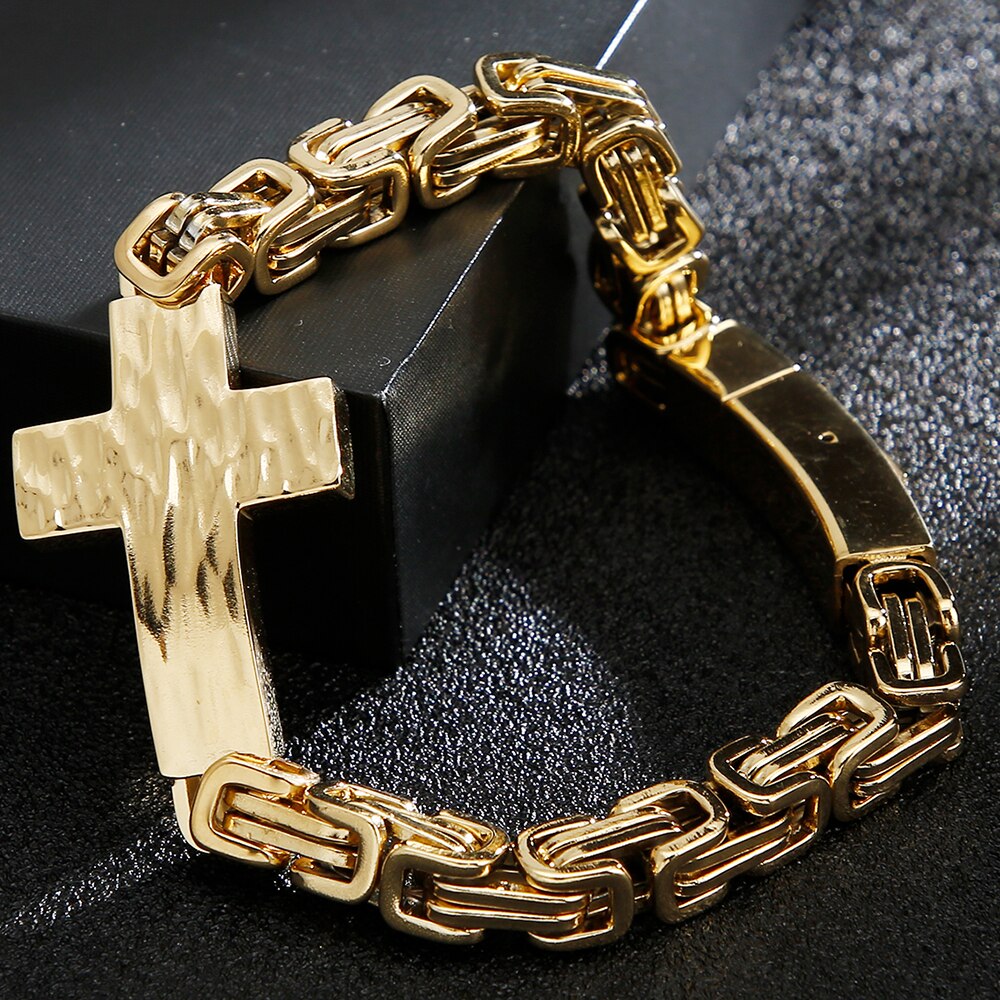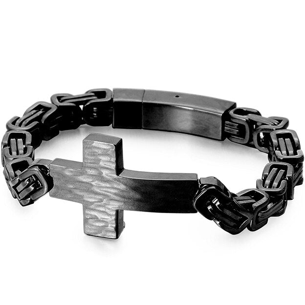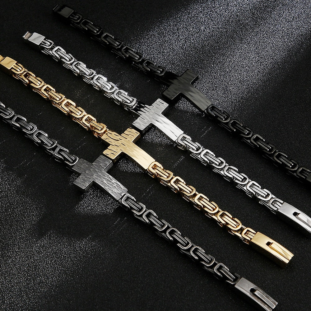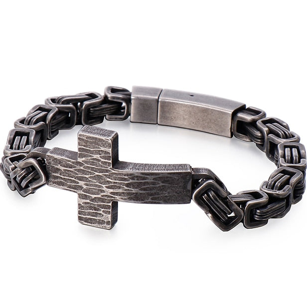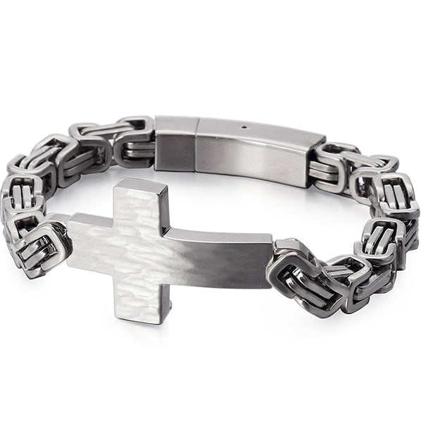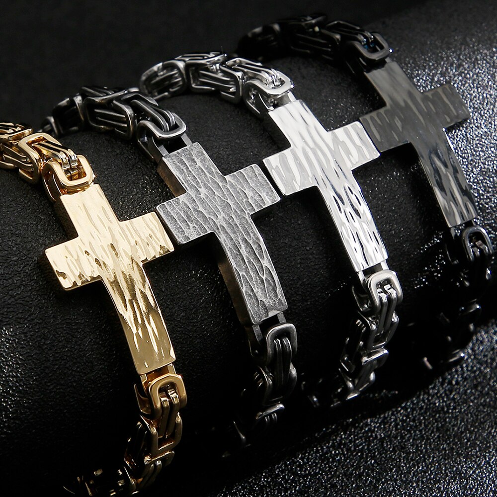 Brazalete cruzado de acero inoxidable para hombre, cadena de eslabones de 7 mm.