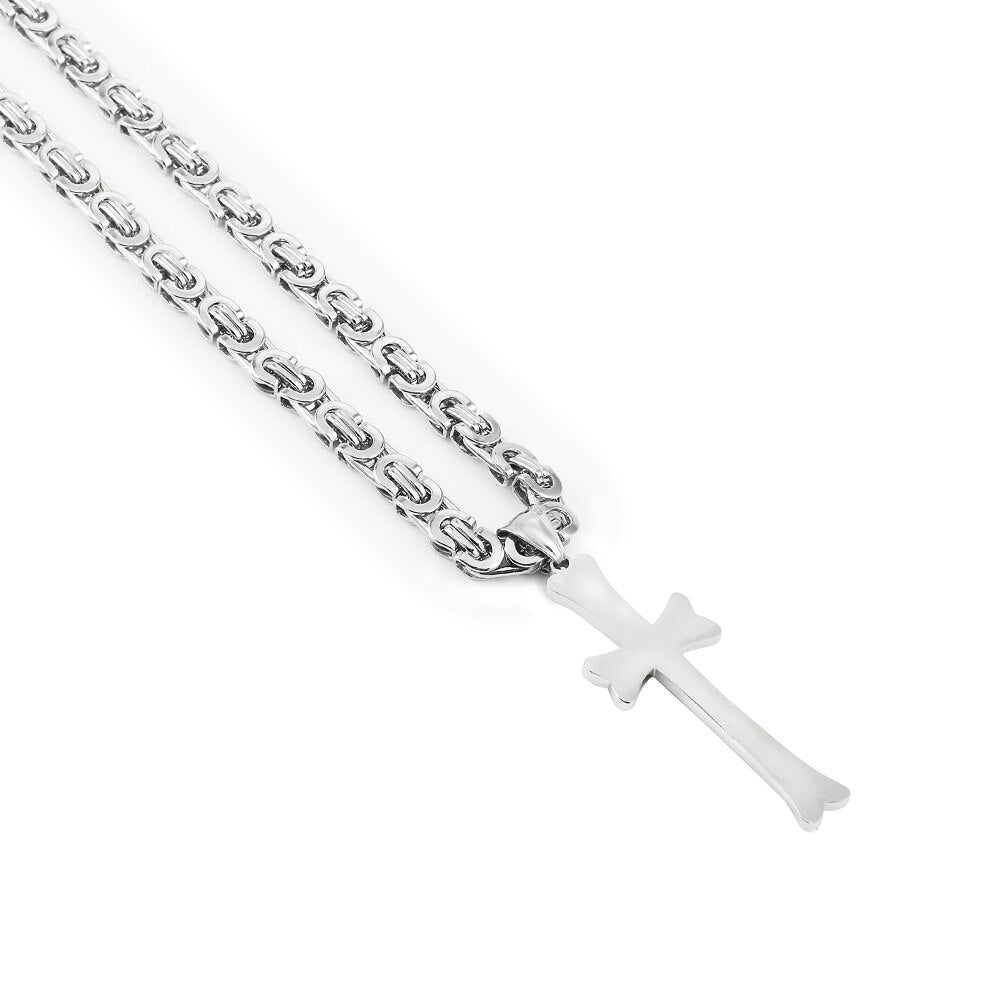 Collar con colgante de cruz de acero inoxidable estilo hip hop con cadena de emperador bizantino.