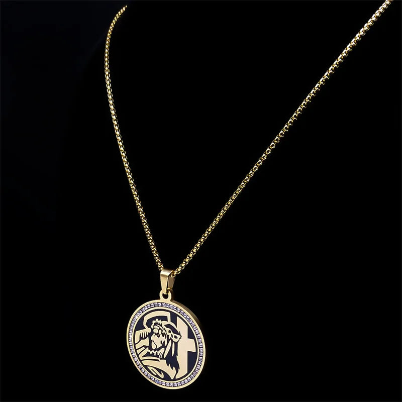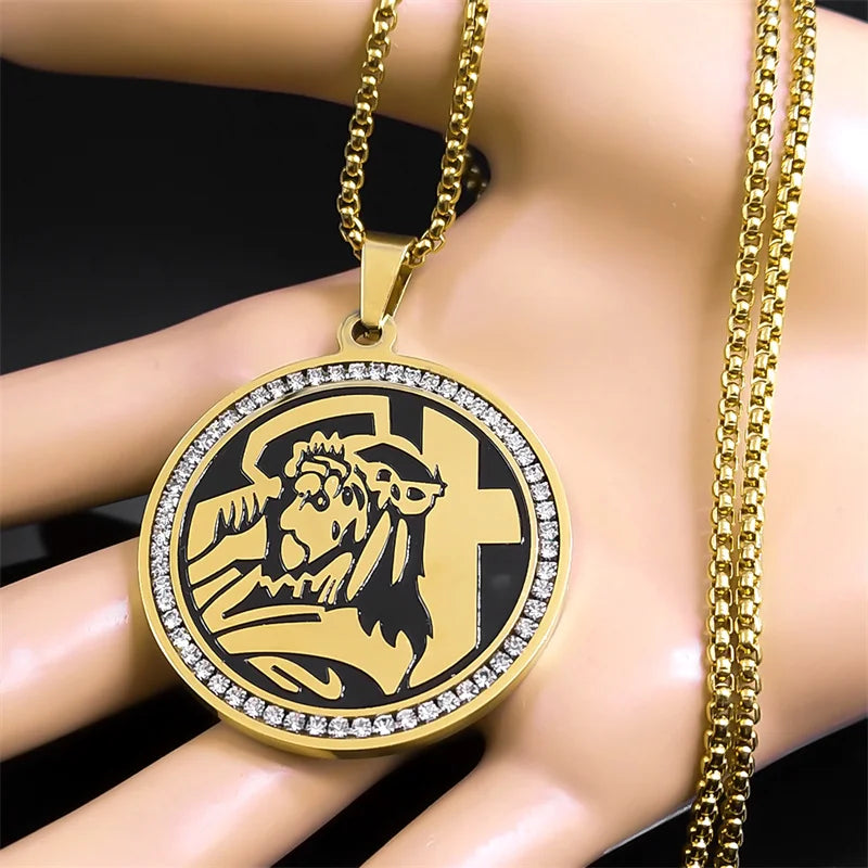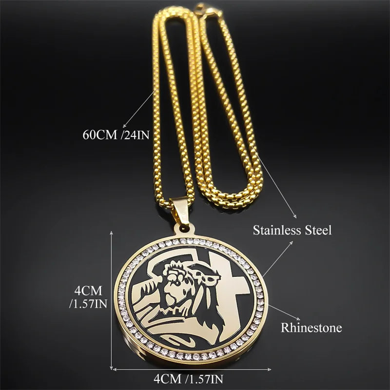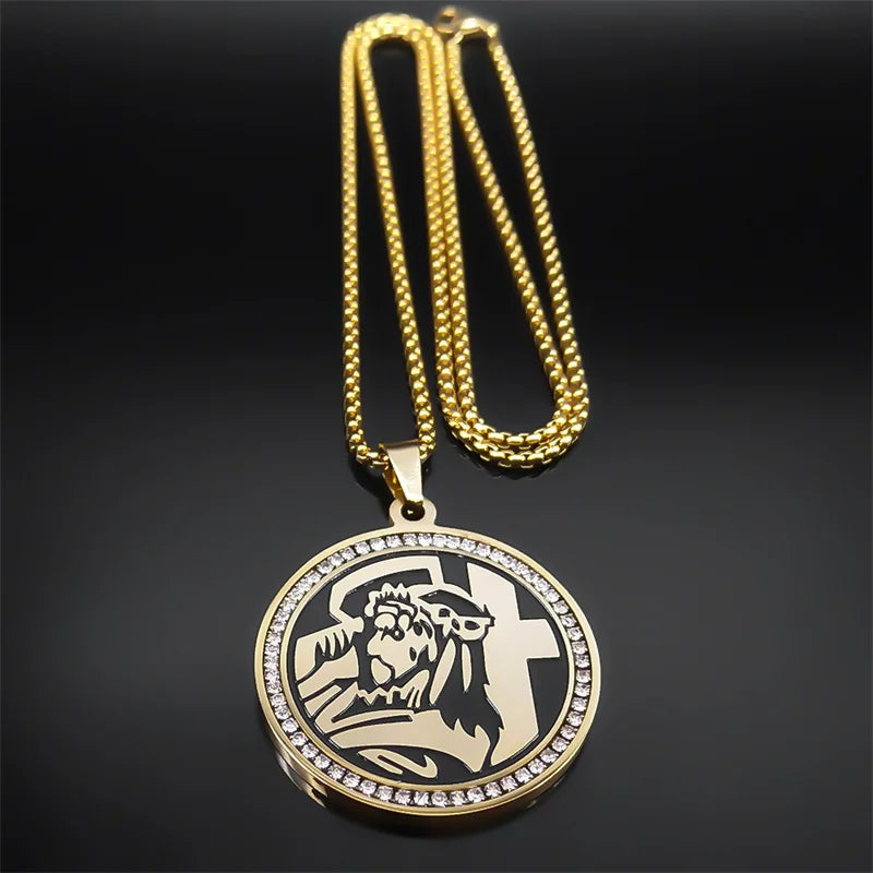 Collar con medalla de cruz de Jesús y corona de espinas para mujer y hombre, crucifijo de acero inoxidable, cadena masculina, joyería masculina