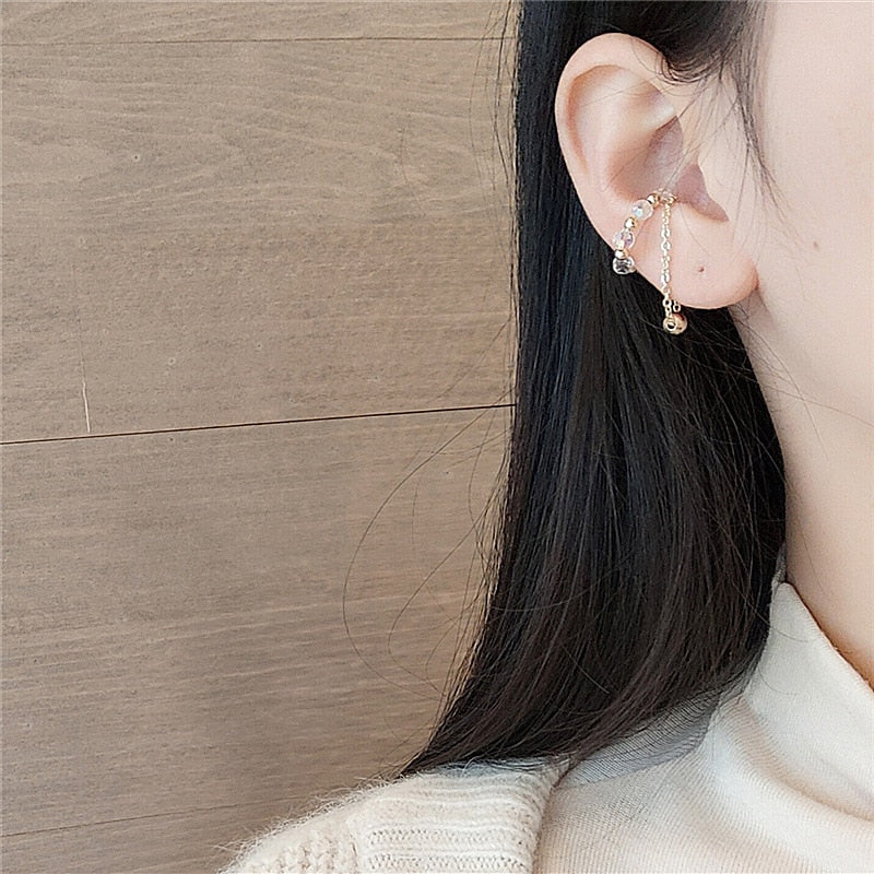 Pendientes de moda: 1 pieza de pendientes de clip para mujer, elegantes pendientes de clip con cuentas de cristal, estilo francés, sin perforar, para regalo.