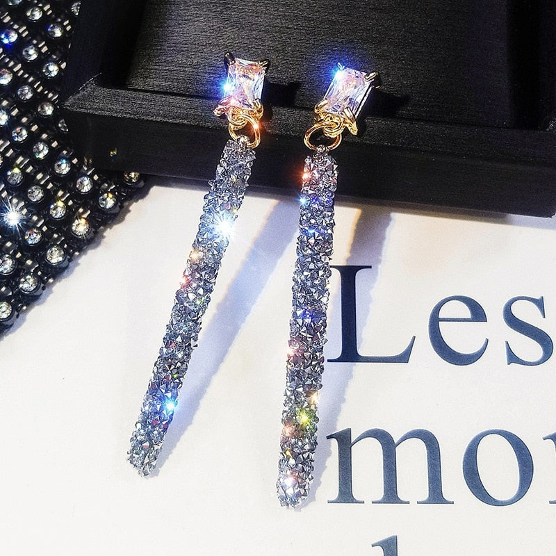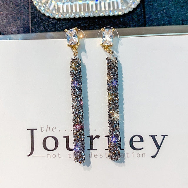 Pendientes largos geométricos clásicos de cristal para mujer, joyería femenina, aretes sencillos coreanos, novedad