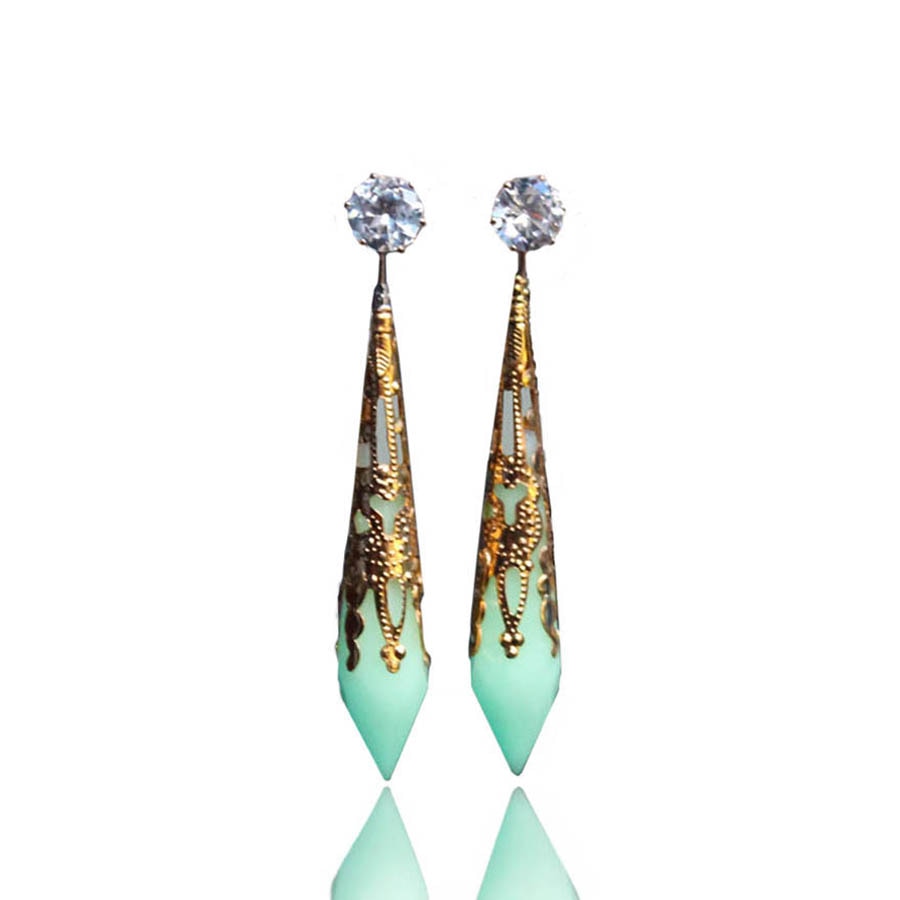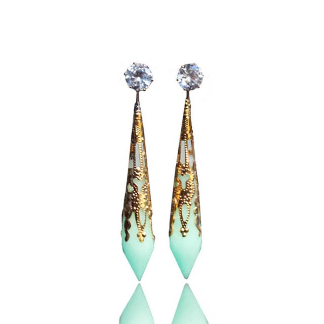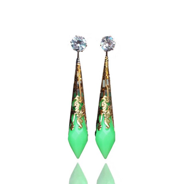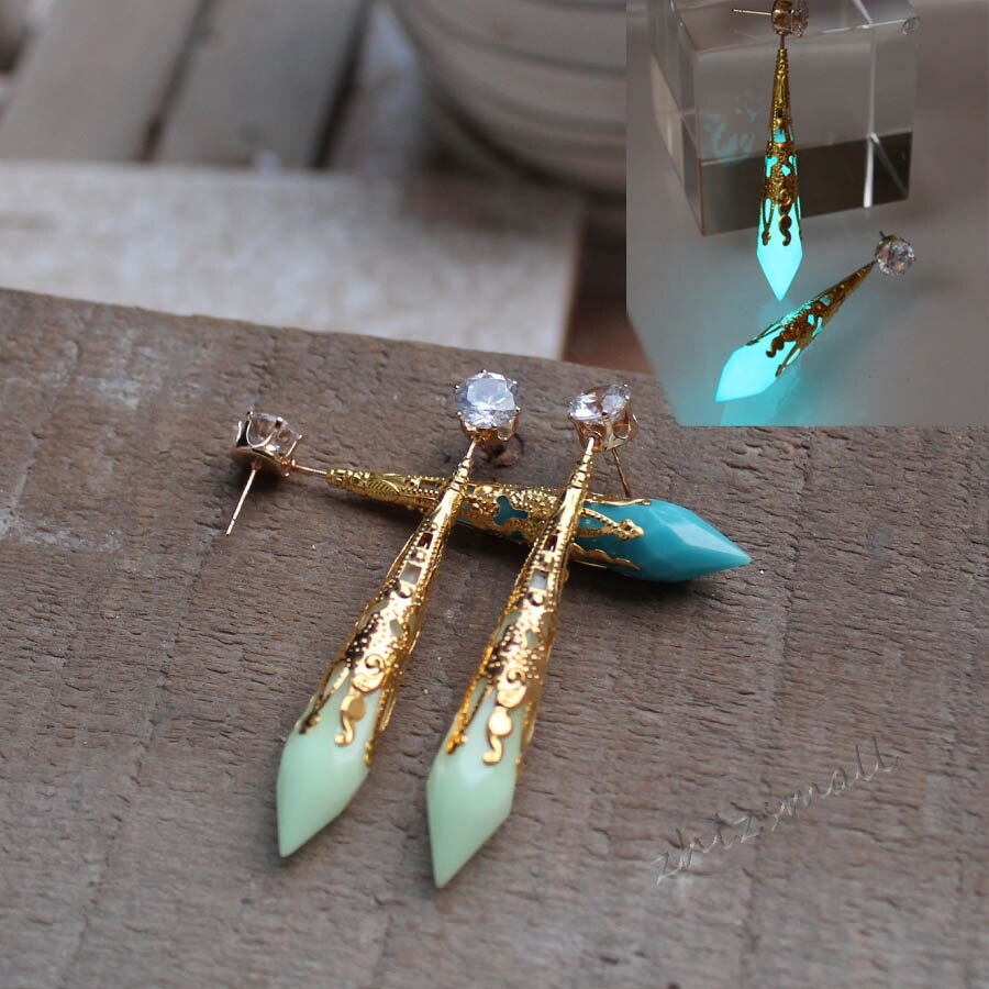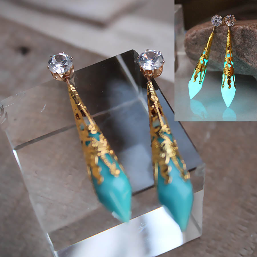 Pendientes de moda: aretes con forma de columna de cristal que brillan en la oscuridad, con diamantes de imitación recortados, con forma de flecha de colores, regalo para mujer y niña.