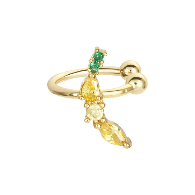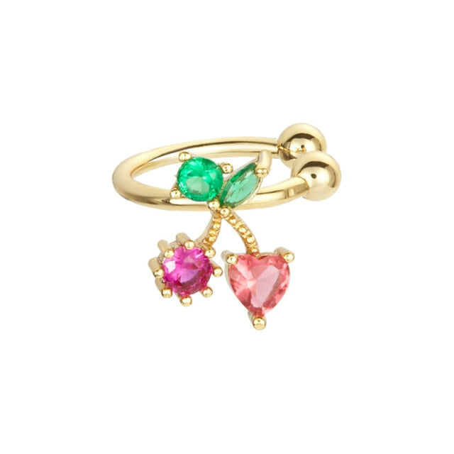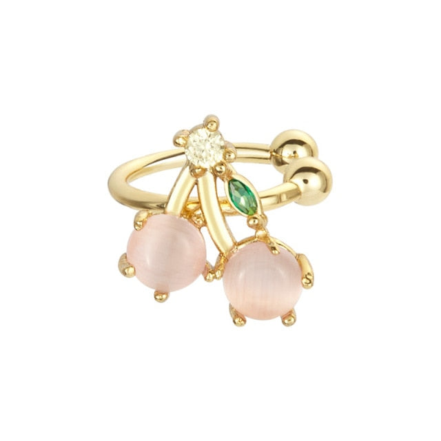 Pendientes de clip de fruta de cristal para mujer, estilo simple, con cereza, uva y piña.