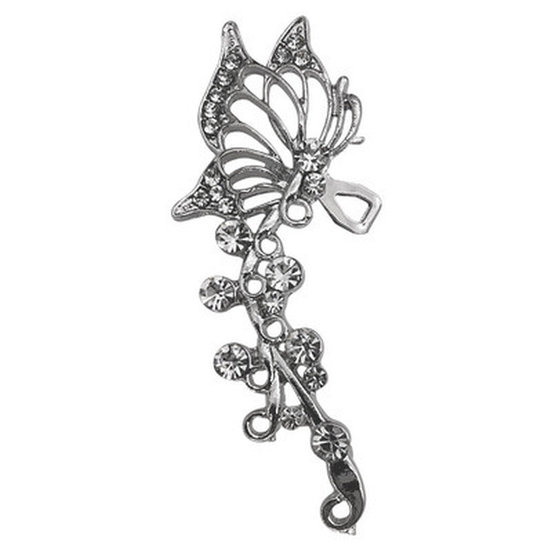 Pendientes de moda: pendientes de mariposa con clip de diamantes de imitación de cristal para mujer, pendientes de ala hueca de aleación de color plateado, joyería